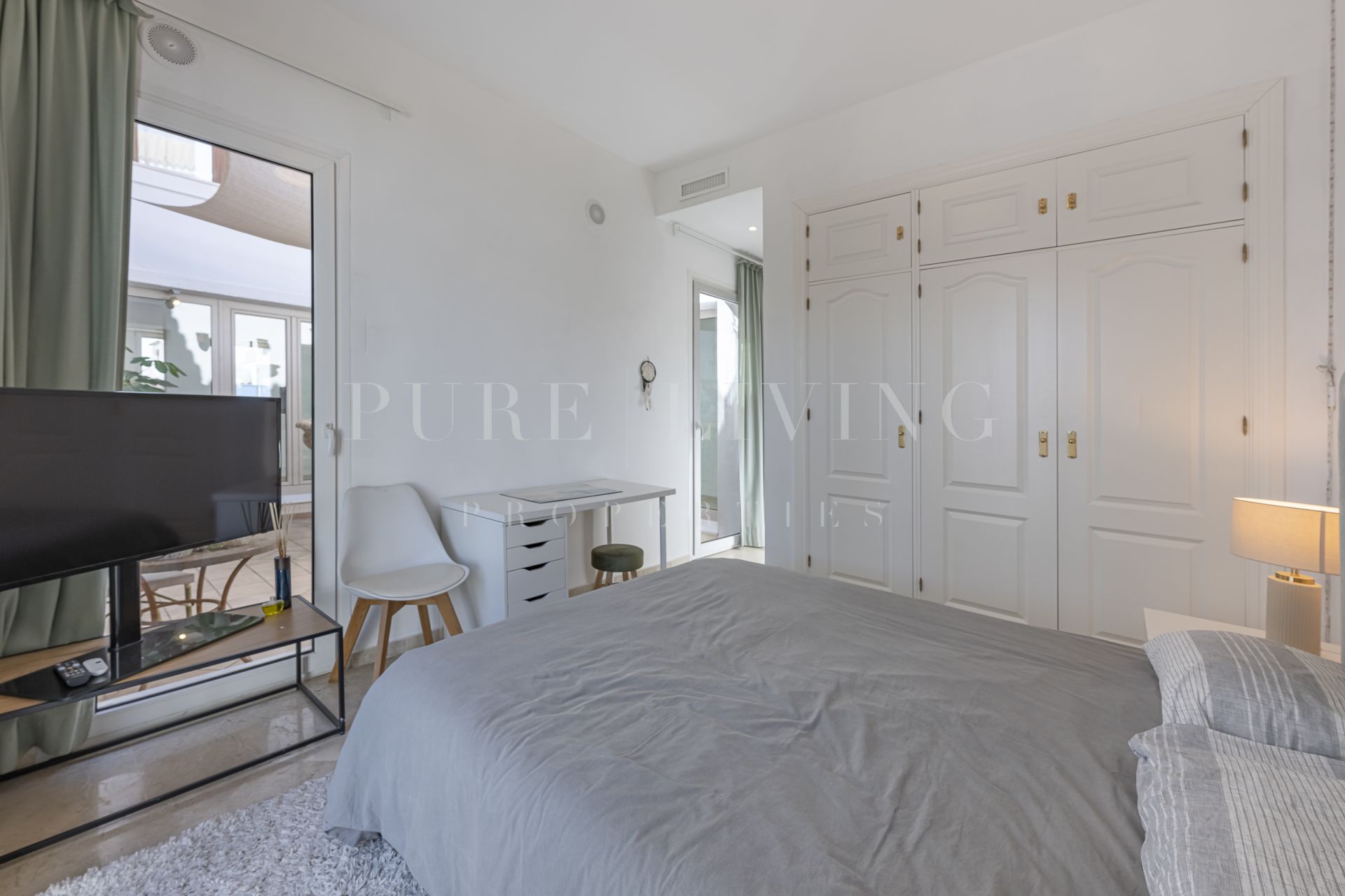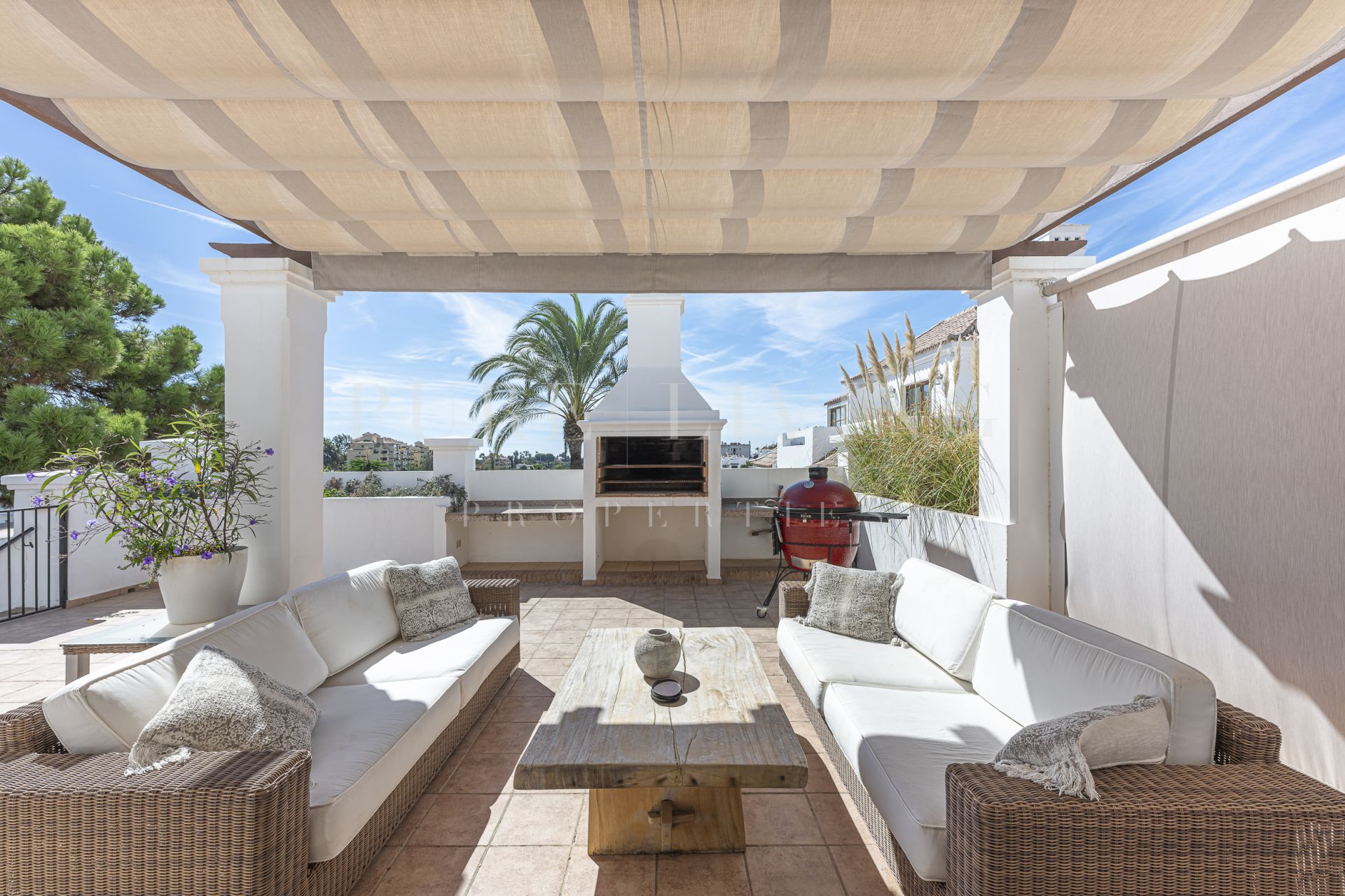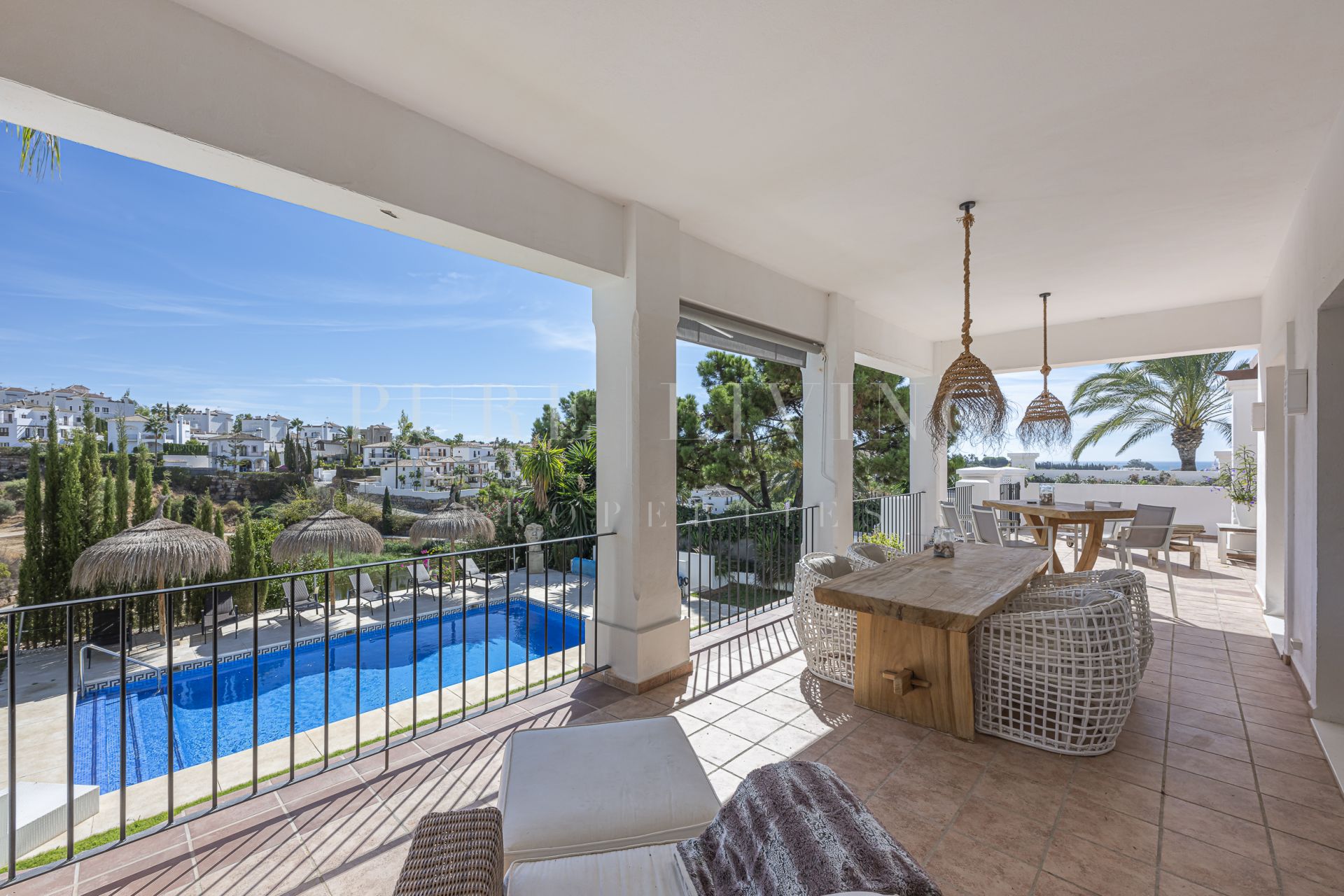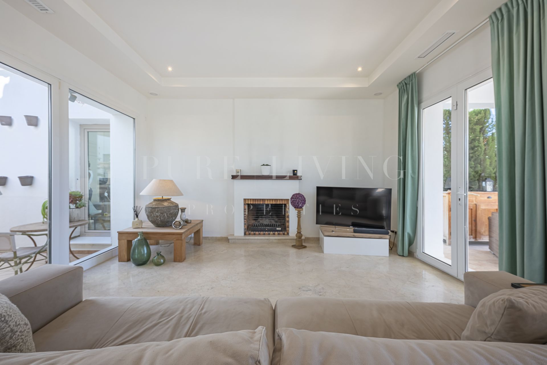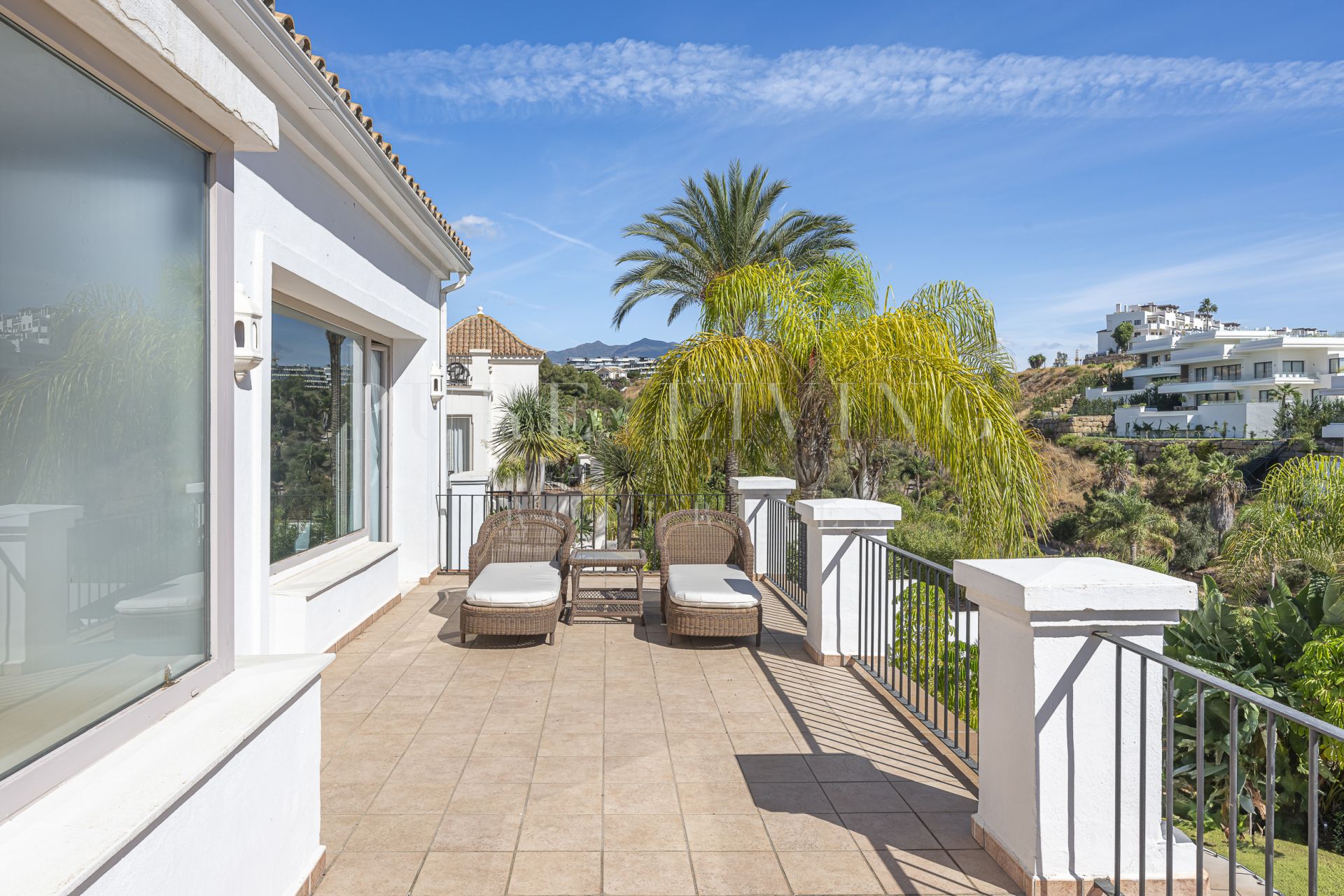 Rodeada de un exuberante jardín, esta villa cuenta con una piscina climatizada de agua salada y dos amplias terrazas, creando un entorno idílico para tomar el sol y relajarse con total privacidad.Idealmente situada entre Estepona y San Pedro de Alcántara, esta villa se encuentra a sólo 10 minutos a pie o a un corto trayecto en coche de la playa.Disfrute de un fácil acceso al vibrante centro de Estepona, al lujoso Puerto Banús y al aeropuerto de Málaga, todos a un corto trayecto en coche. Con una gran variedad de servicios cerca, incluyendo restaurantes, supermercados y un club de paddle, esta propiedad ofrece la mezcla perfecta de tranquilidad y comodidad.