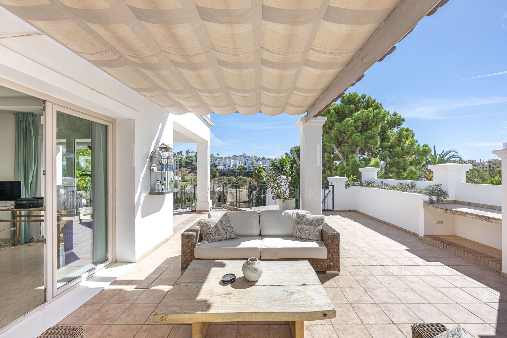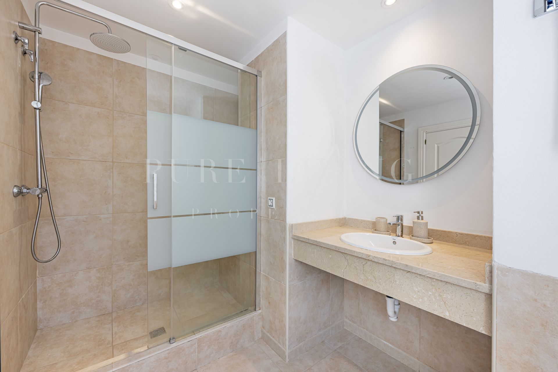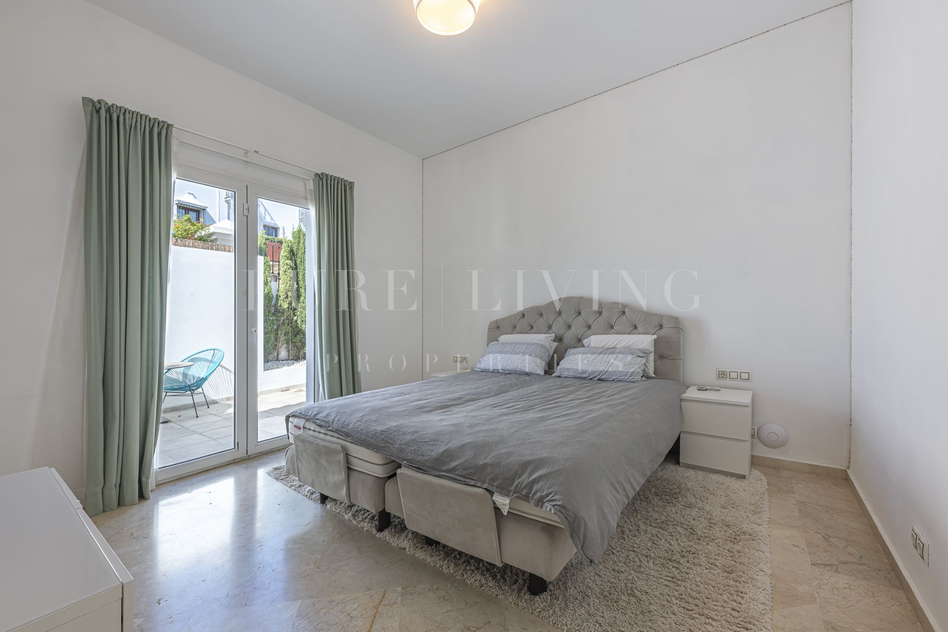 Esta residencia andaluza cuidadosamente diseñada se extiende en tres niveles, cada uno de los cuales ofrece espacios únicos. La planta principal cuenta con un amplio salón y comedor que se abre a un encantador patio y terraza, perfecto para comer al aire libre, barbacoas, y disfrutar de impresionantes vistas sobre el campo de golf. Aquí también encontrará una cocina bien equipada, dos amplios dormitorios con baños en suite y un aseo de invitados.