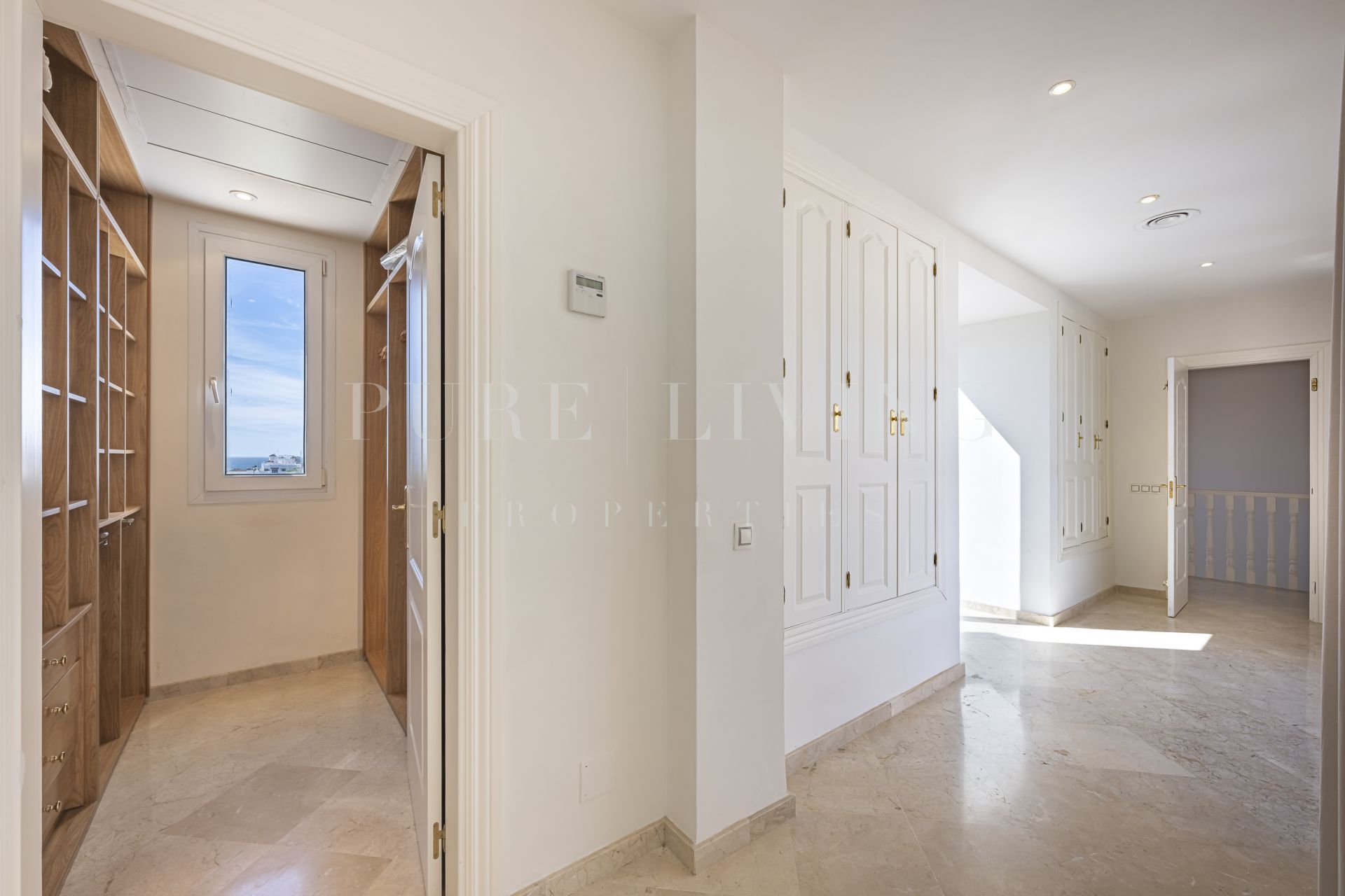 Suba la escalera para descubrir la suite principal, un verdadero refugio con un lujoso cuarto de baño con bañera y ducha. Disfrute de su café matutino en la terraza privada con vistas panorámicas.