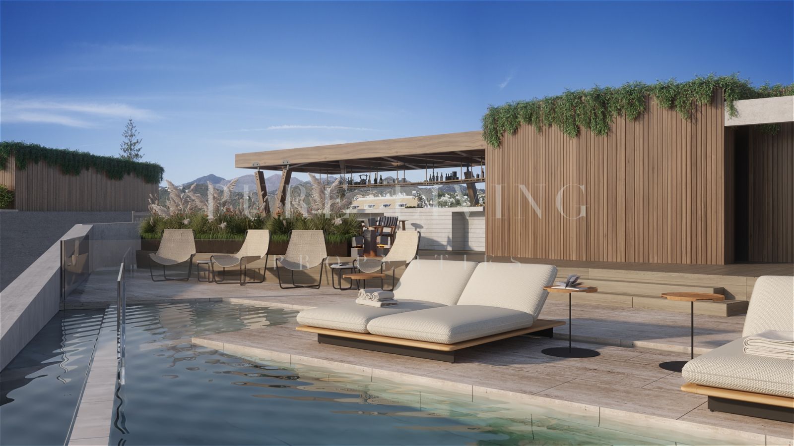 Un exclusivo apartamento en primera línea de playa con jardín privado y piscina, donde el diseño contemporáneo se une al estilo de vida más exclusivo de Marbella.