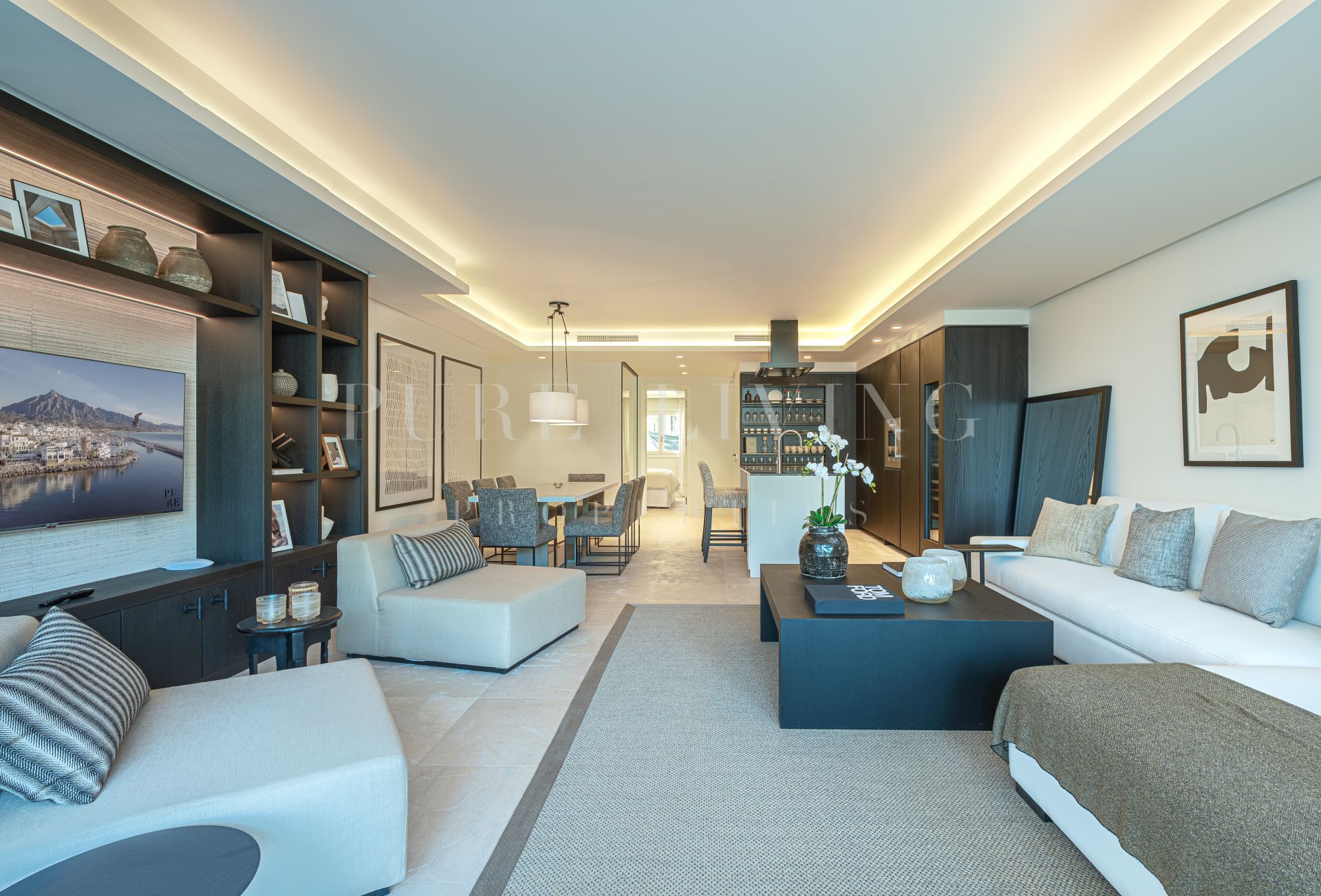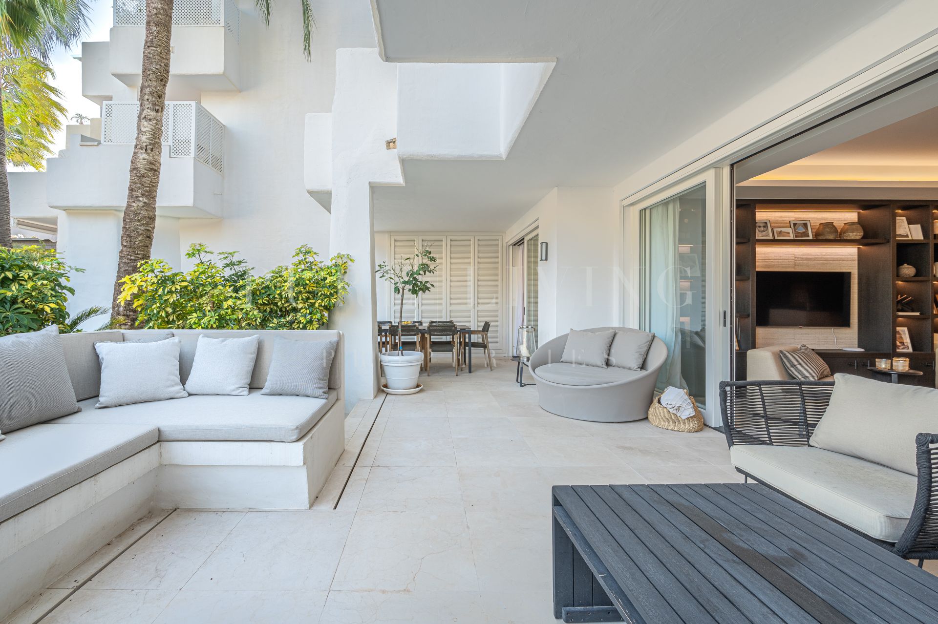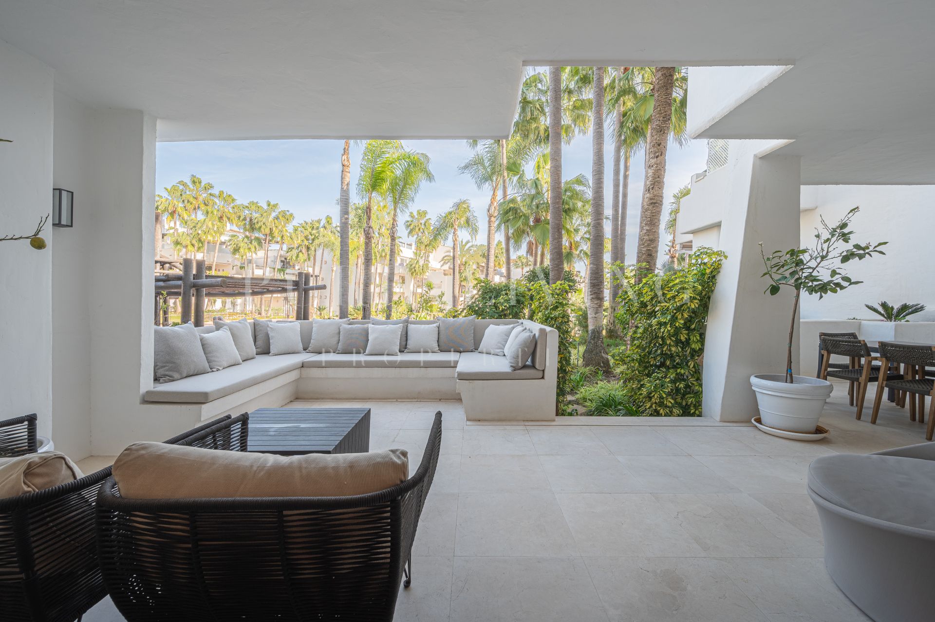 Este lujoso apartamento de 3 dormitorios en la codiciada urbanización de Jardines Japoneses en Puente Romano presenta una rara oportunidad de encontrar la casa de sus sueños. Situado en un complejo cerrado y seguro, los Jardines Japoneses ofrecen impresionantes jardines comunitarios, juegos de agua, una piscina comunitaria y acceso privado directo al famoso paseo marítimo y las playas cercanas.