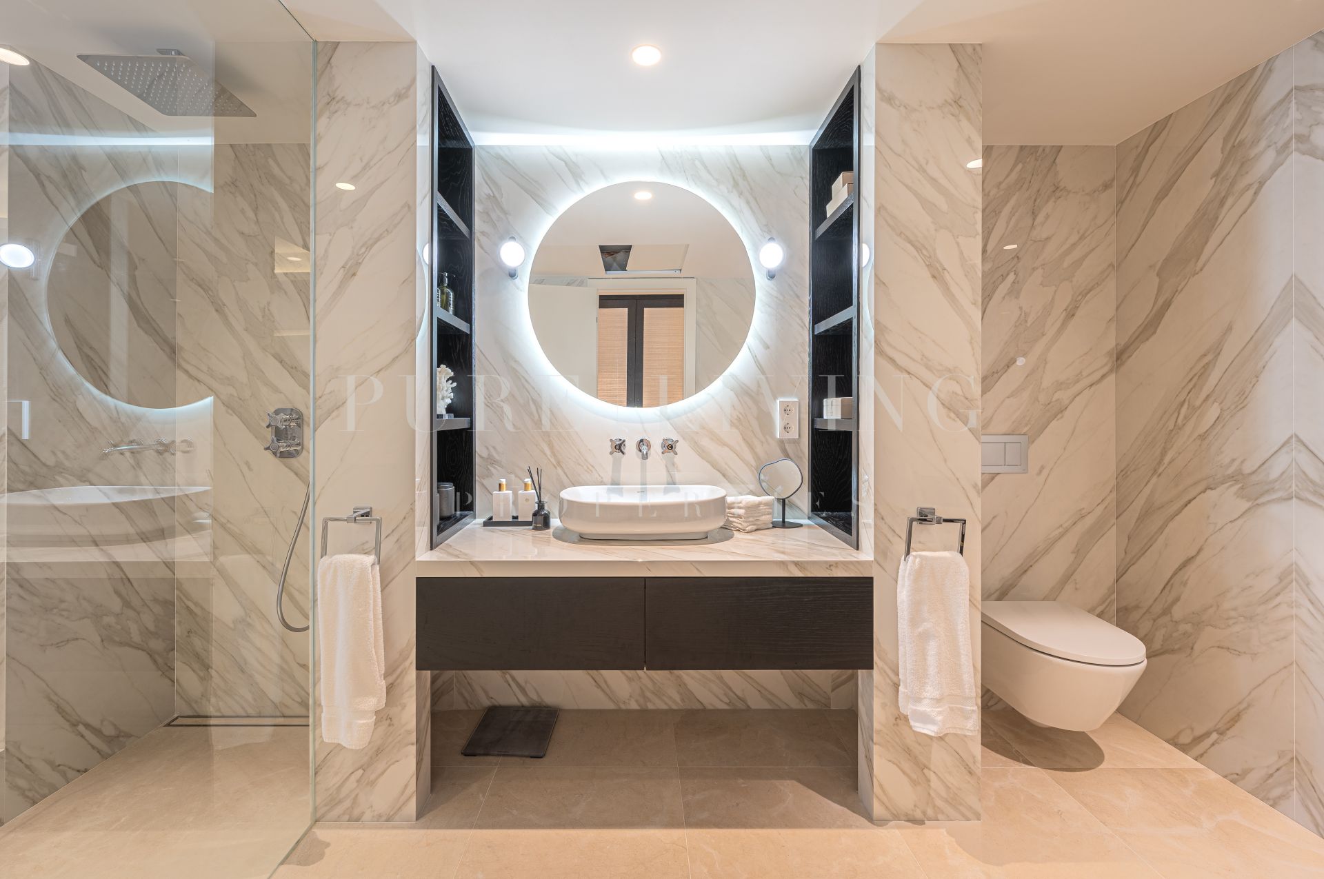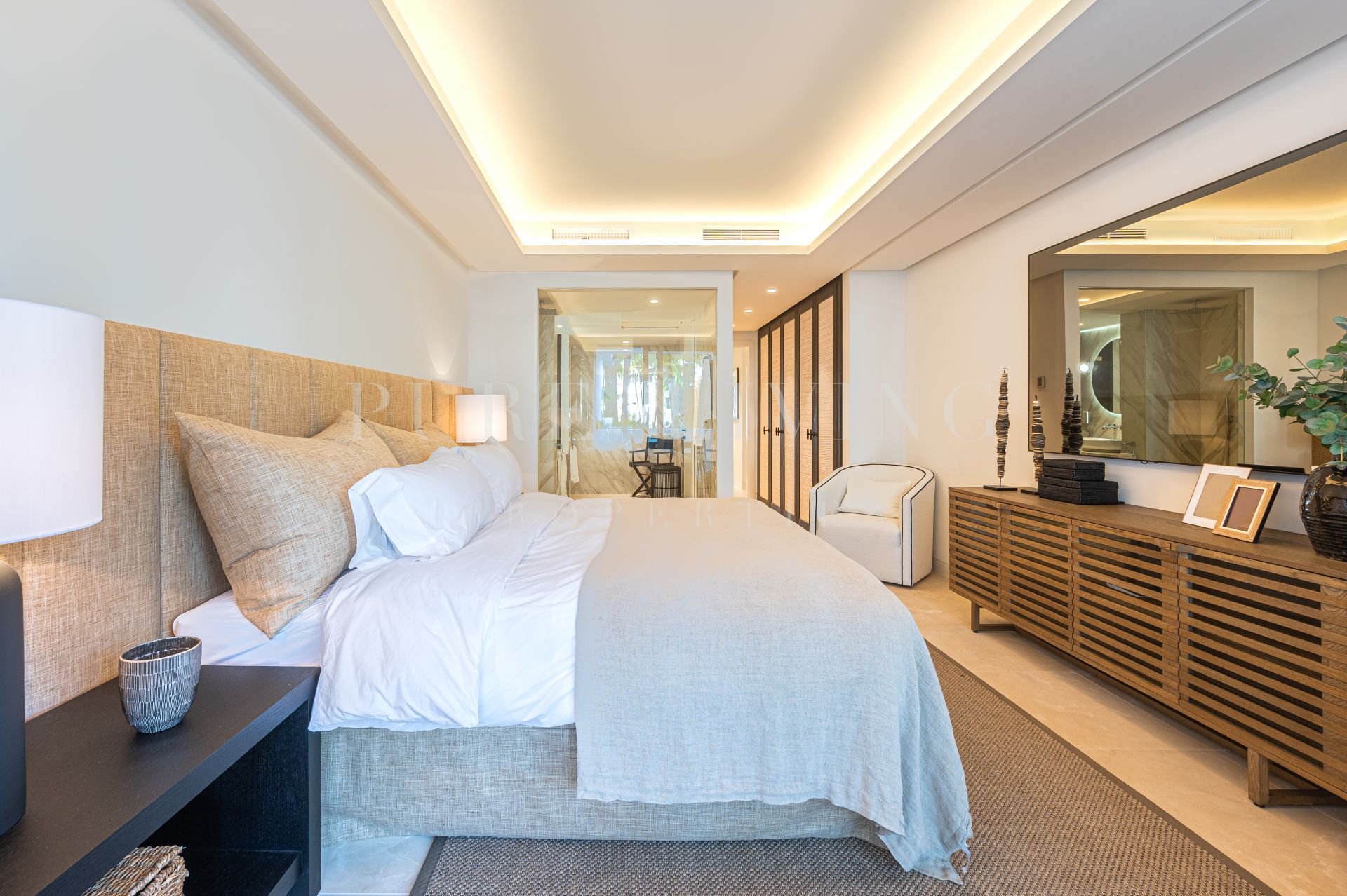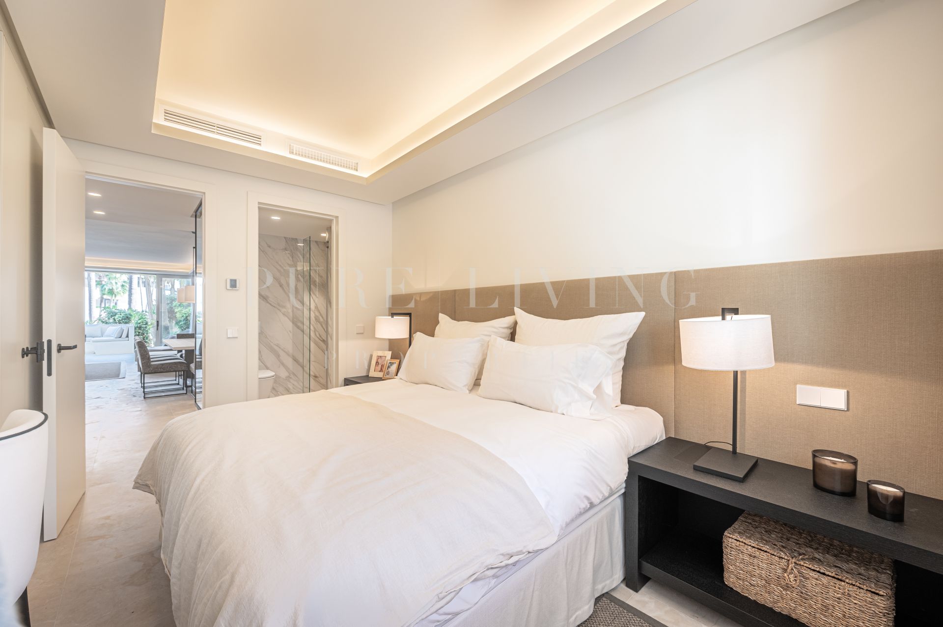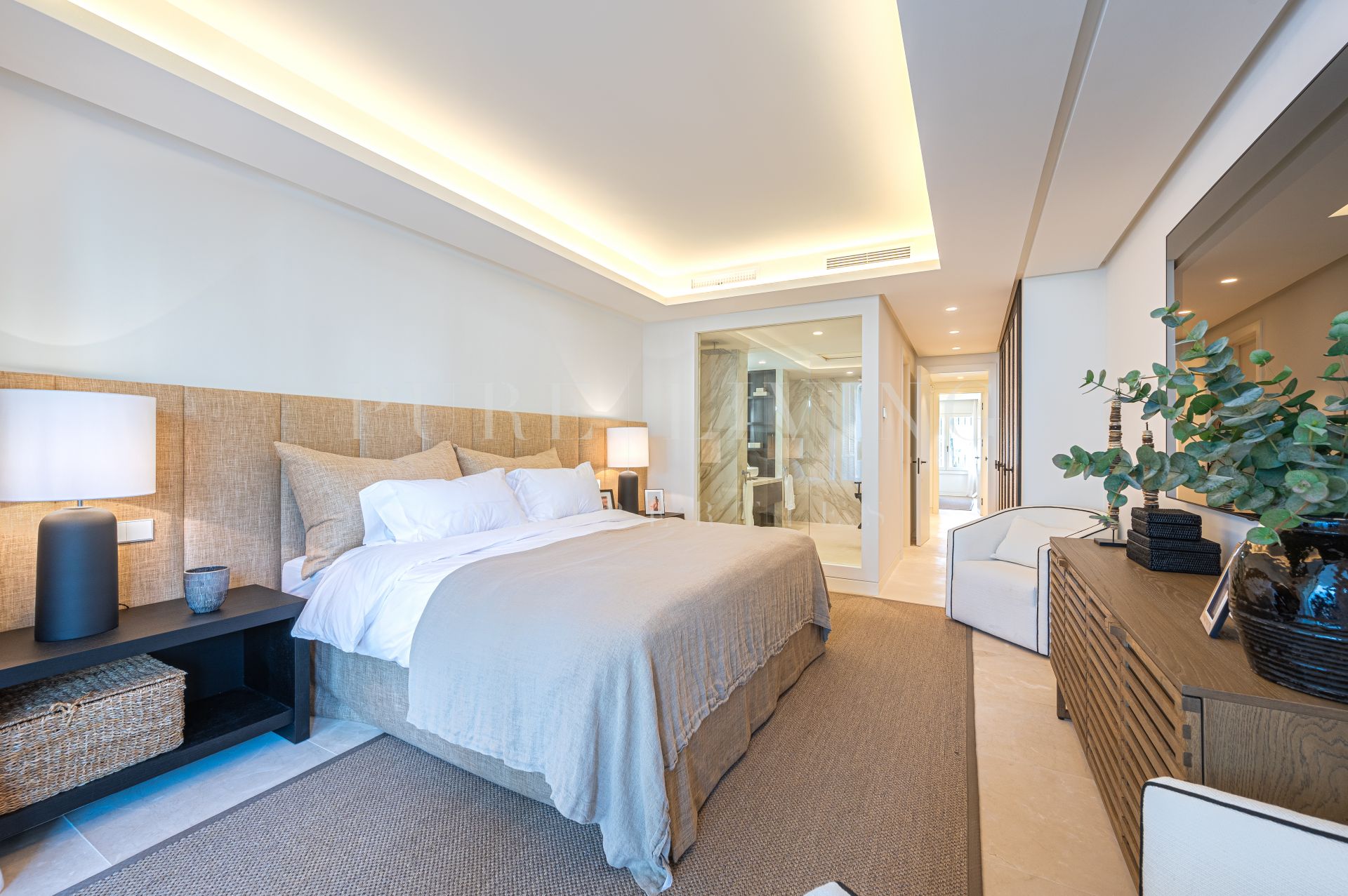 Cada uno de los 3 amplios dormitorios cuenta con un cuarto de baño privado en-suite, con un montón de espacio en el armario y tocador diseñado con un estilo increíble. El apartamento también incluye un aseo de invitados independiente, zona de lavandería, aparcamiento subterráneo privado y un trastero.