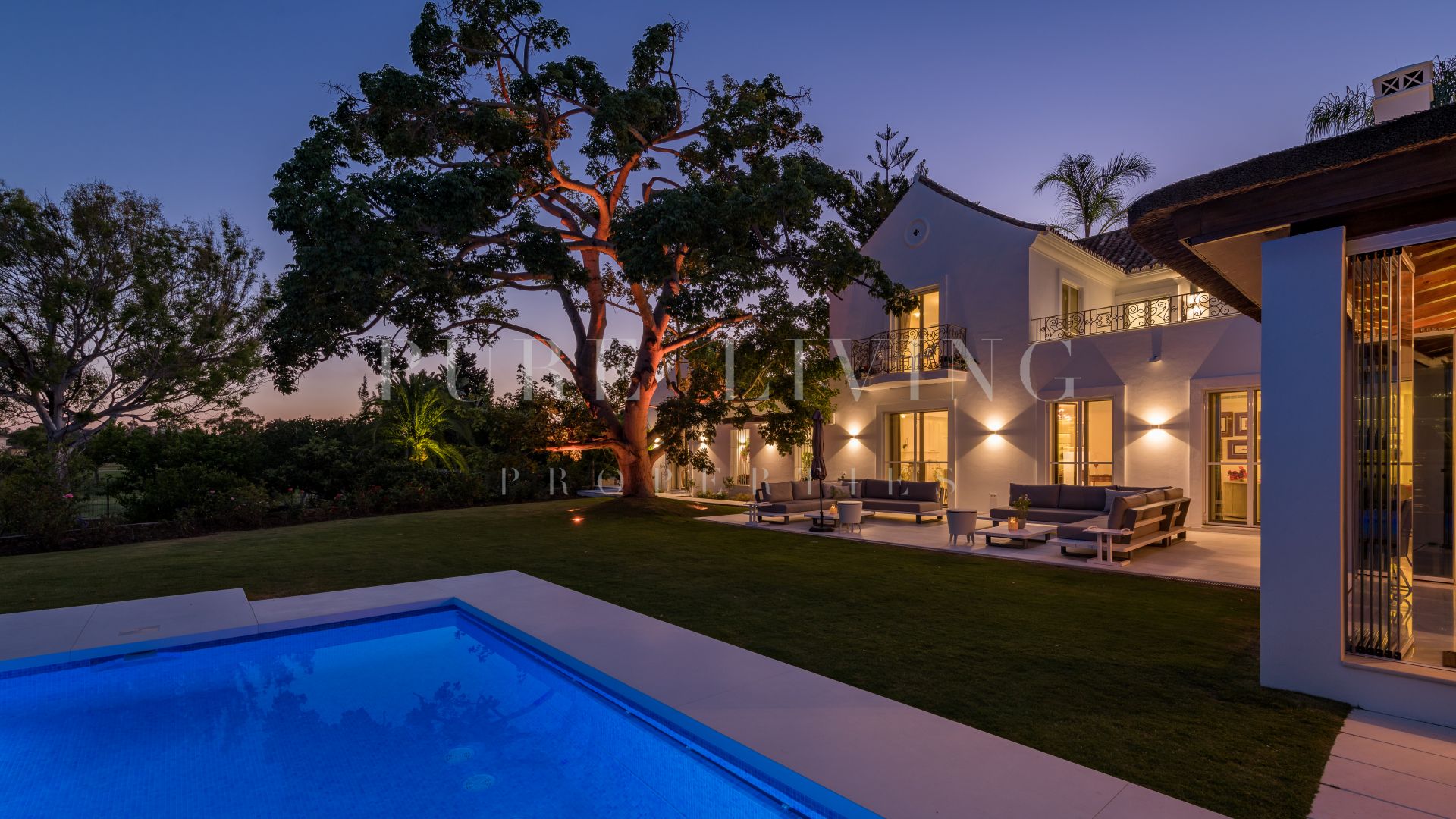 En el exterior, los jardines cuidados, las amplias terrazas y una espectacular piscina de varios niveles con cascada crean un entorno ideal para el descanso y el entretenimiento. La propiedad cuenta además con acceso directo al campo de golf Los Naranjos, lo que la convierte en una opción ideal para los amantes del golf.