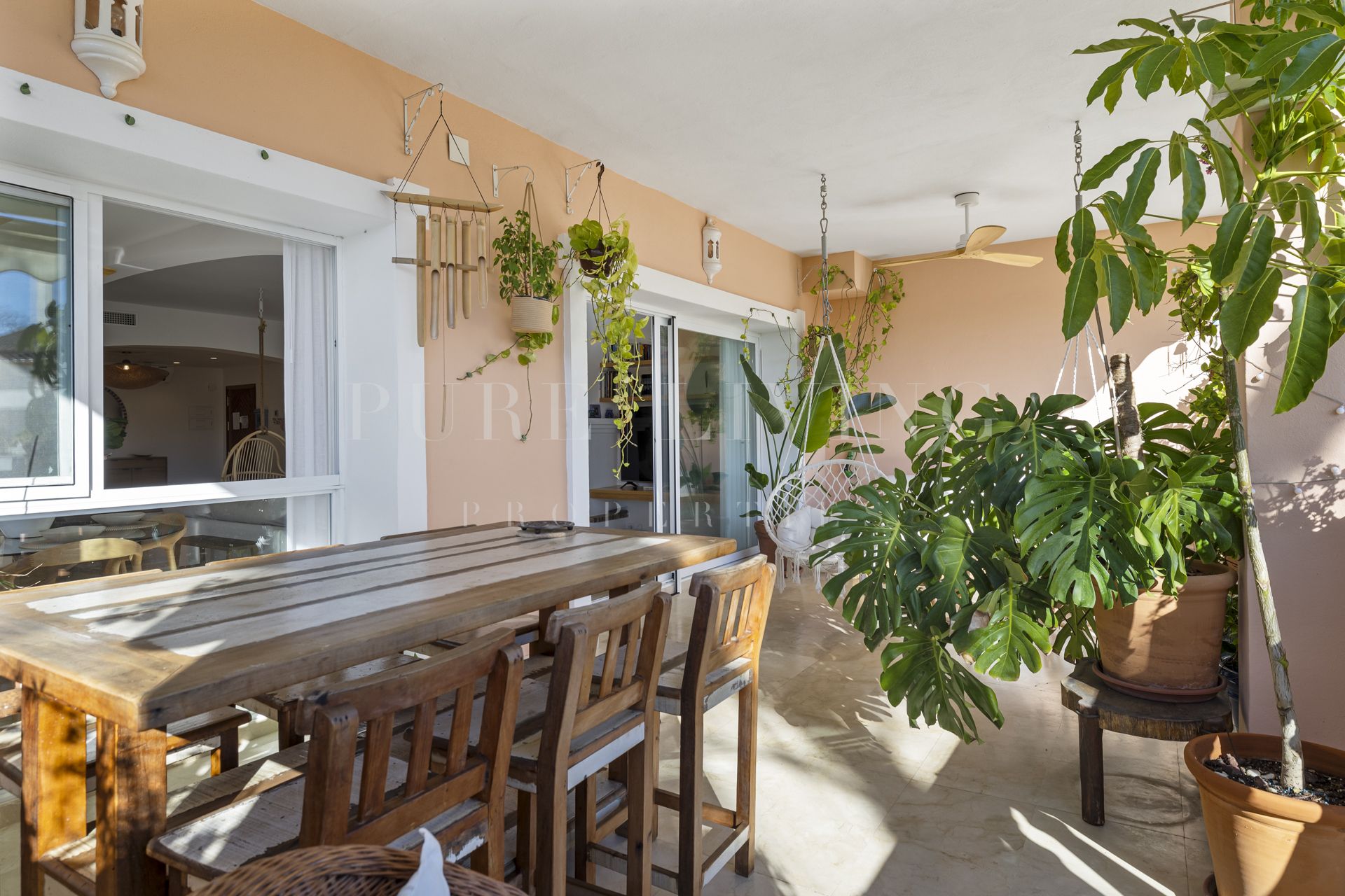 Viva a solo 80 metros de la playa en este ático dúplex bellamente renovado, idealmente diseñado para una vida familiar cómoda en una de las zonas más codiciadas de la Nueva Milla de Oro, con una ubicación ideal entre Puerto Banús y Estepona.