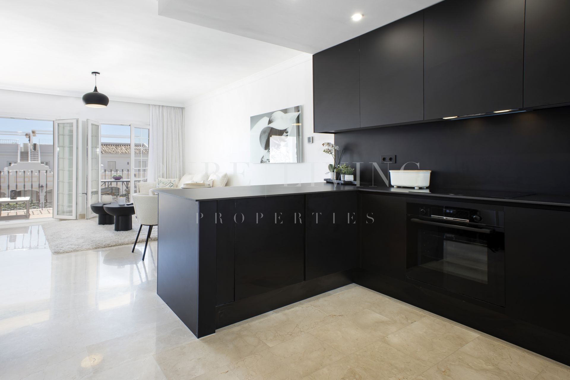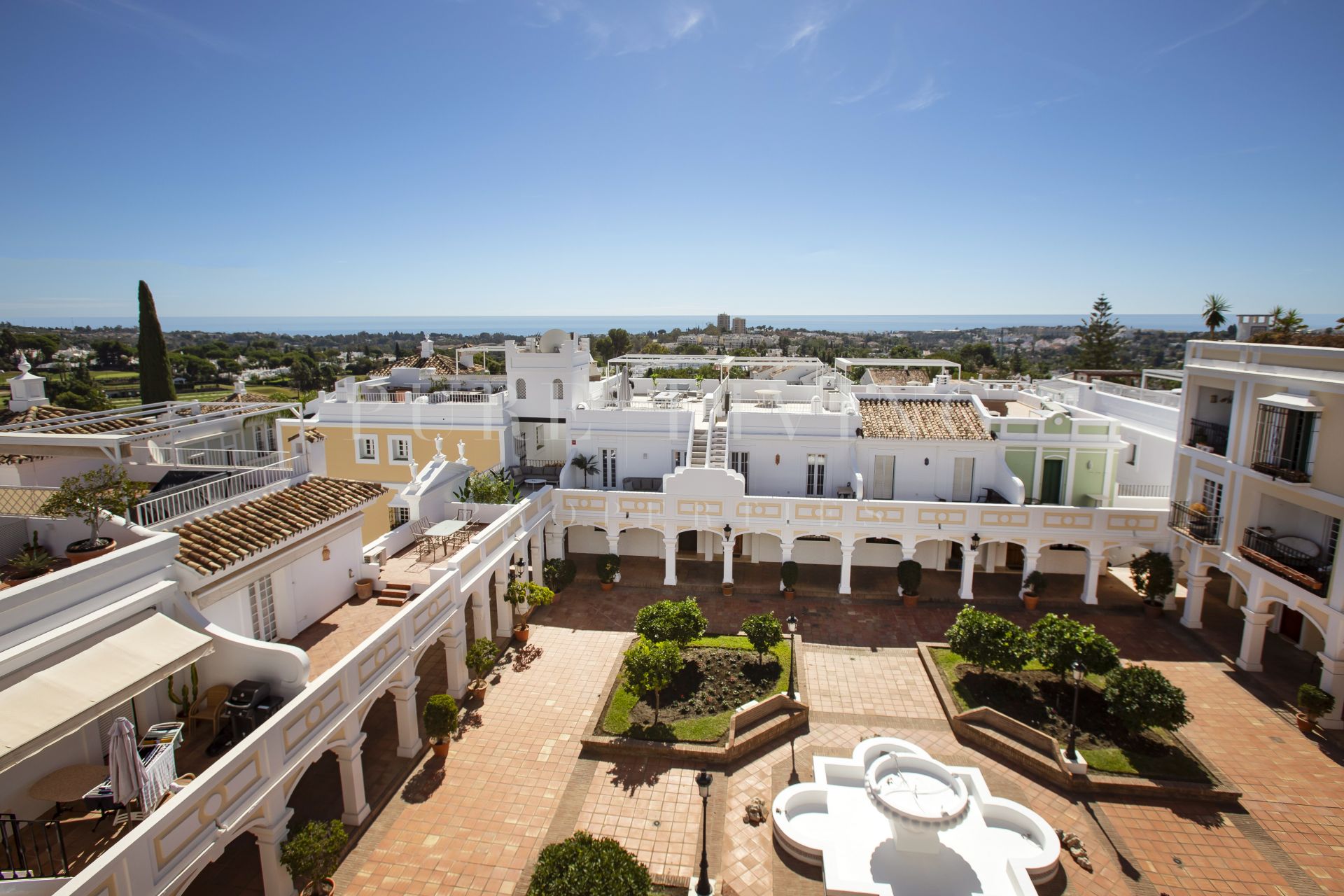 Services de proximité, Transport proche, Portier, À proximité des commerces, Climatisation, Près de la ville, Cuisine entièrement adaptée, Parc pour enfants proche, Cheminée, Proche de la mer/plage, Golf à proximité, Terrasse découverte, Portes en verre, Cuisine ouverte, Terrasse couverte, Meubles en option, Placards, Résidence fermée, Excellent état, Vue panoramique.