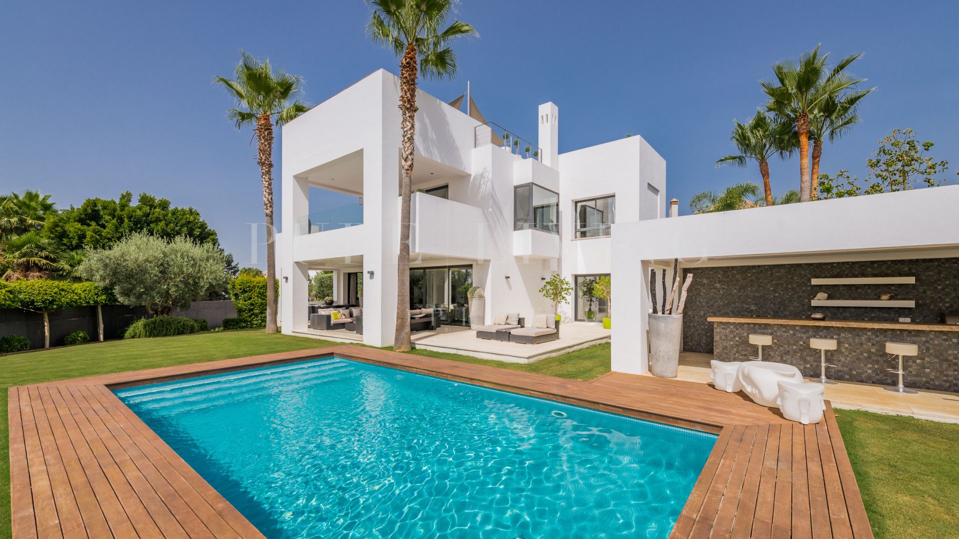 Cette villa combine luxe moderne et élégance méditerranéenne, offrant une expérience de vie raffinée dans l’une des zones les plus recherchées de Marbella.
