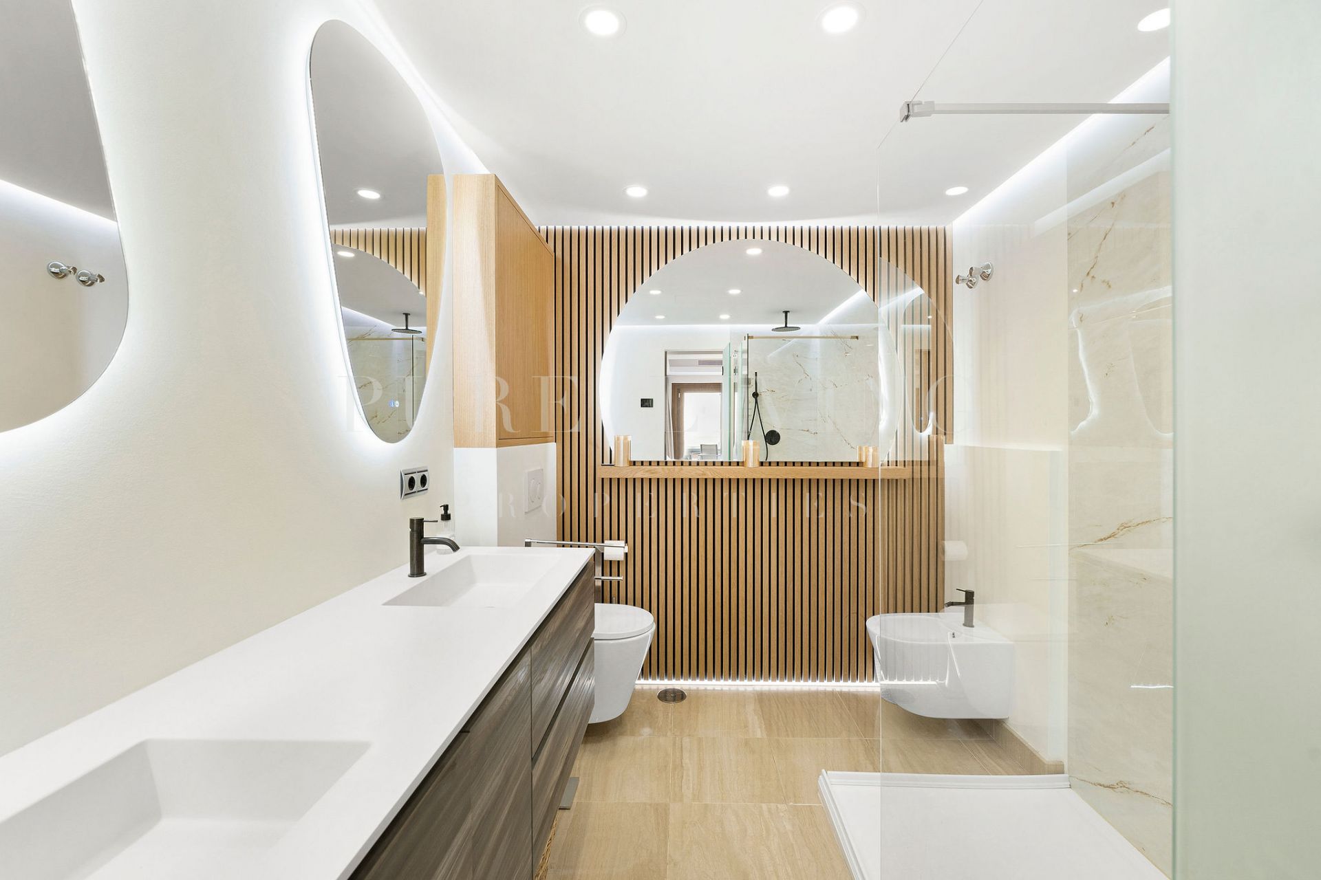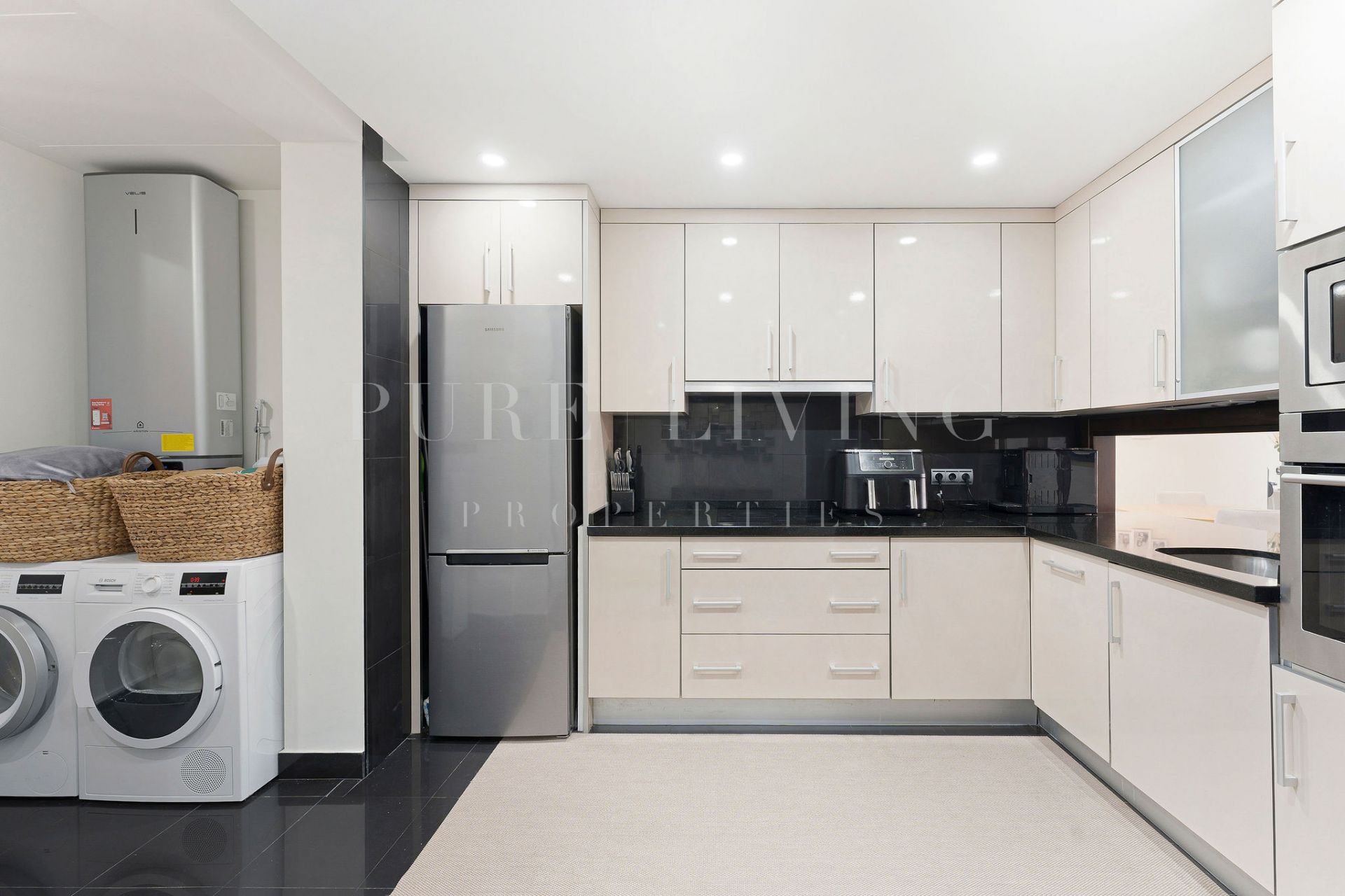 Situé dans la communauté fermée et exclusive de Bahía de la Plata, ce duplex de deux étages allie élégance traditionnelle et style côtier contemporain. Entièrement rénové en 2024 et offrant une surface totale de 320 m² — dont 175 m² d’espace intérieur et 140 m² de terrasses —, la propriété bénéficie d’une orientation sud, d’une lumière naturelle abondante et d’une vue dégagée sur la mer Méditerranée.