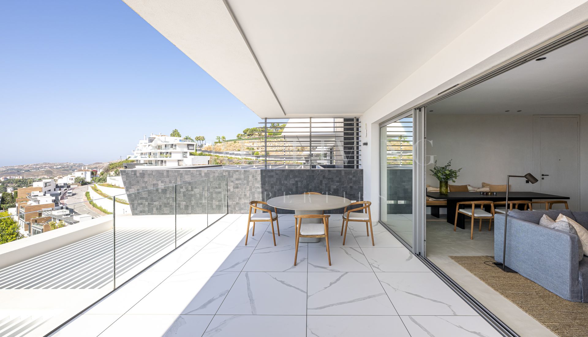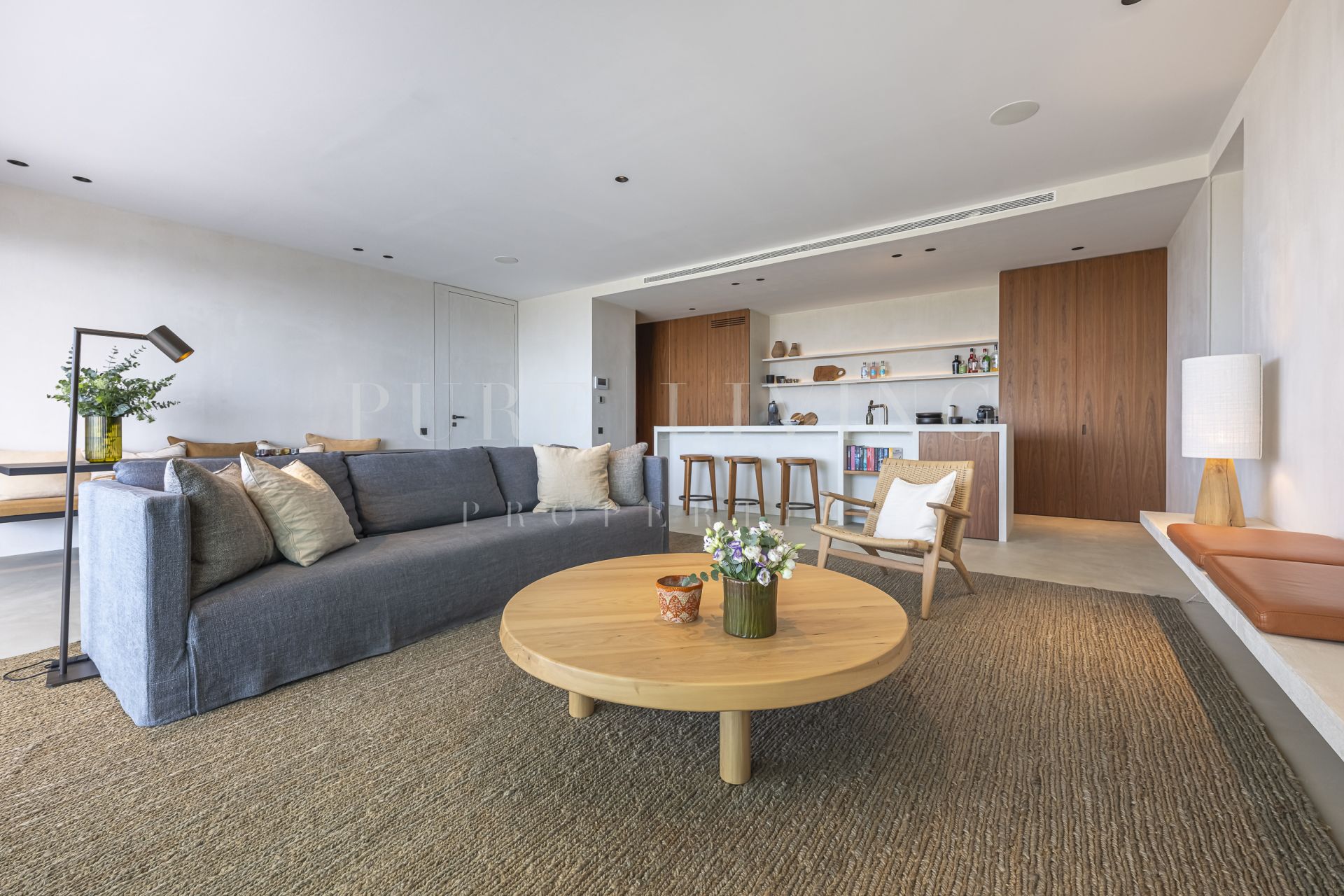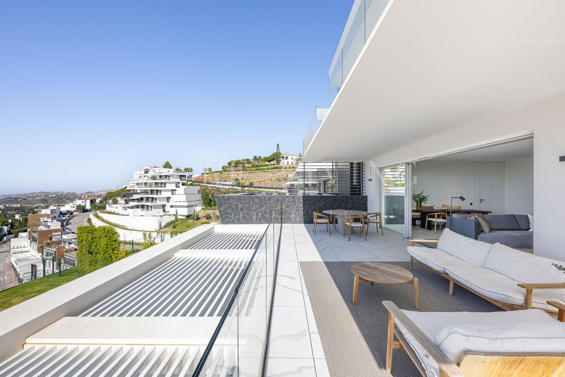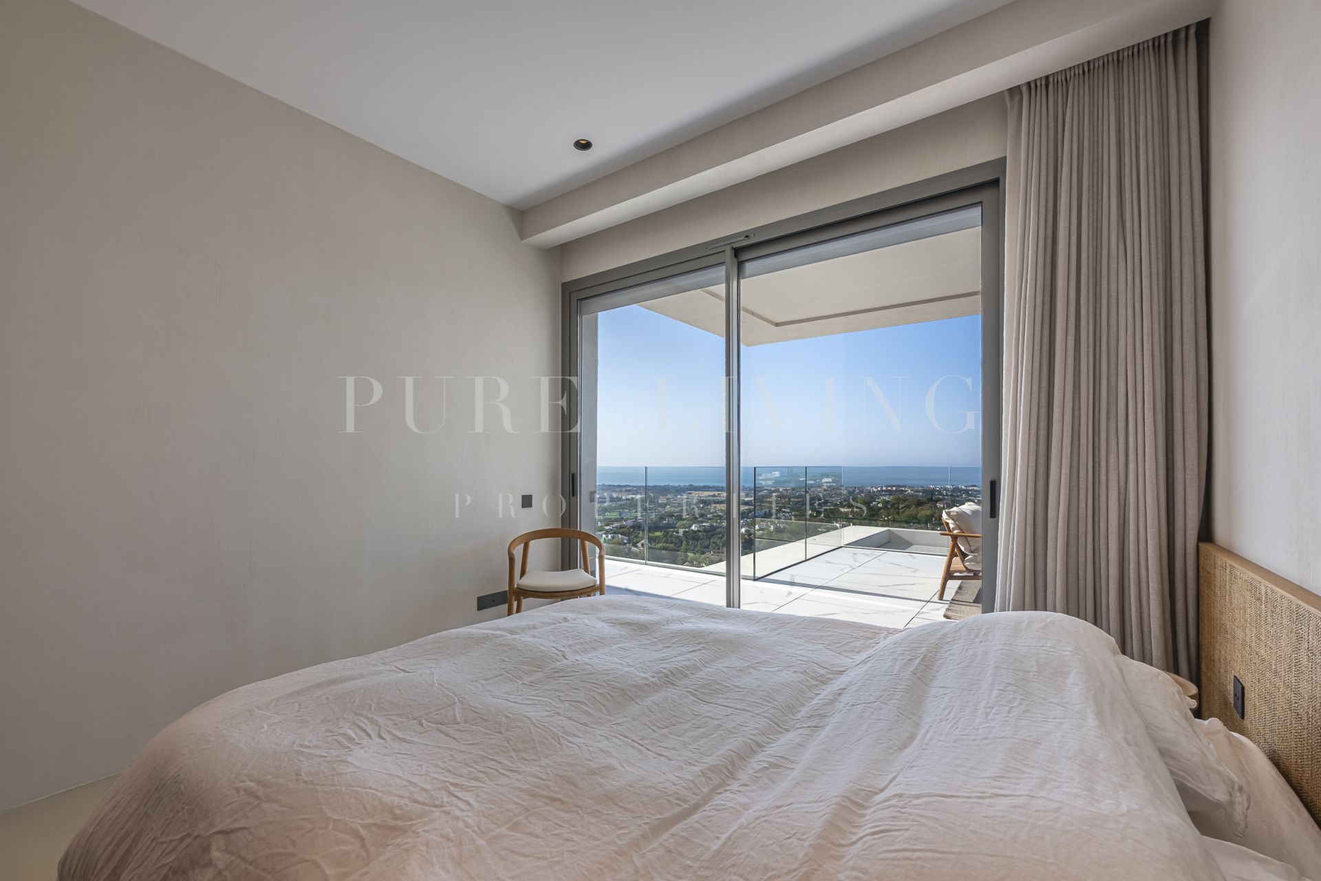 Cet appartement exquis au premier étage incarne le prestige, la modernité et le luxe, conçu selon les plus hauts standards de qualité et de design. La résidence comprend trois chambres, dont une somptueuse suite parentale avec salle de bain attenante. Le vaste espace de vie intègre harmonieusement une cuisine ouverte au design élégant, créant une atmosphère raffinée et accueillante. De larges baies vitrées s’ouvrent sur une magnifique terrasse, alliant harmonieusement l’intérieur aux superbes paysages extérieurs.