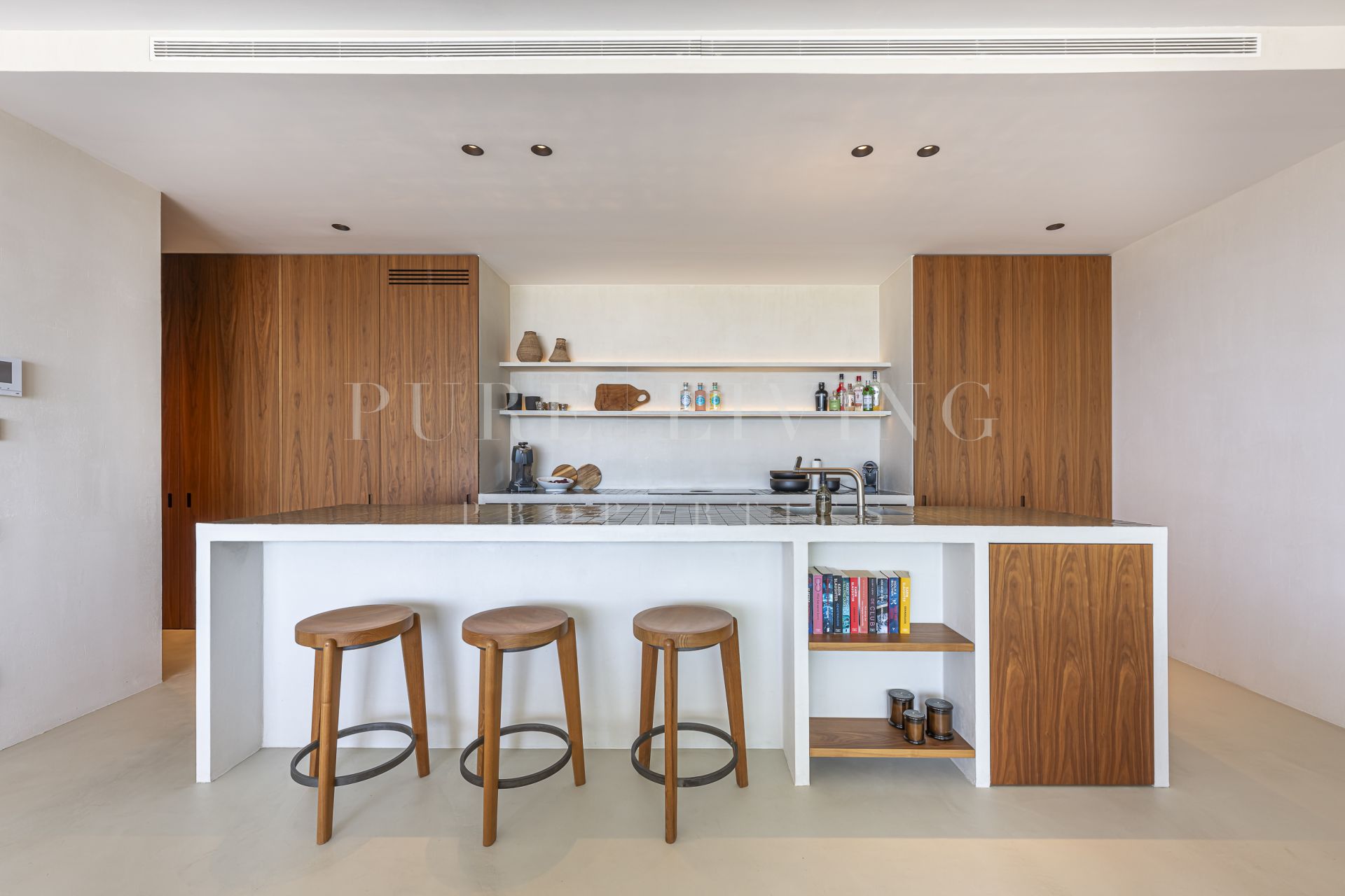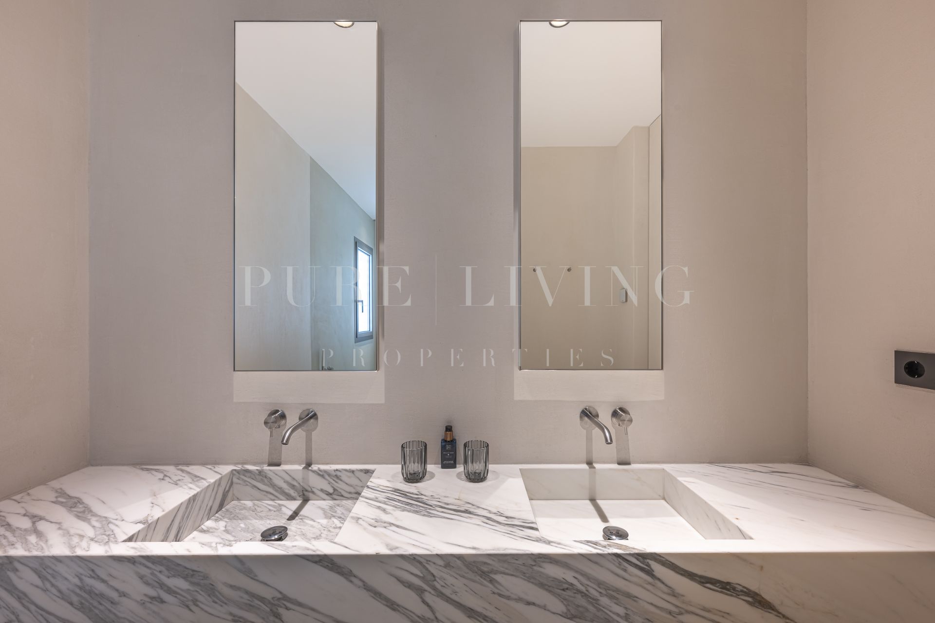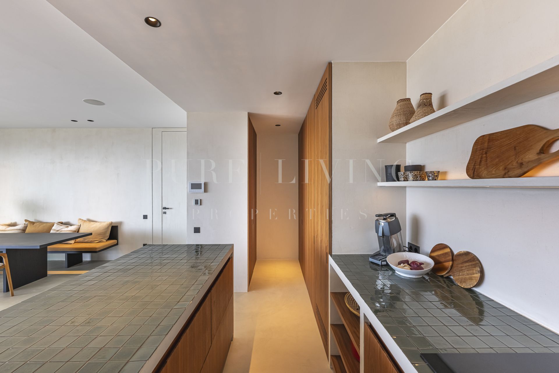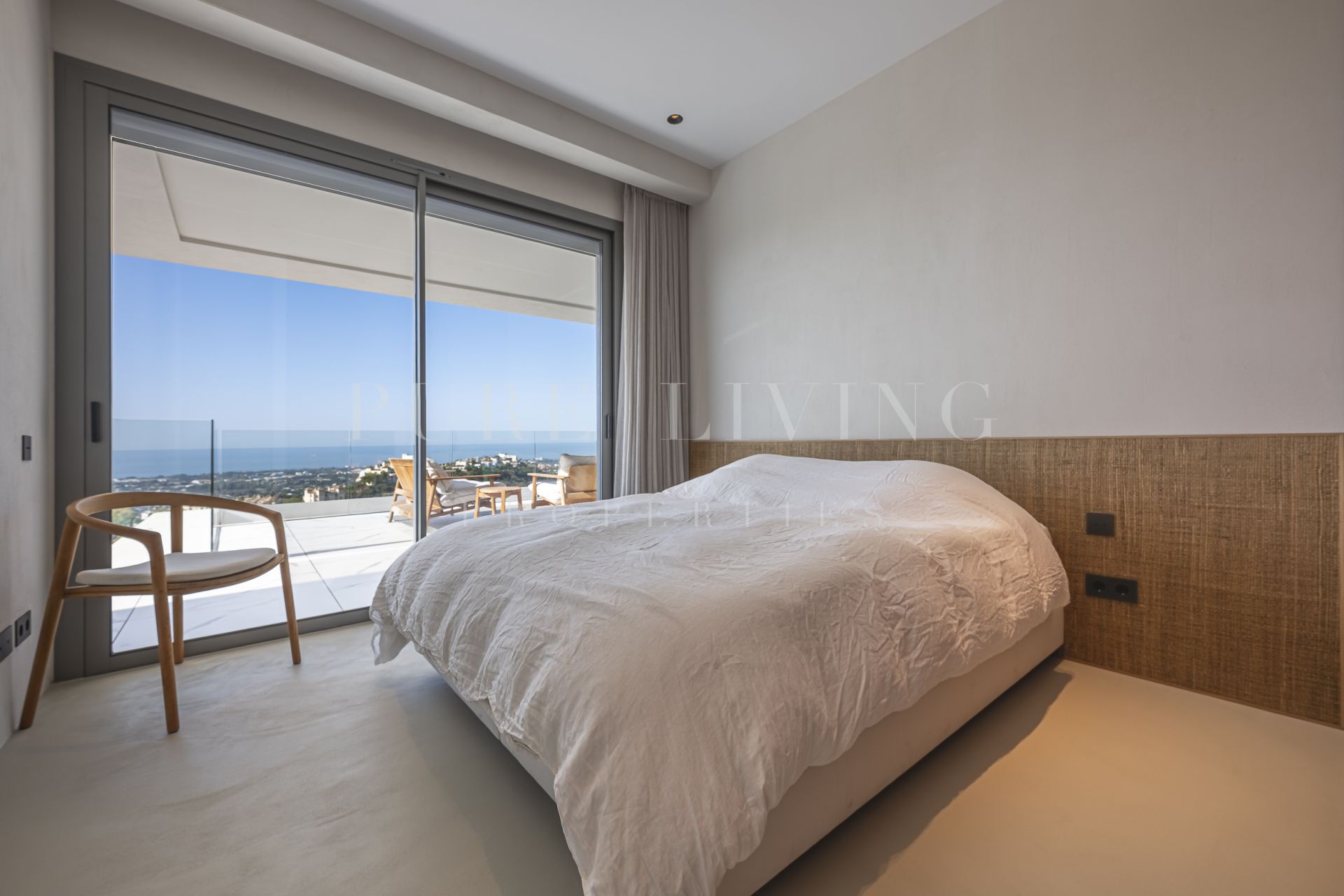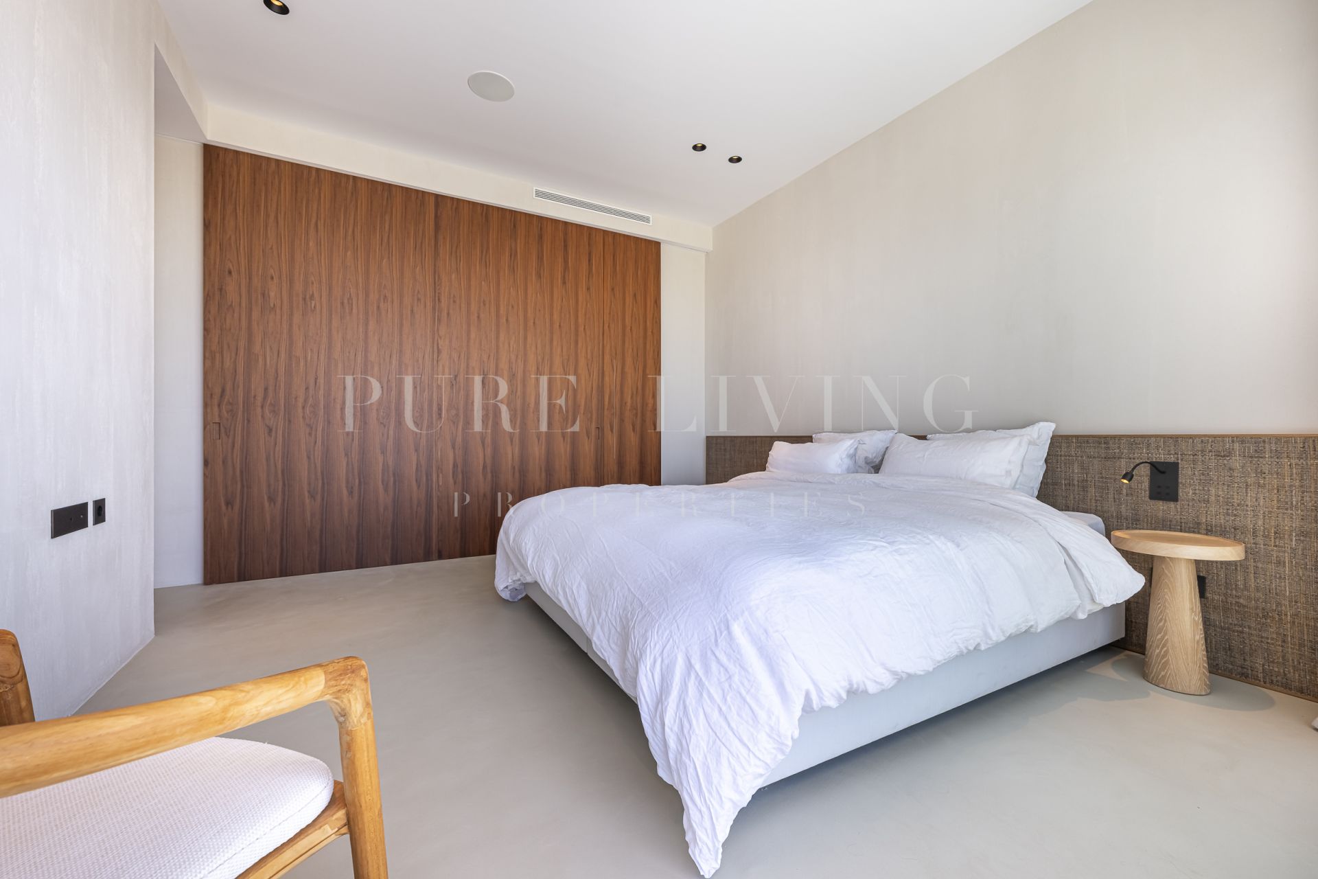 Cet appartement exquis au premier étage incarne le prestige, la modernité et le luxe, conçu selon les plus hauts standards de qualité et de design. La résidence comprend trois chambres, dont une somptueuse suite parentale avec salle de bain attenante. Le vaste espace de vie intègre harmonieusement une cuisine ouverte au design élégant, créant une atmosphère raffinée et accueillante. De larges baies vitrées s’ouvrent sur une magnifique terrasse, alliant harmonieusement l’intérieur aux superbes paysages extérieurs.