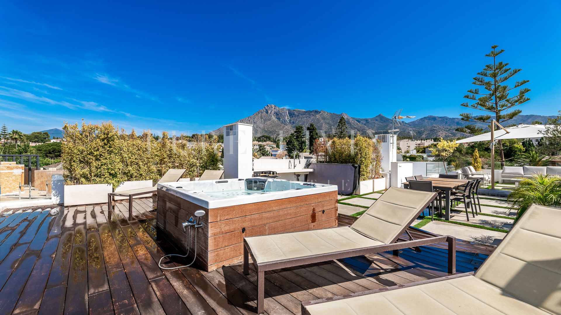 Découvrez l’élégance du style de vie contemporain dans Casablanca, l’un des quartiers les plus exclusifs en bord de mer à Marbella. Située à quelques pas du célèbre Marbella Club, de l’hôtel Puente Romano et du centre-ville de Marbella, cette magnifique propriété offre un équilibre parfait entre luxe, tranquillité et proximité des meilleures adresses de la région.