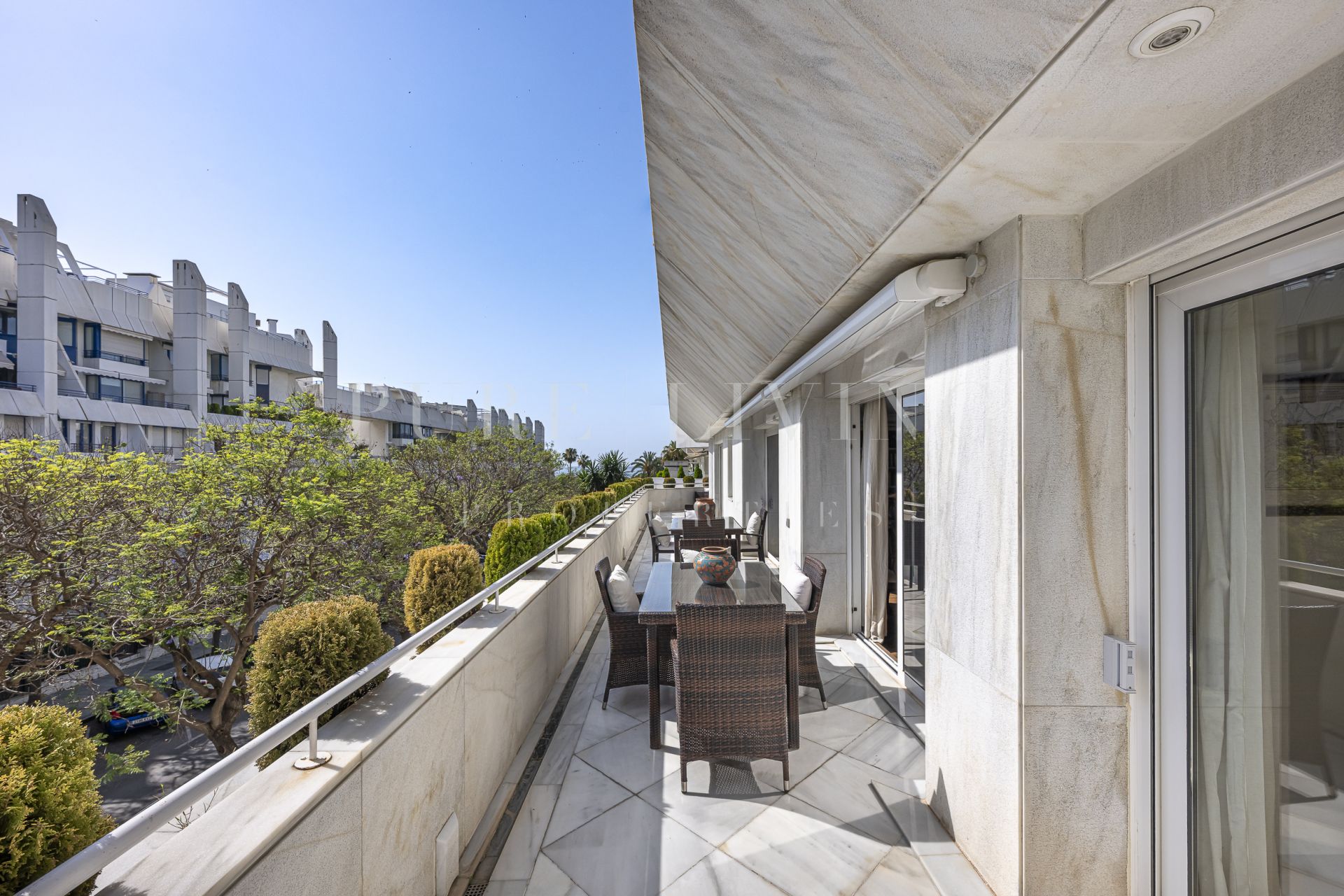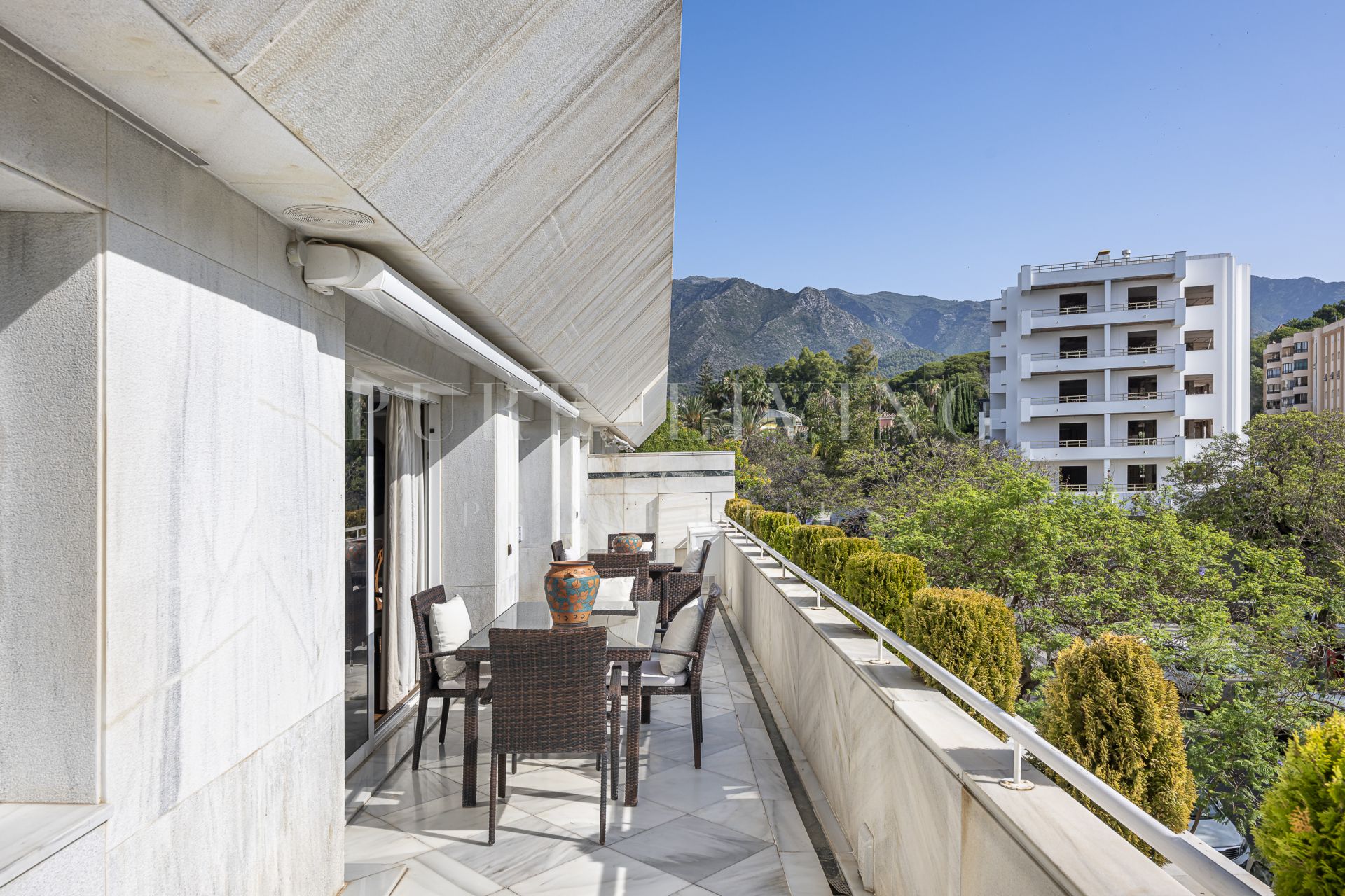 Appréciez les finitions élégantes de chaque pièce, avec notamment un sol en marbre, des placards intégrés et la climatisation centrale. La propriété est baignée de lumière naturelle grâce à sa position dominante et à son excellente orientation. Elle comprend également deux places de parking souterraines, un atout essentiel dans cet emplacement privilégié de Marbella.