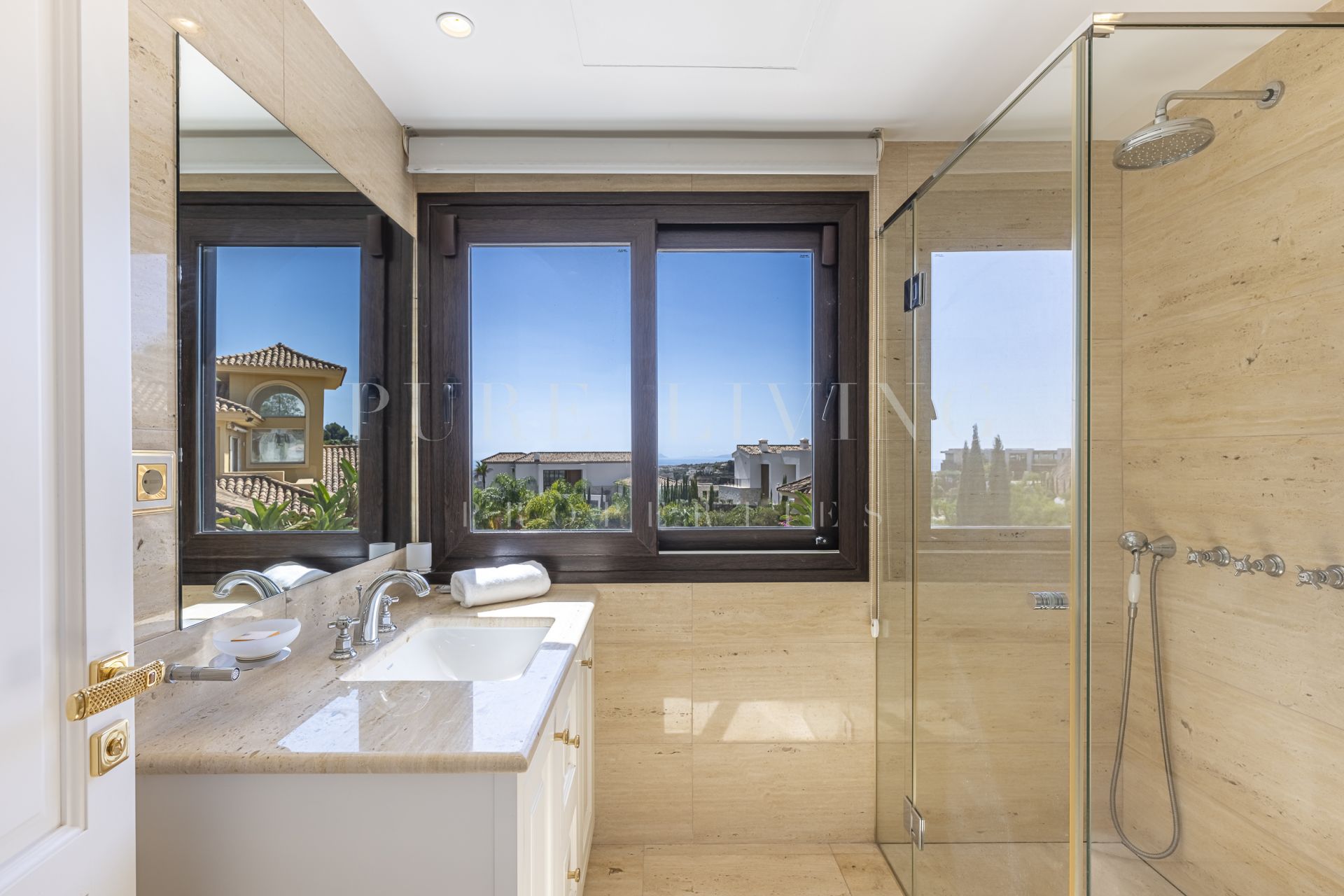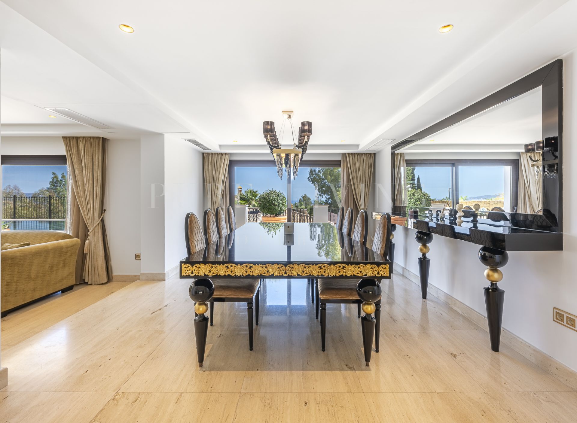 À proximité des commerces, Proche des écoles, Vue mer, SurveillanceCameras, Bureau, Bars, Terrasse couverte, Placards, Résidence fermée, Ascenseur, Vue sur le jardin, Dressing, OutdoorKitchen, Salle de cinéma, Services de proximité, Portier, Climatisation, Cuisine entièrement adaptée, Pièce de service, Parc pour enfants proche, Golf à proximité, Terrasse découverte, Cave, Salle de jeux, Portes en verre, Chambre d'invités, Entrepôt, Salle de gym, Alarme, Meubles en option, Entrée sécurizé, Video interphone, Excellent état, Salle à manger.