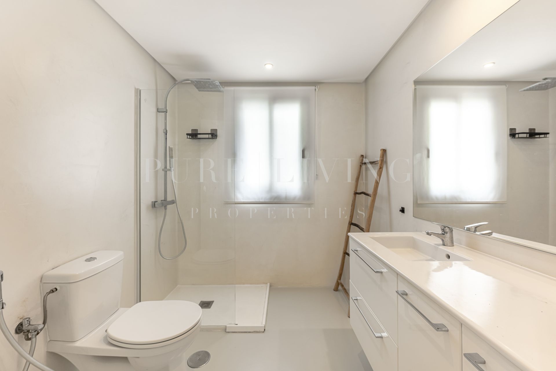 Le confort moderne, tel que la climatisation, les armoires encastrées, les stores électriques et les nombreux espaces de rangement, garantit une vie facile, tandis que les grandes portes vitrées inondent les pièces de lumière naturelle et relient magnifiquement les espaces intérieurs et extérieurs.