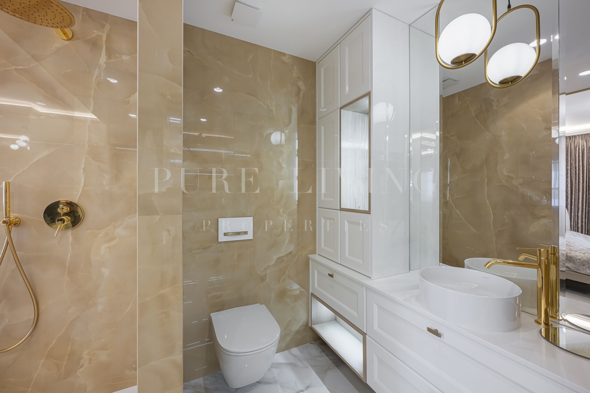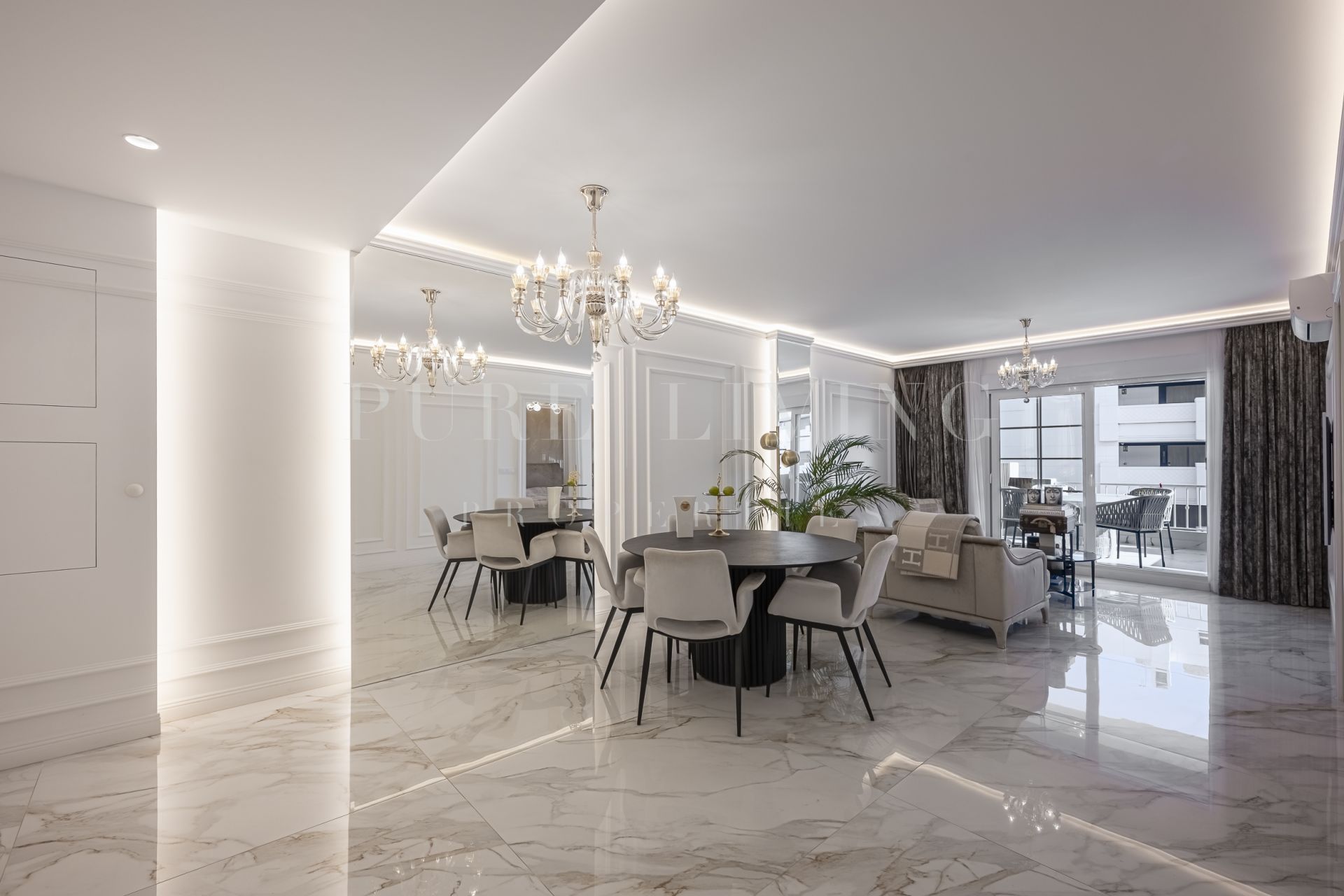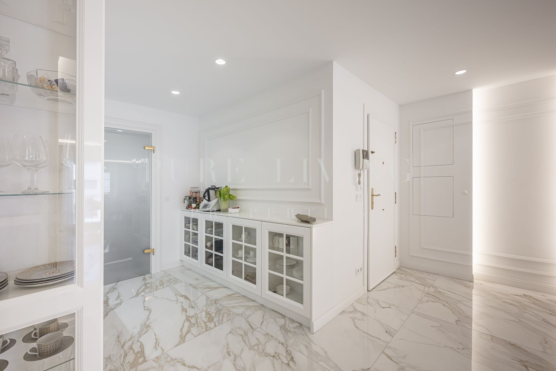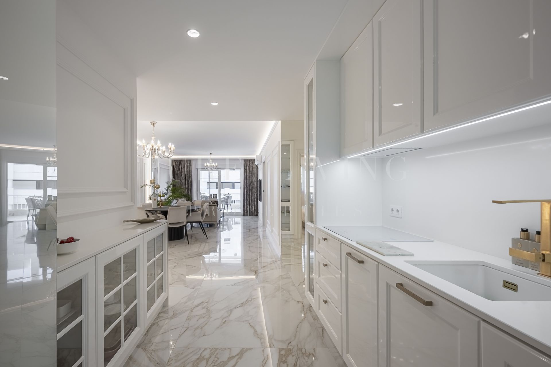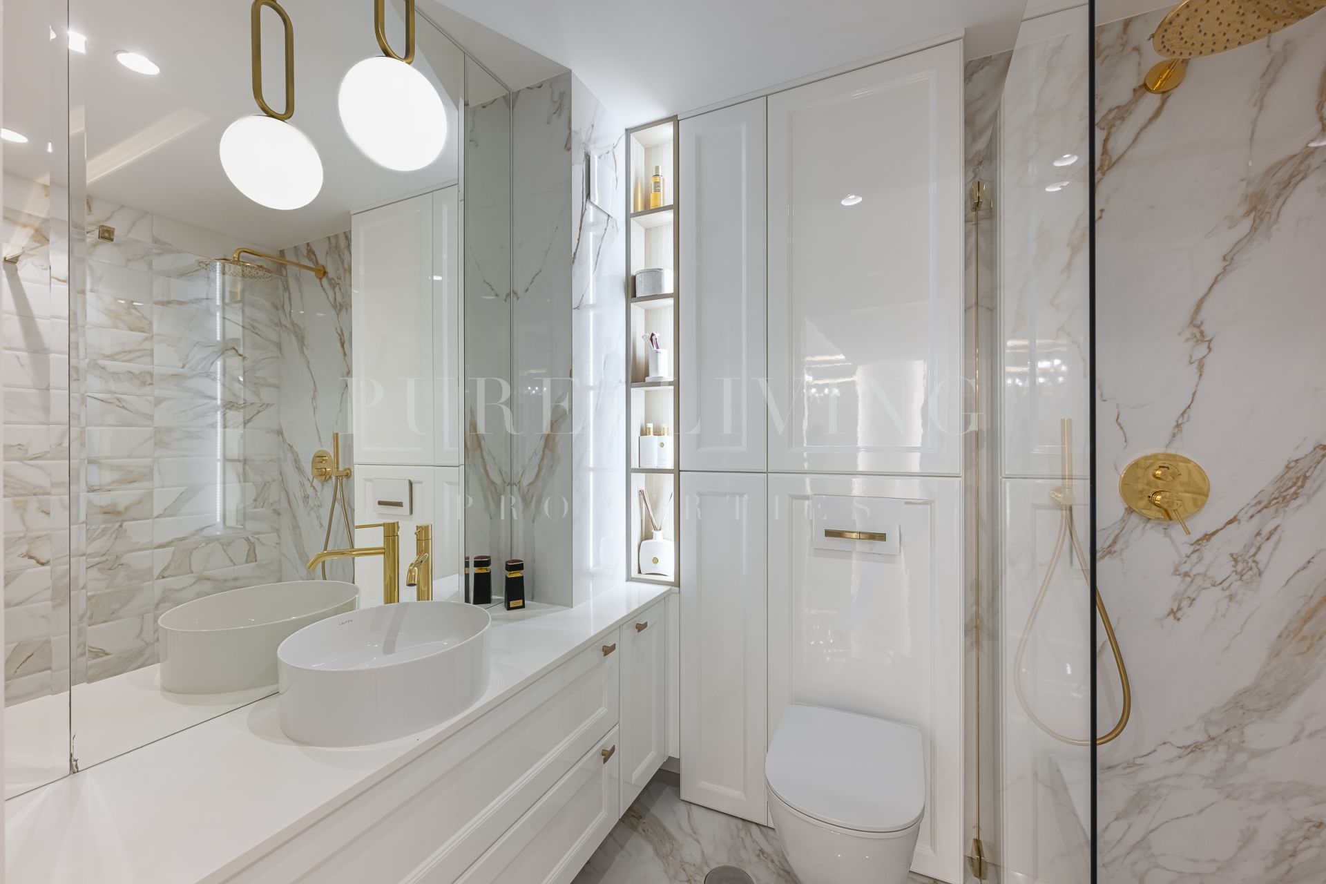 Rénové selon des normes élevées, l’appartement est présenté en excellent état et est entièrement meublé. Il dispose d’une cuisine moderne entièrement équipée avec des appareils de qualité et un espace de rangement généreux. Les espaces de vie spacieux et bien conçus comprennent la climatisation et des fenêtres à double vitrage, assurant à la fois confort et fonctionnalité. La propriété bénéficie également d’une terrasse privée et d’une terrasse couverte, parfaites pour vivre et recevoir en plein air toute l’année.