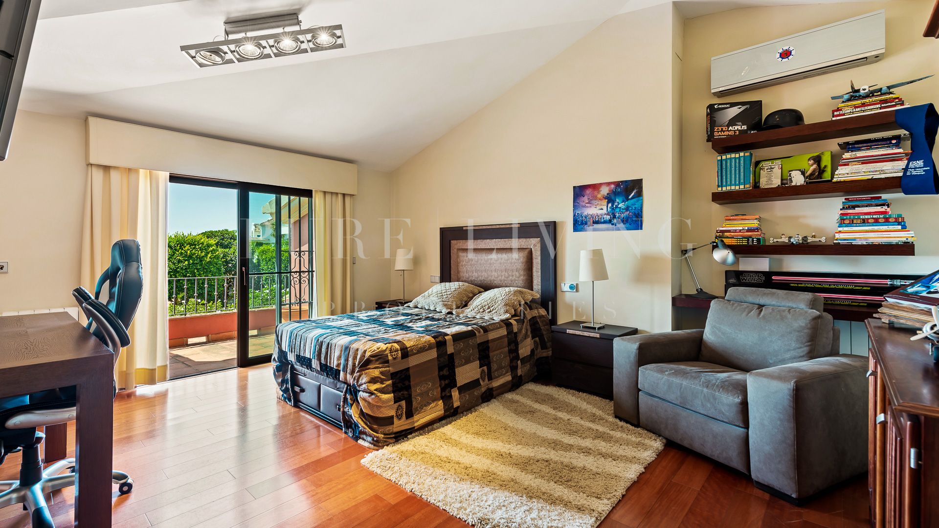Cette superbe villa de luxe est située dans le quartier prestigieux de Nueva Andalucia. Grâce à son emplacement privilégié, cette propriété offre des vues à couper le souffle sur les montagnes, la mer et le golf. La villa dispose de cinq chambres spacieuses, chacune avec sa propre salle de bains, ce qui offre beaucoup d’espace et d’intimité à tous les résidents. La superficie totale construite de la villa est de 684m², avec une terrasse supplémentaire de 91m², parfaite pour profiter du climat méditerranéen.