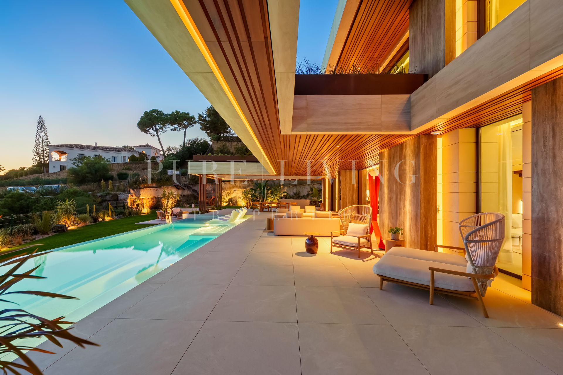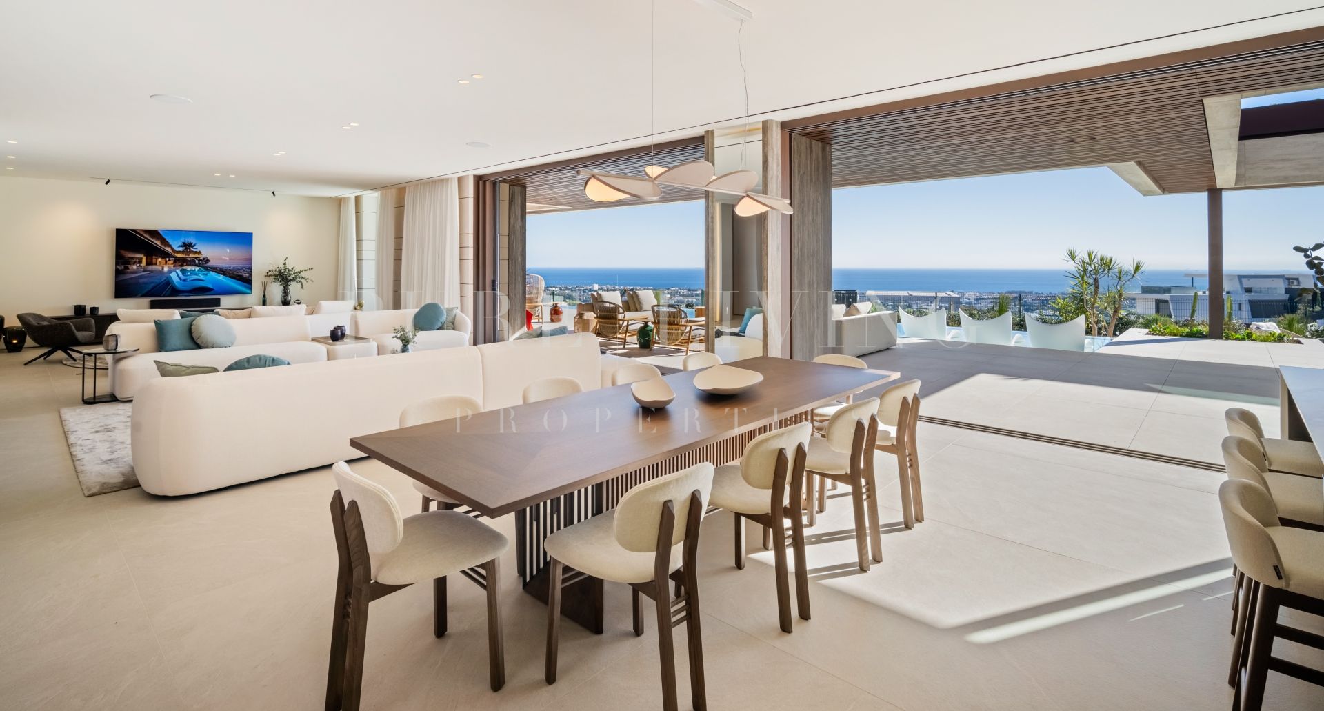 Villa à vendre à La Quinta, Benahavis avec 5 chambres à coucher, 5 salles de bains, 2 toilettes, construit dans 2027 et a piscine (privé), garage (privé) et jardin (privé). Dimensions: 822m² construit, 913m² parcelle, 747m² intérieur et 209m² terrasse.