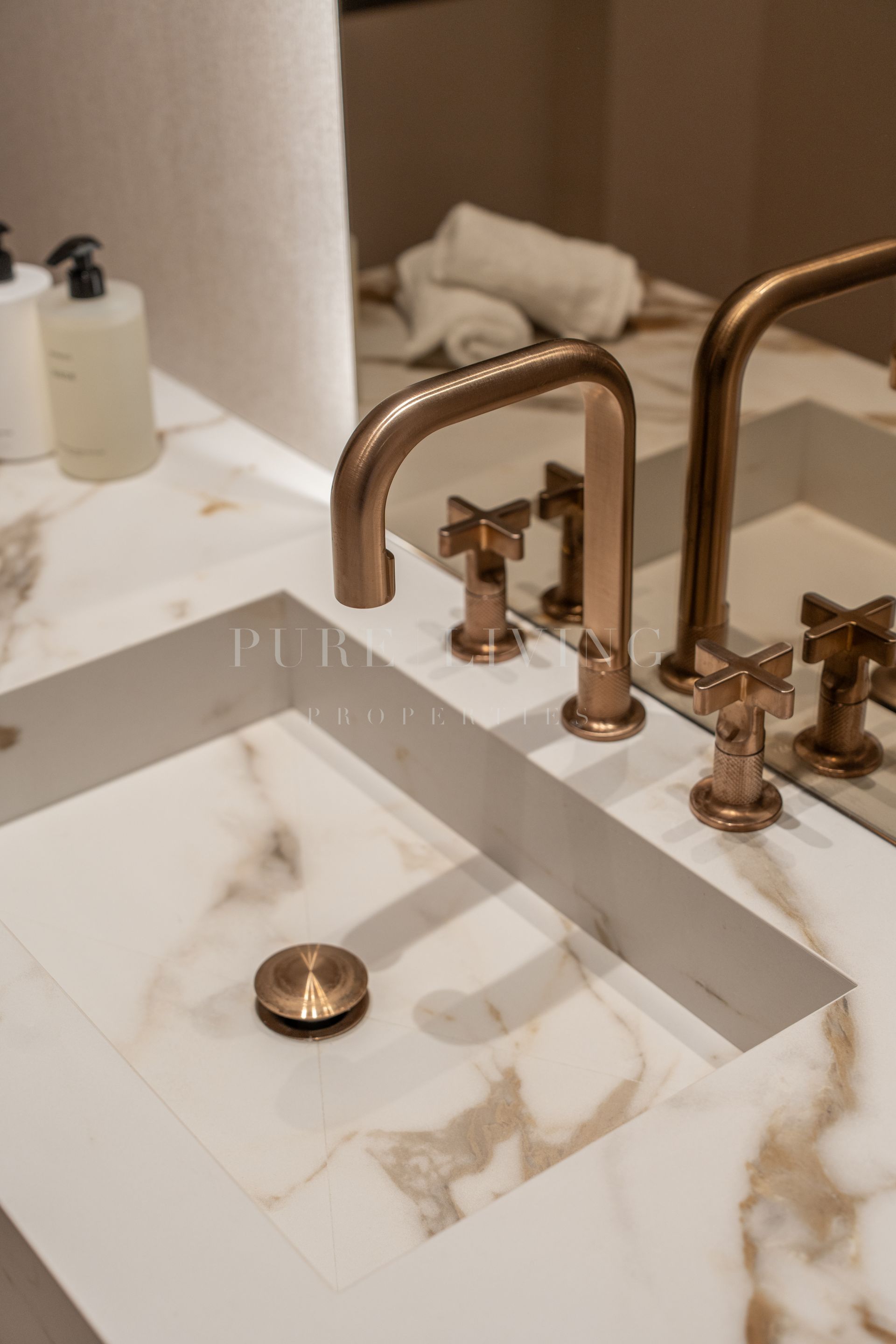 Parmi les prestations supplémentaires : des revêtements de sol design et une technologie domotique intégrée, permettant de contrôler l’éclairage, la température et la sécurité du bout des doigts. L’appartement dispose également d’une vaste terrasse privée, parfaite pour les repas en plein air ou simplement pour se détendre tout en admirant la vue imprenable.
