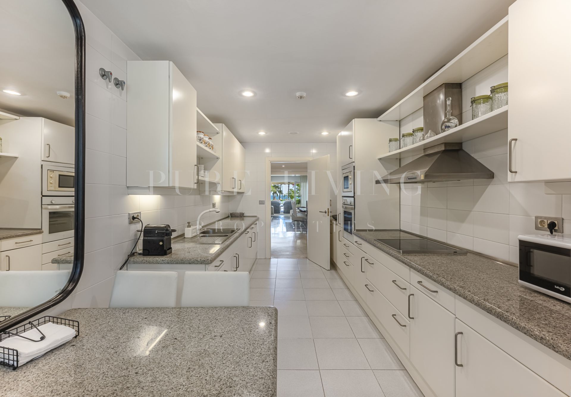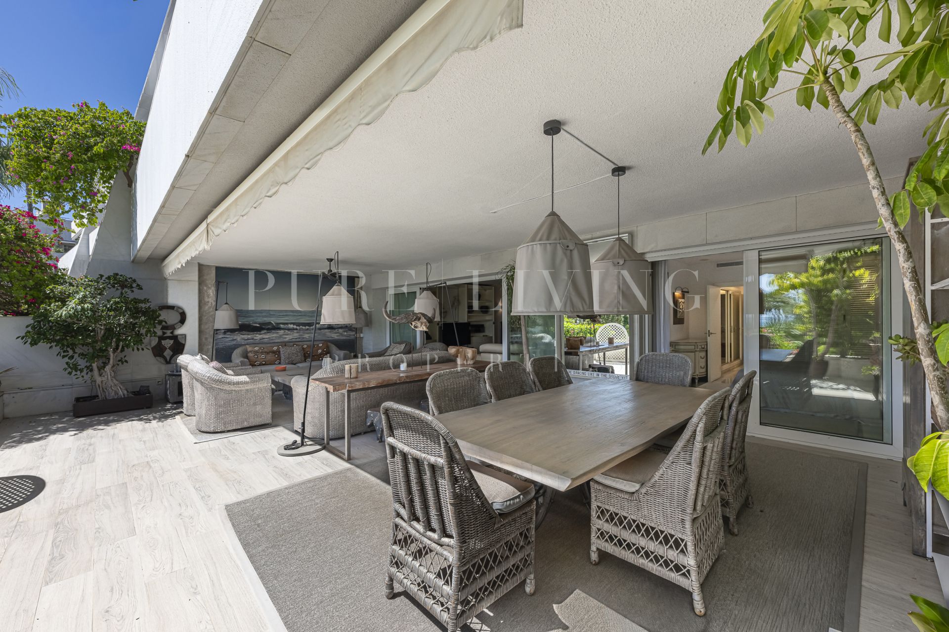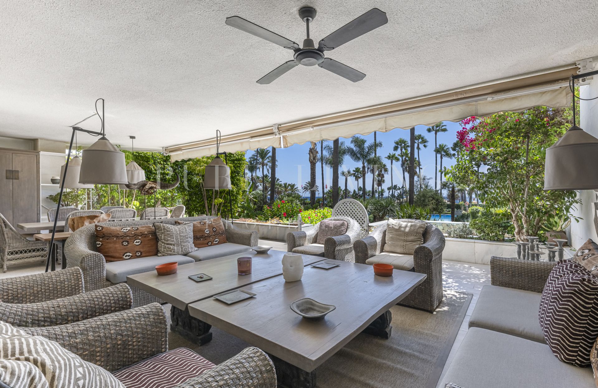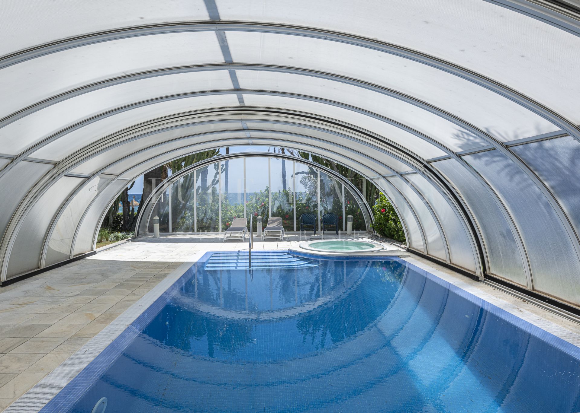 Découvrez votre jardin et votre piscine privés, parfaits pour se détendre ou recevoir, tandis que les terrasses couvertes et découvertes offrent des espaces de vie extérieurs polyvalents. L’appartement offre d’excellentes finitions, avec des sols en marbre, des portes vitrées, des placards intégrés et une cuisine entièrement équipée avec buanderie attenante.