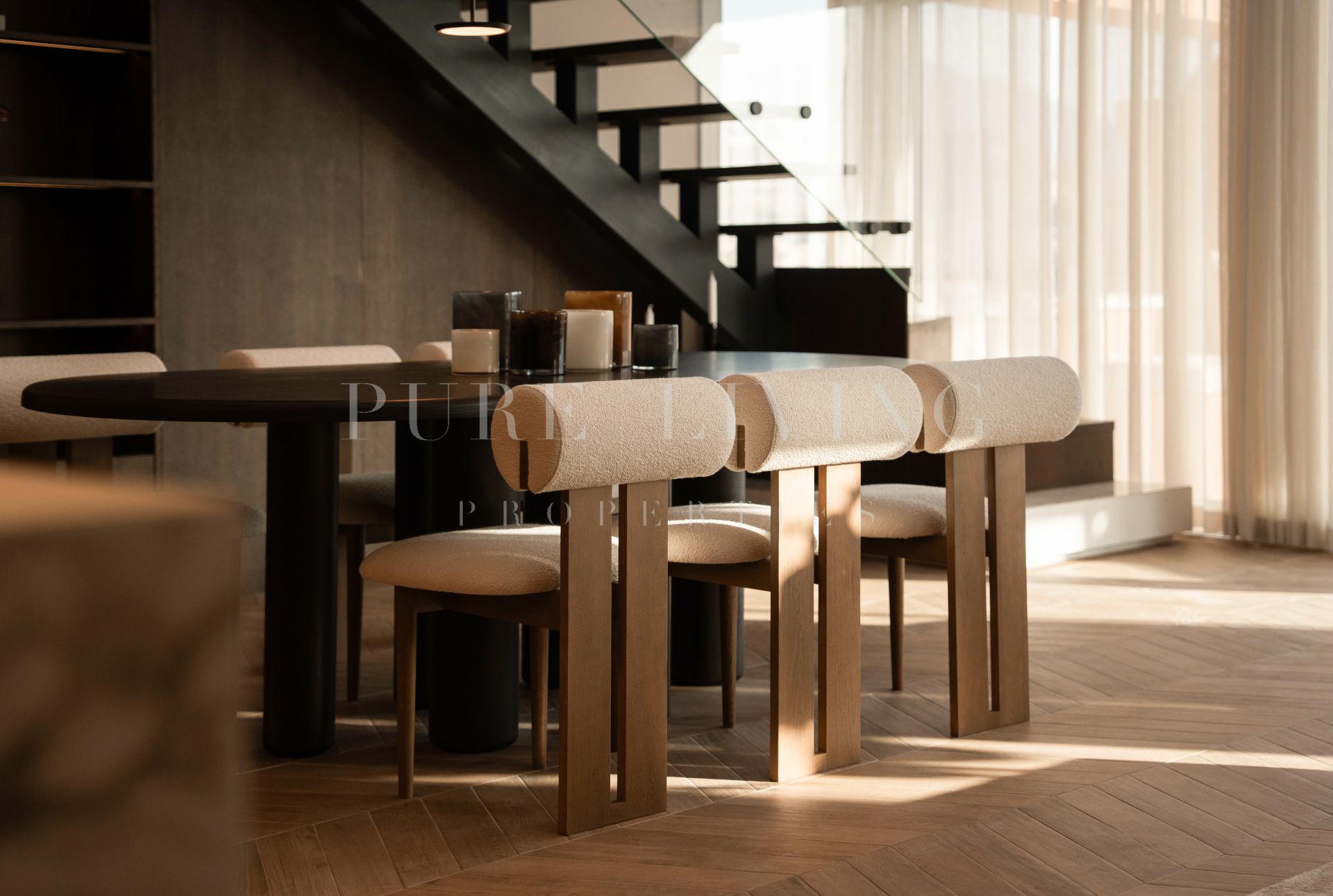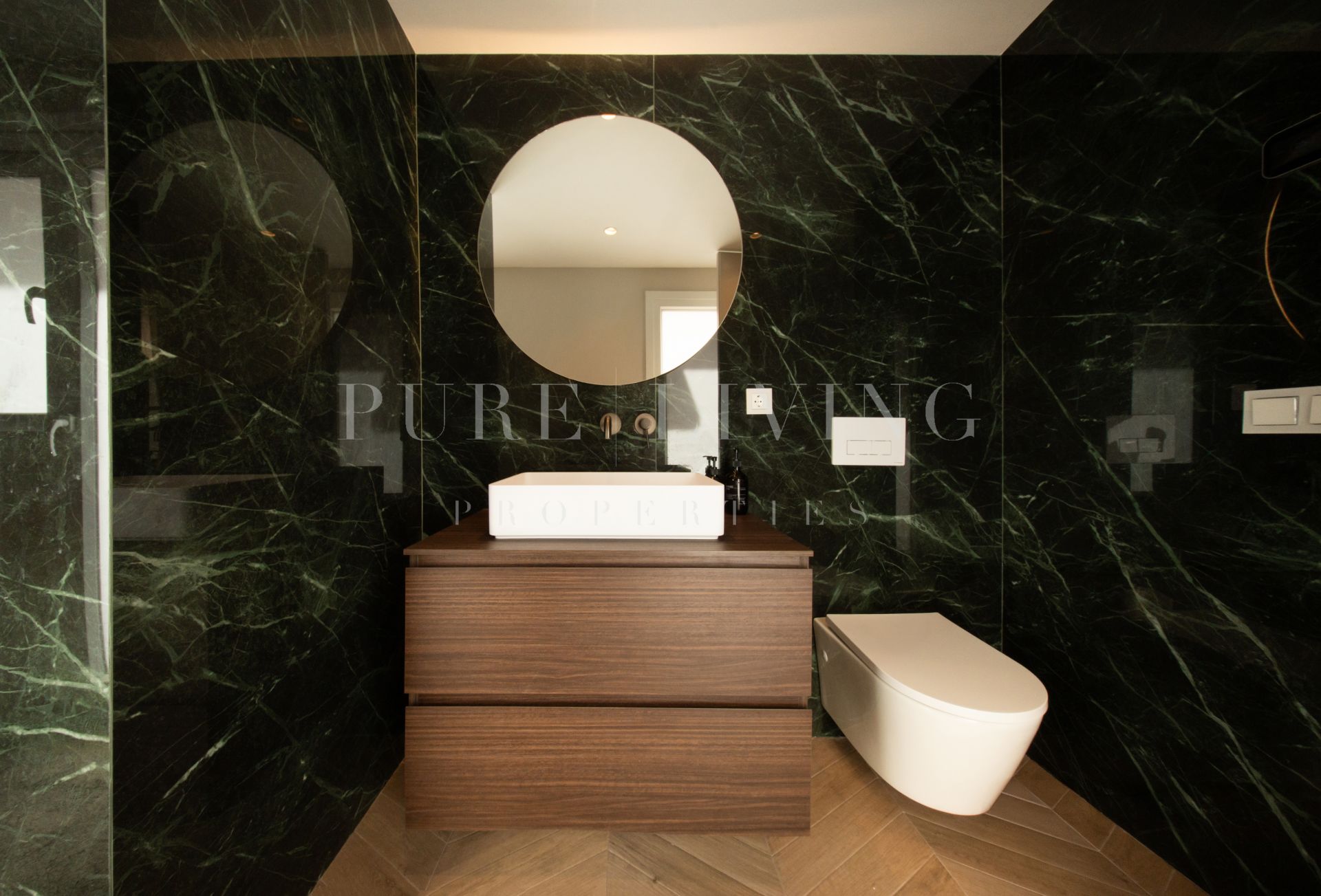 Réparti sur deux niveaux, l’appartement dispose d’un vaste espace de vie lumineux en open-space, avec de hauts plafonds en double hauteur qui accentuent la sensation d’espace et d’élégance. La cuisine contemporaine, parfaitement intégrée, est équipée d’appareils électroménagers haut de gamme et de finitions modernes et épurées. Chacune des trois chambres est spacieuse et dispose de sa propre salle de bains privative, avec chauffage au sol, pour un confort optimal toute l’année.