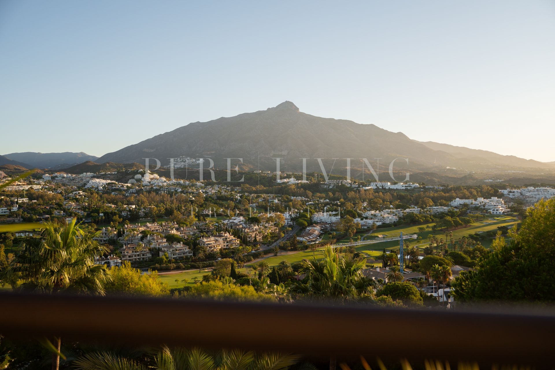 L’un des atouts majeurs de ce bien est sa grande terrasse privée sur le toit, véritable oasis extérieure. Vous y trouverez une piscine privée, des espaces de détente pour prendre le soleil, ainsi qu’une vaste zone pour les repas en plein air ou recevoir des invités, le tout avec une vue panoramique exceptionnelle sur la mer Méditerranée, la montagne La Concha et les terrains de golf environnants. Que ce soit pour se détendre au soleil ou organiser des soirées sous les étoiles, cet espace extérieur offre un style de vie incomparable.