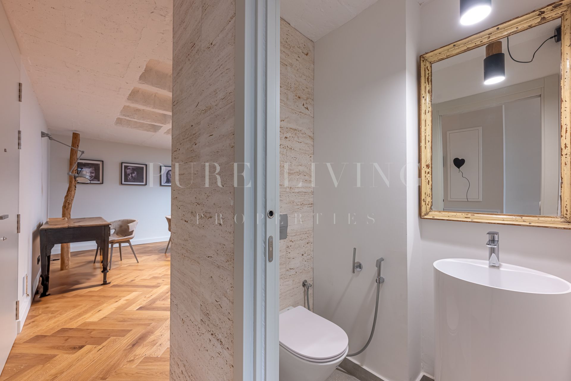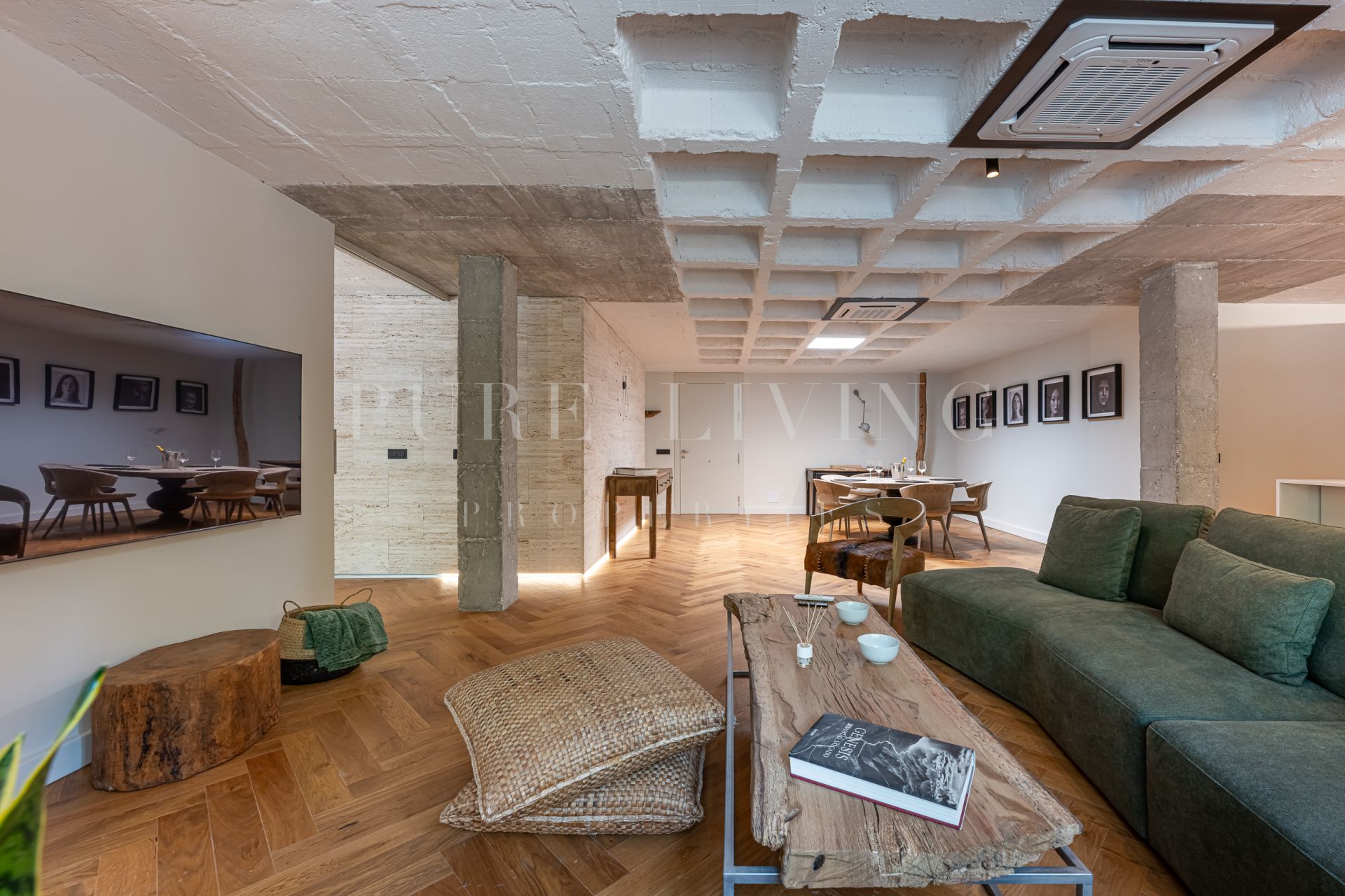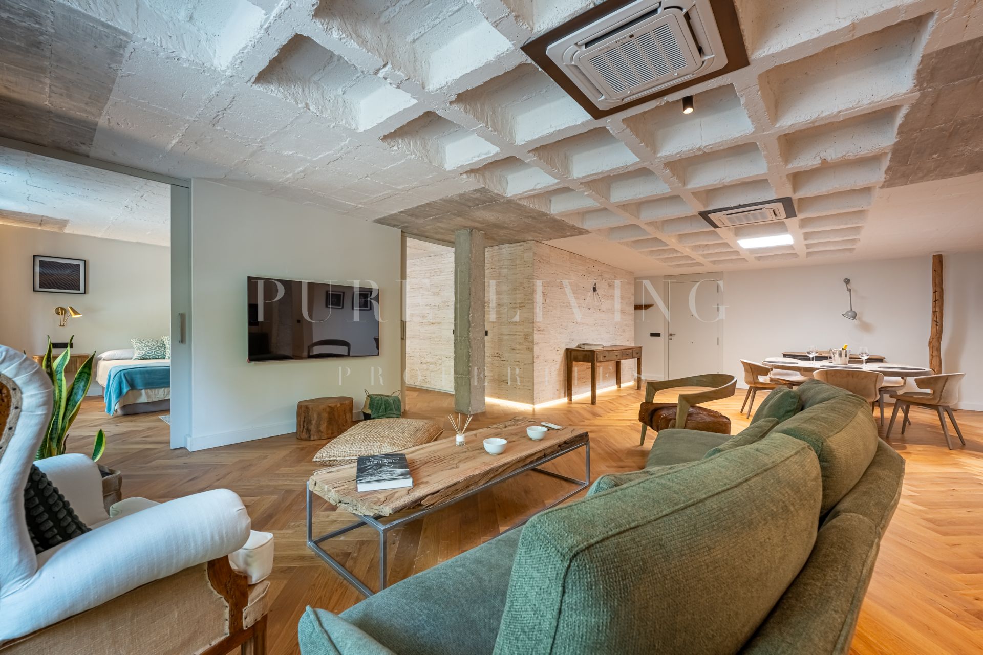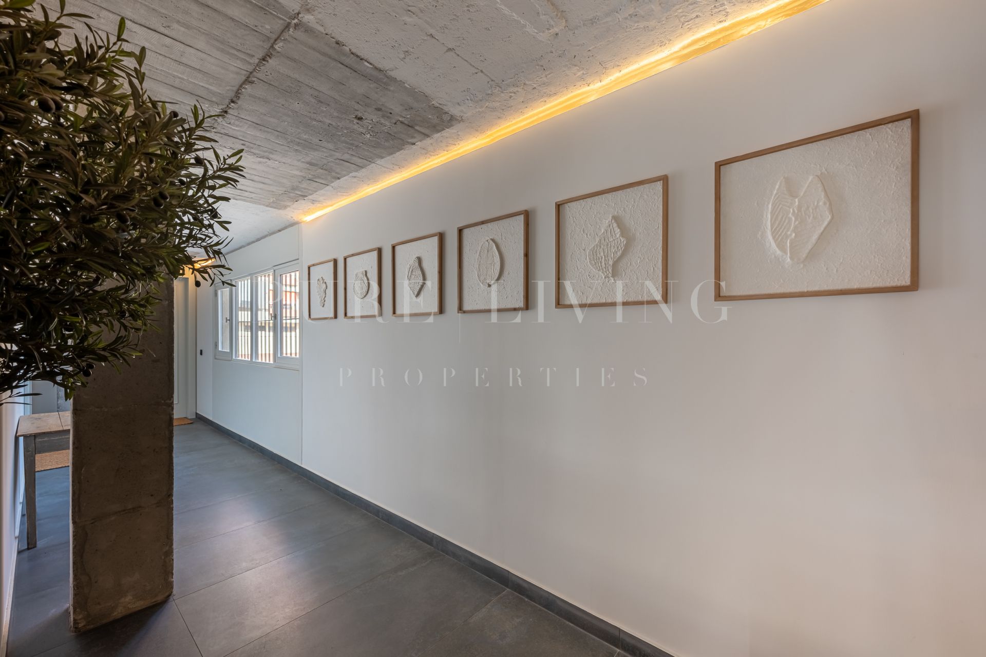Récemment rénové avec un style contemporain impeccable, ce loft se distingue par son exclusivité et son design méticuleux. Avec une entrée privée et indépendante, ce refuge urbain offre une atmosphère de totale intimité. En entrant, vous êtes accueilli par un salon spacieux qui s’intègre parfaitement à une cuisine haut de gamme. Au centre, une île de cuisine design s’impose comme le point focal, équipée de détails exquis, y compris une cave à vin conçue pour les palais les plus exigeants.