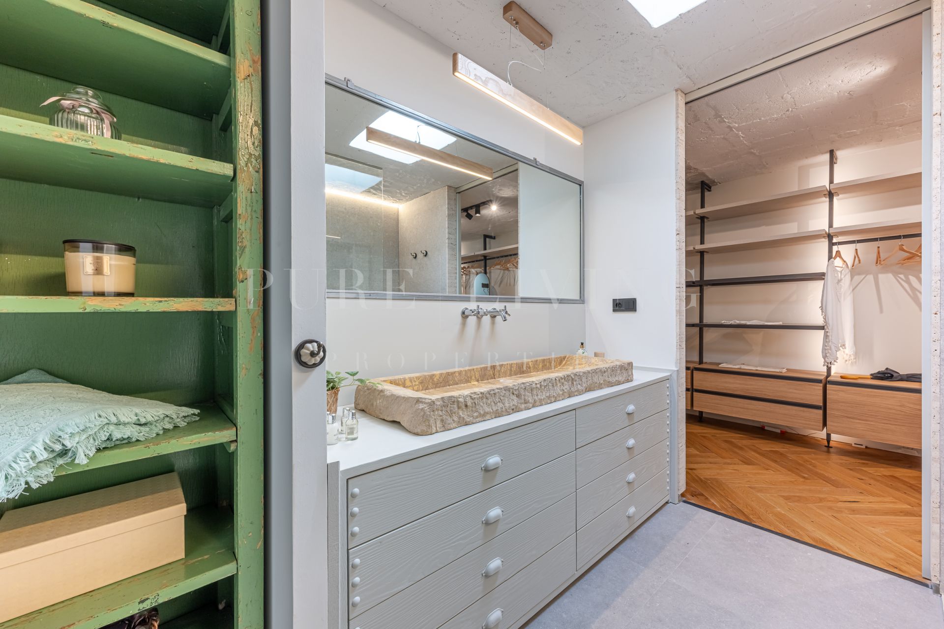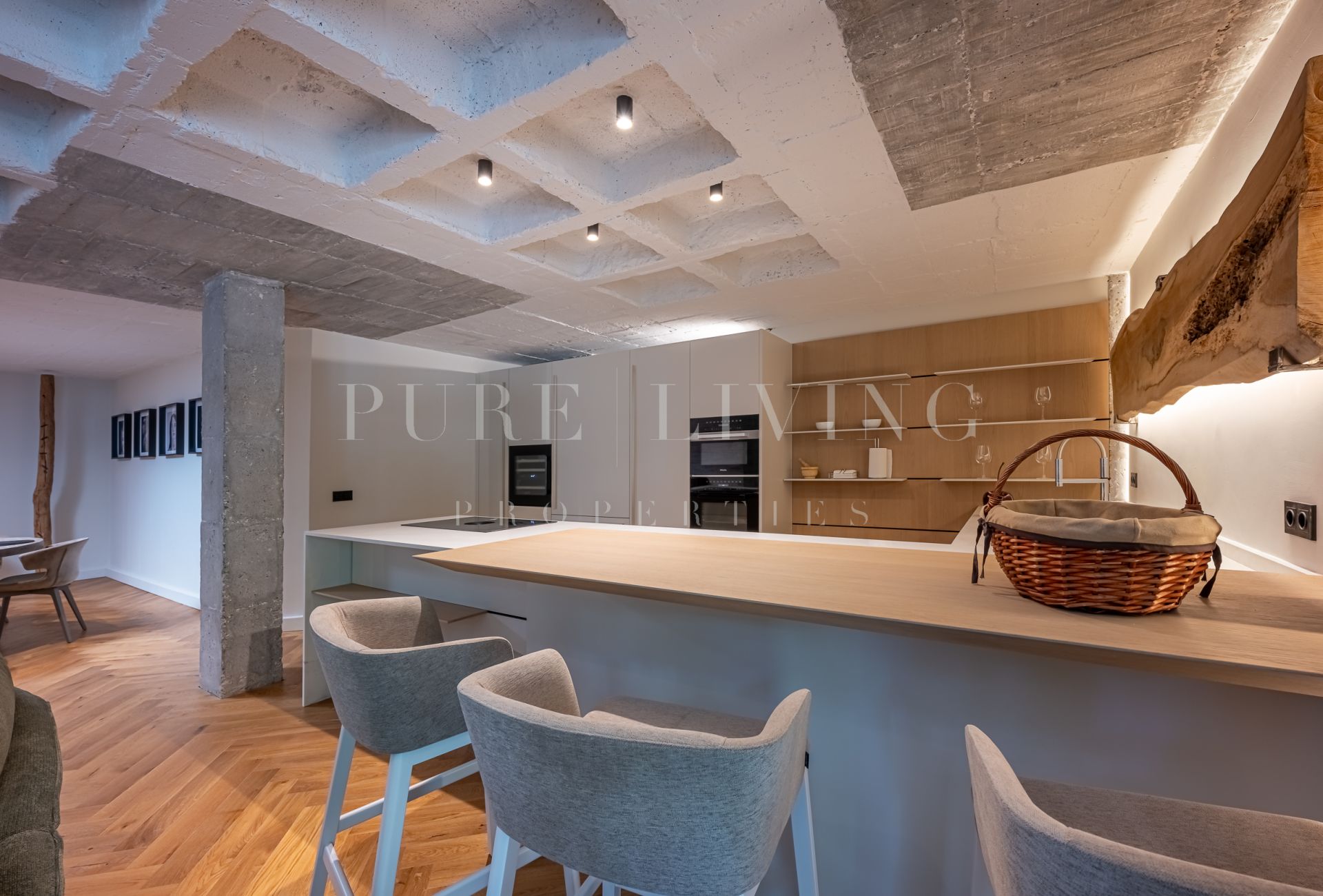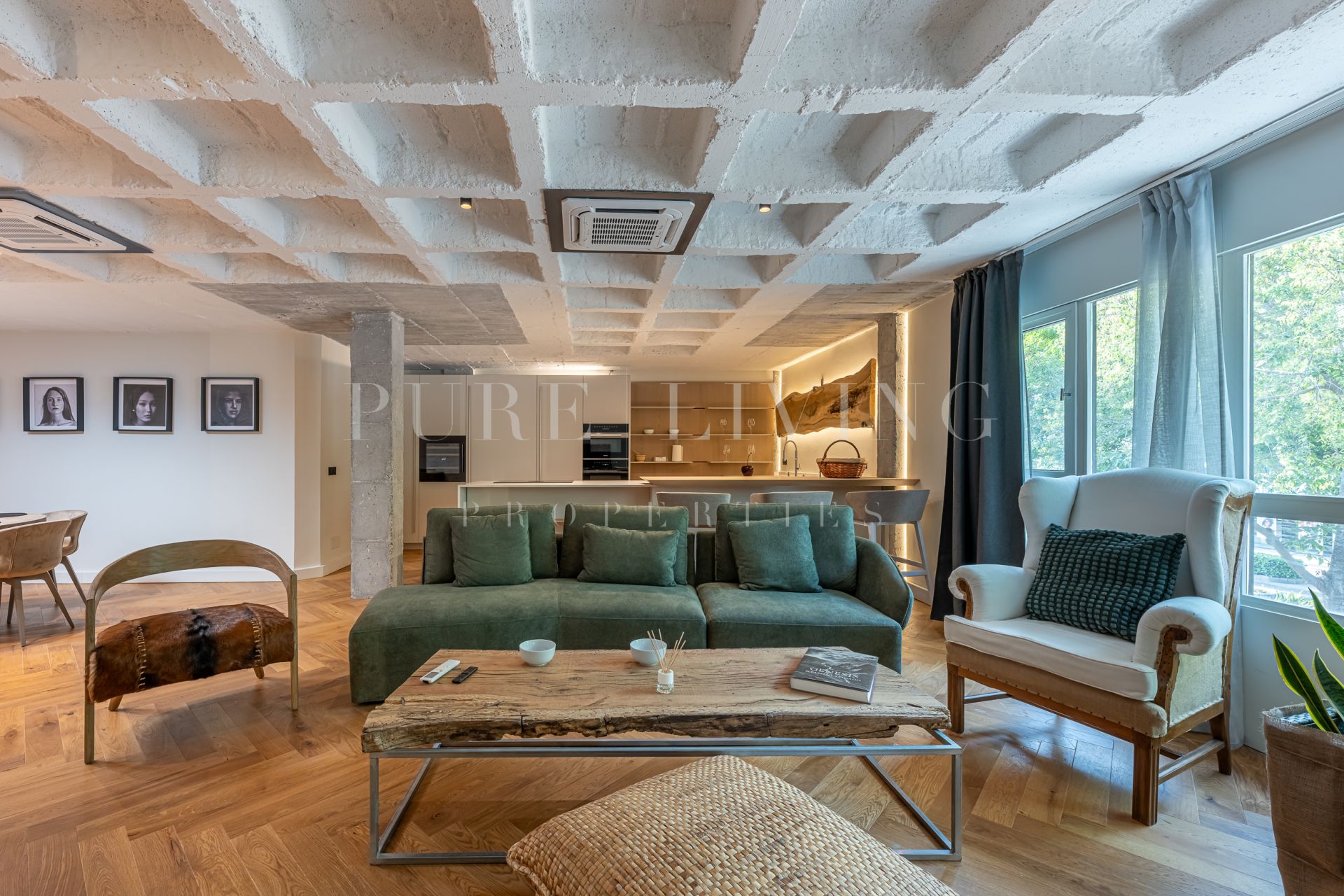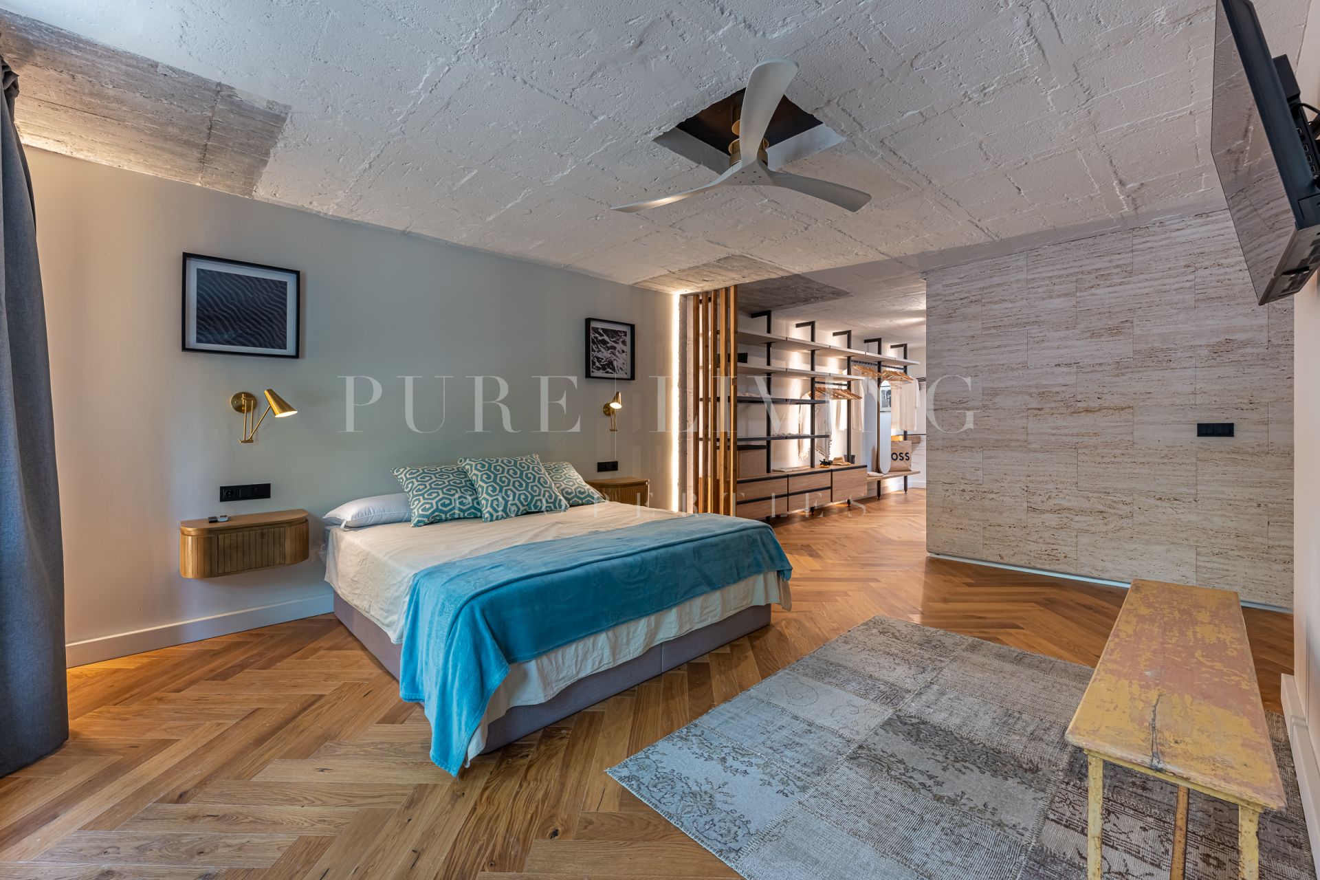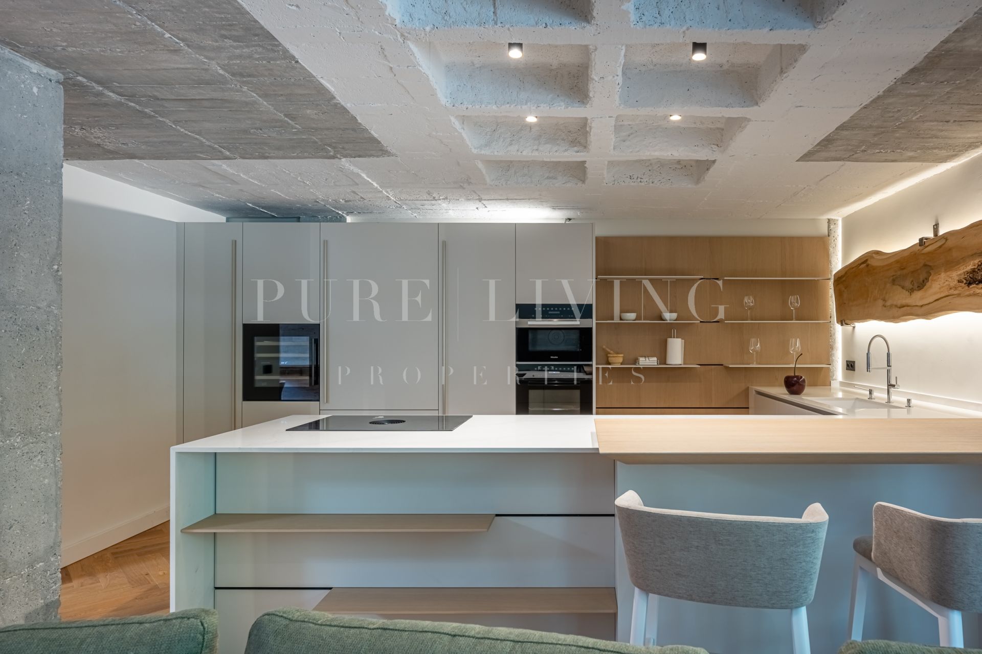 Récemment rénové avec un style contemporain impeccable, ce loft se distingue par son exclusivité et son design méticuleux. Avec une entrée privée et indépendante, ce refuge urbain offre une atmosphère de totale intimité. En entrant, vous êtes accueilli par un salon spacieux qui s’intègre parfaitement à une cuisine haut de gamme. Au centre, une île de cuisine design s’impose comme le point focal, équipée de détails exquis, y compris une cave à vin conçue pour les palais les plus exigeants.