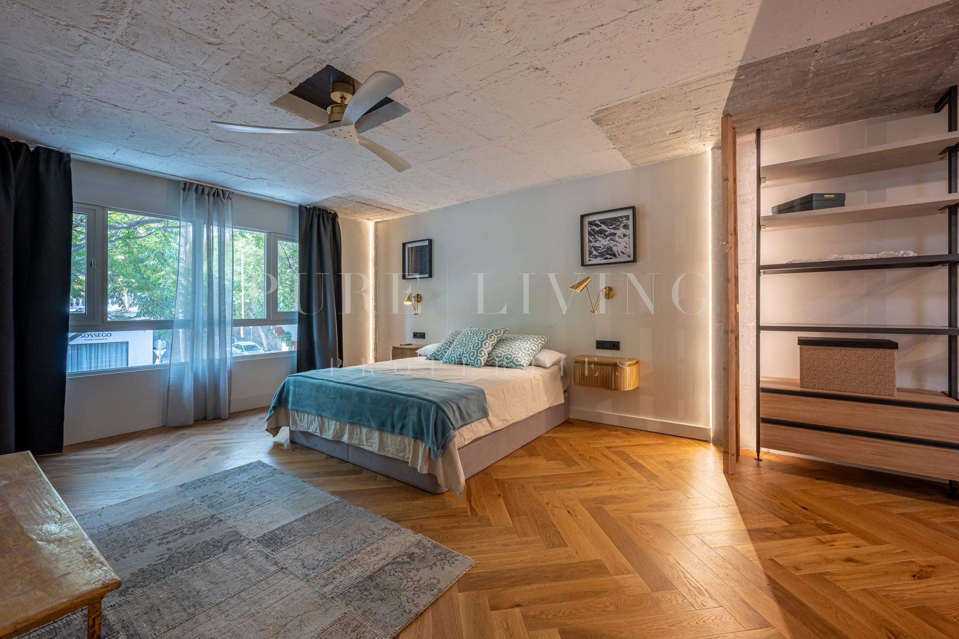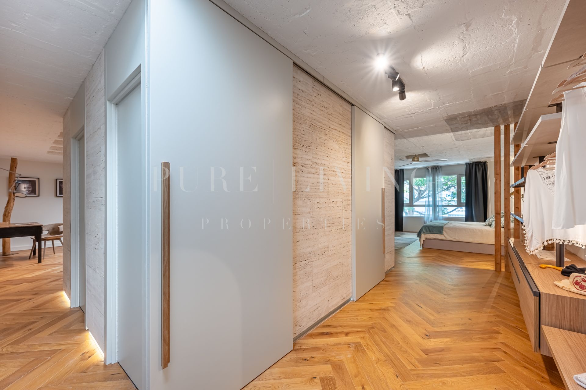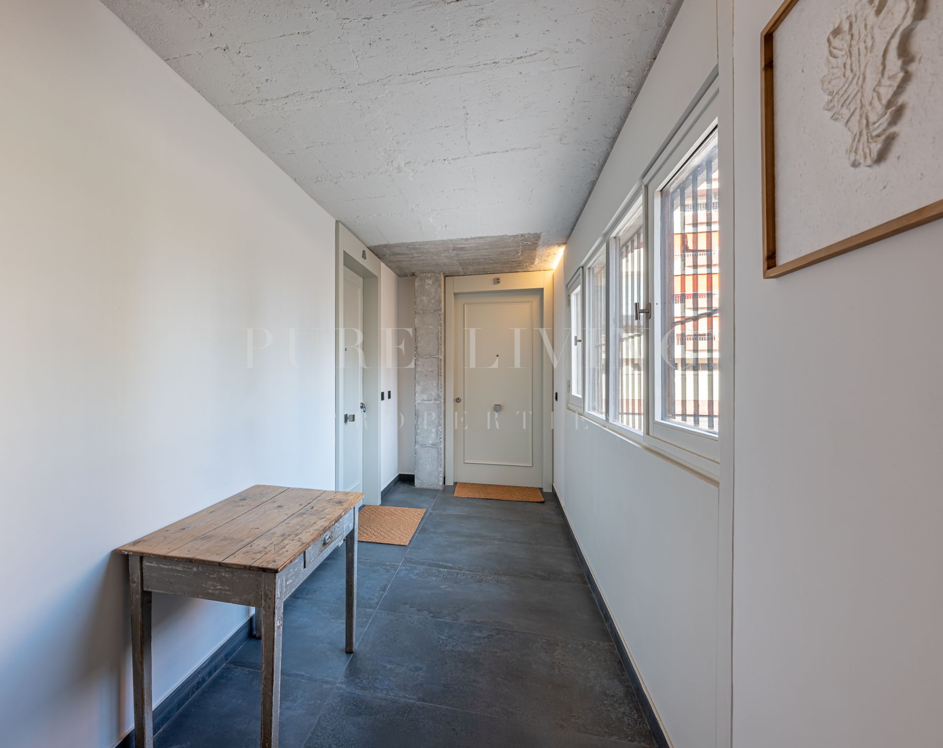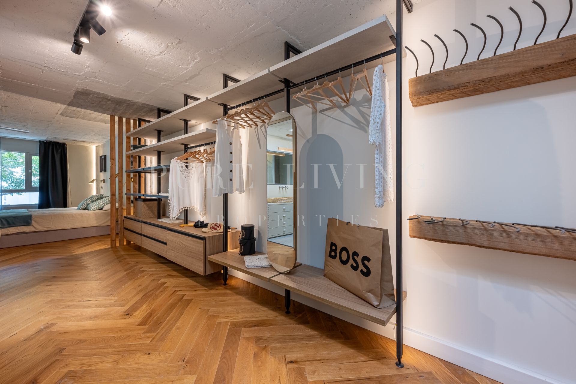 Récemment rénové avec un style contemporain impeccable, ce loft se distingue par son exclusivité et son design méticuleux. Avec une entrée privée et indépendante, ce refuge urbain offre une atmosphère de totale intimité. En entrant, vous êtes accueilli par un salon spacieux qui s’intègre parfaitement à une cuisine haut de gamme. Au centre, une île de cuisine design s’impose comme le point focal, équipée de détails exquis, y compris une cave à vin conçue pour les palais les plus exigeants.