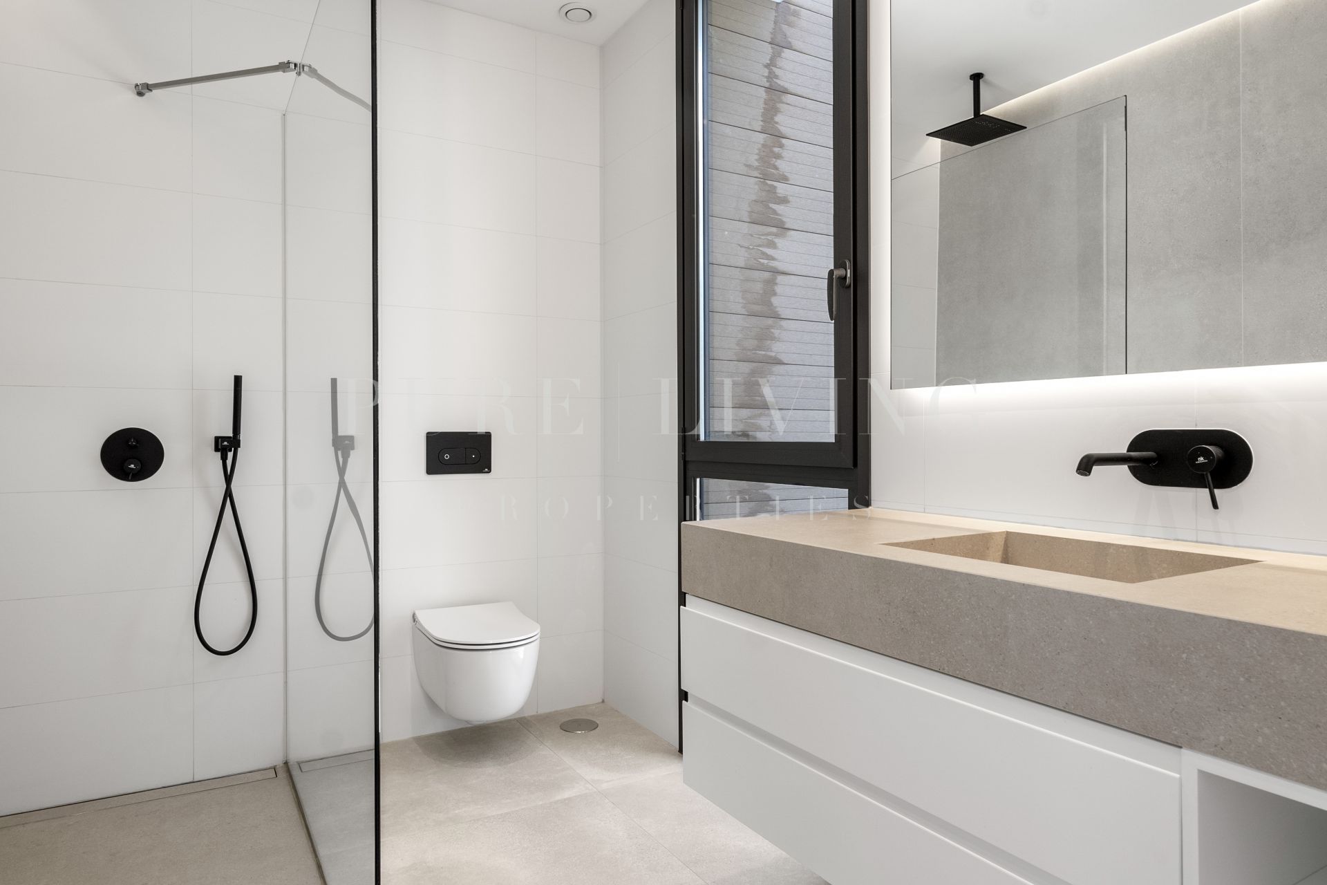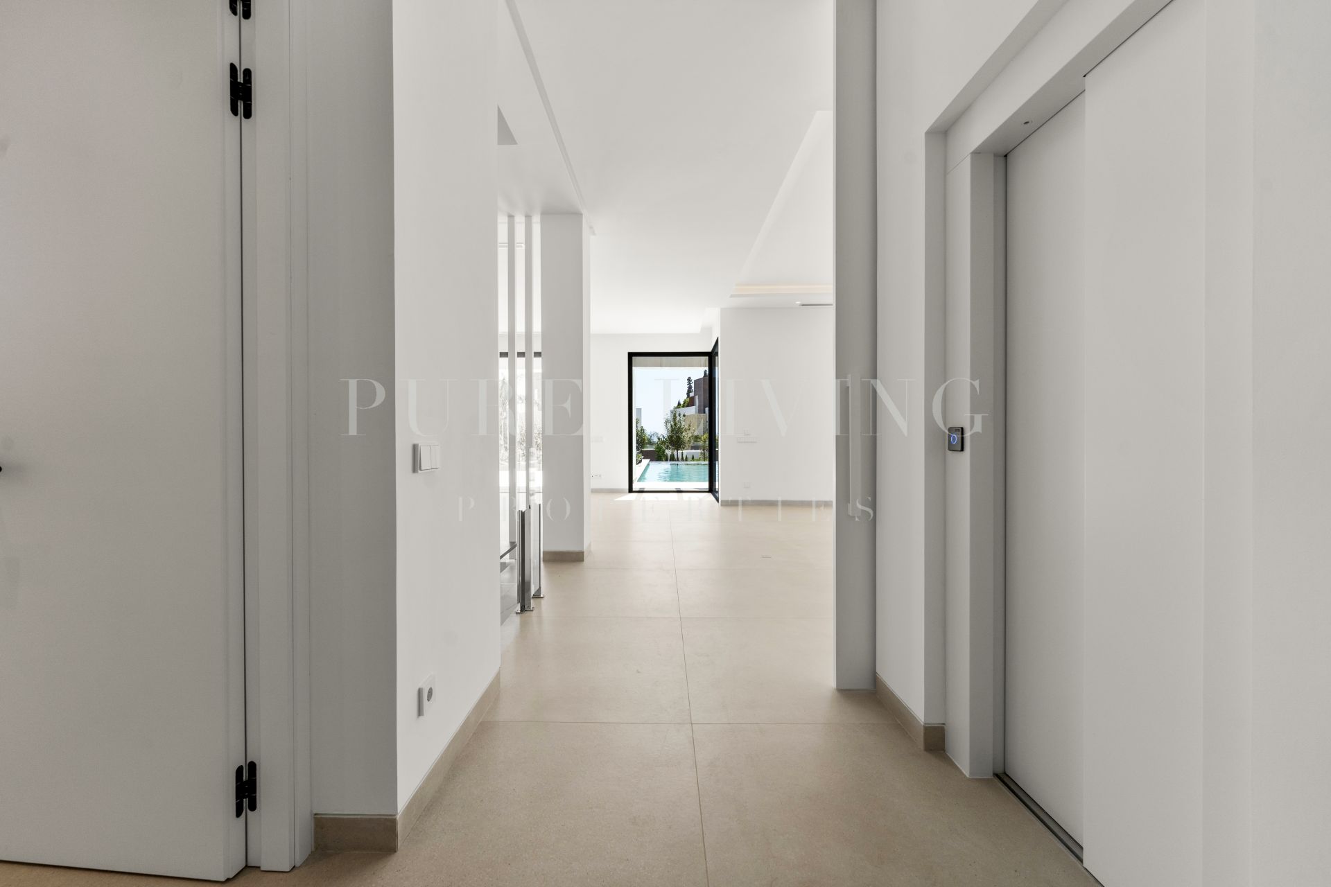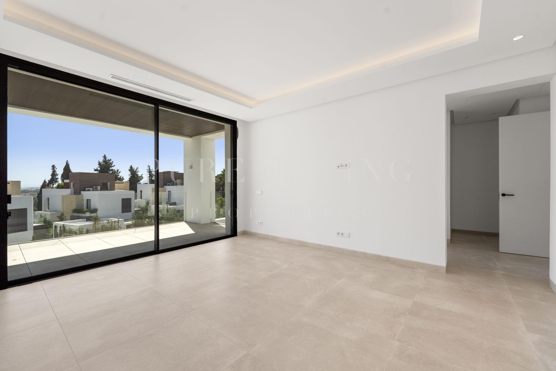 Cette villa moderne de quatre chambres est nichée au sein d’une communauté fermée de luxe et se trouve dans une enclave verdoyante de Marbella.. La propriété bénéficie d’un emplacement de choix, à deux pas des plus belles plages de sable, à proximité des célèbres hôtels cinq étoiles Marbella Club et Puente Romano Beach Resort. Incarnant l’opulence et la sophistication tranquille, cette toute nouvelle résidence est idéale pour ceux qui recherchent un mode de vie à la fois serein et luxueux, à l’orée d’un monde en pleine effervescence.