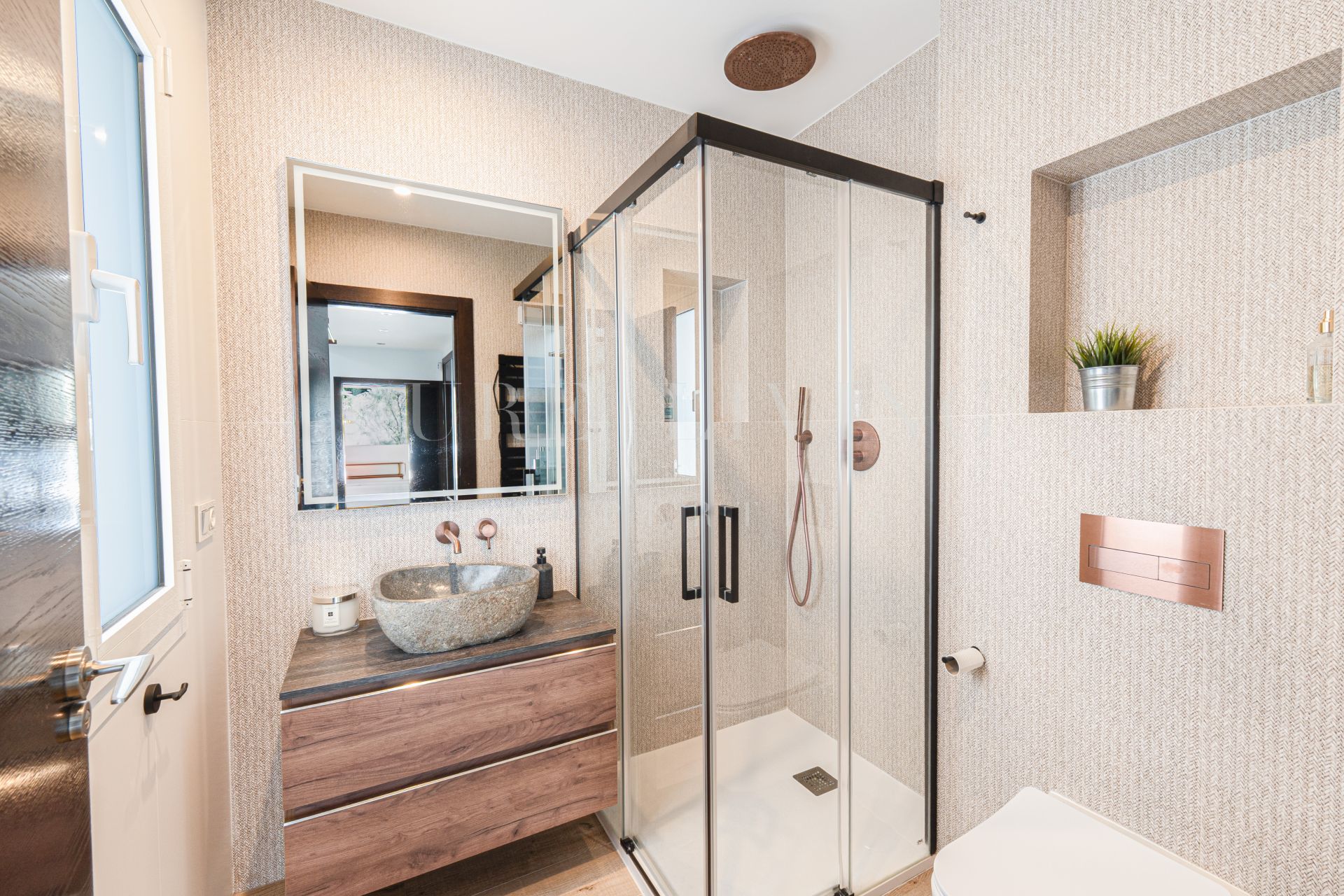 À l’extérieur, un jardin privé avec du gazon artificiel neuf entoure la villa, complété par une piscine pour profiter du climat agréable de Marbella. Un jacuzzi HotSpring avec haut-parleurs Bluetooth et un barbecue Green Egg offrent un cadre idéal pour les moments de détente en plein air. Depuis la terrasse supérieure, vous pouvez admirer le coucher du soleil et une vue lointaine sur la mer, avec La Concha en toile de fond.
