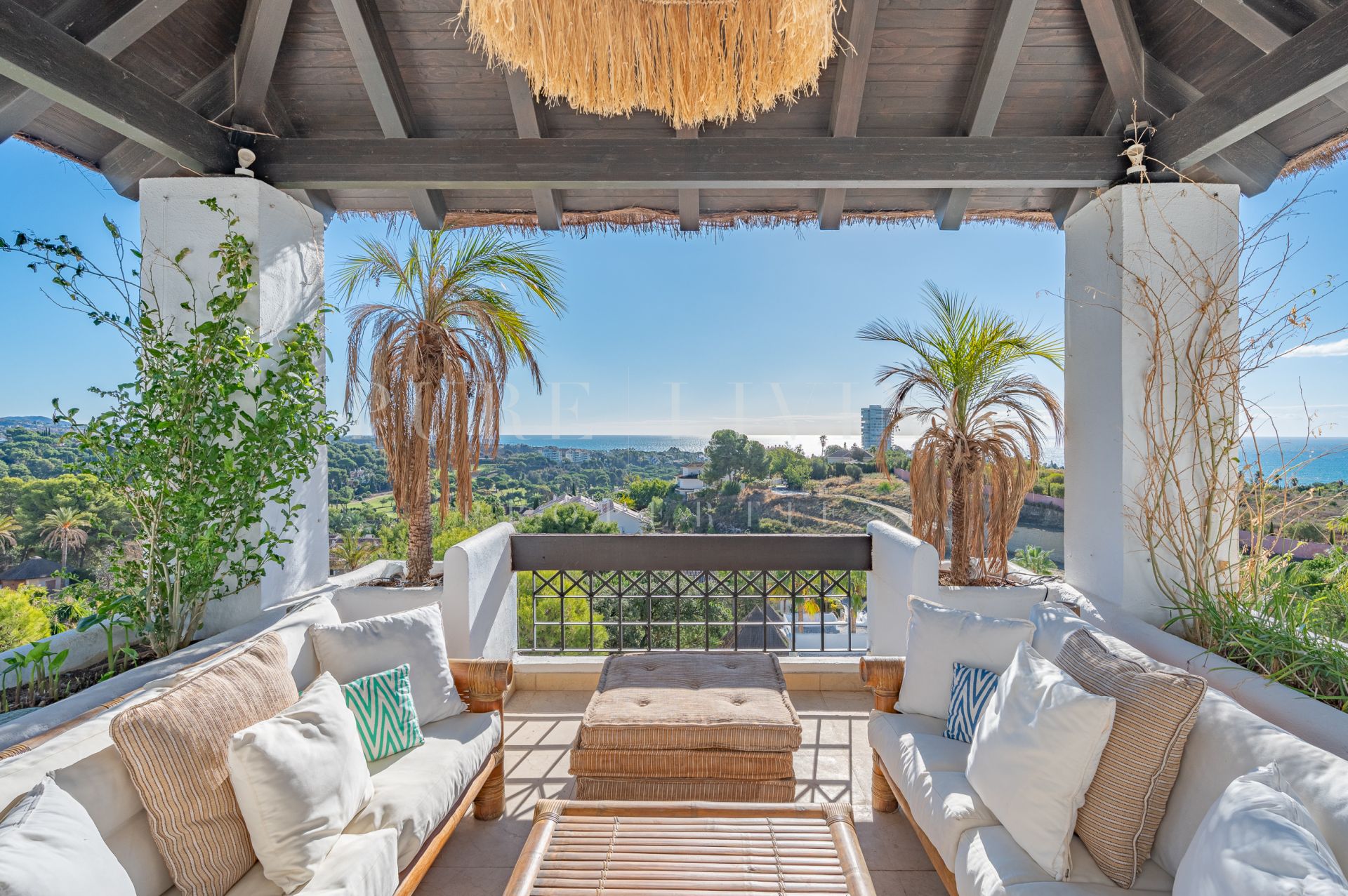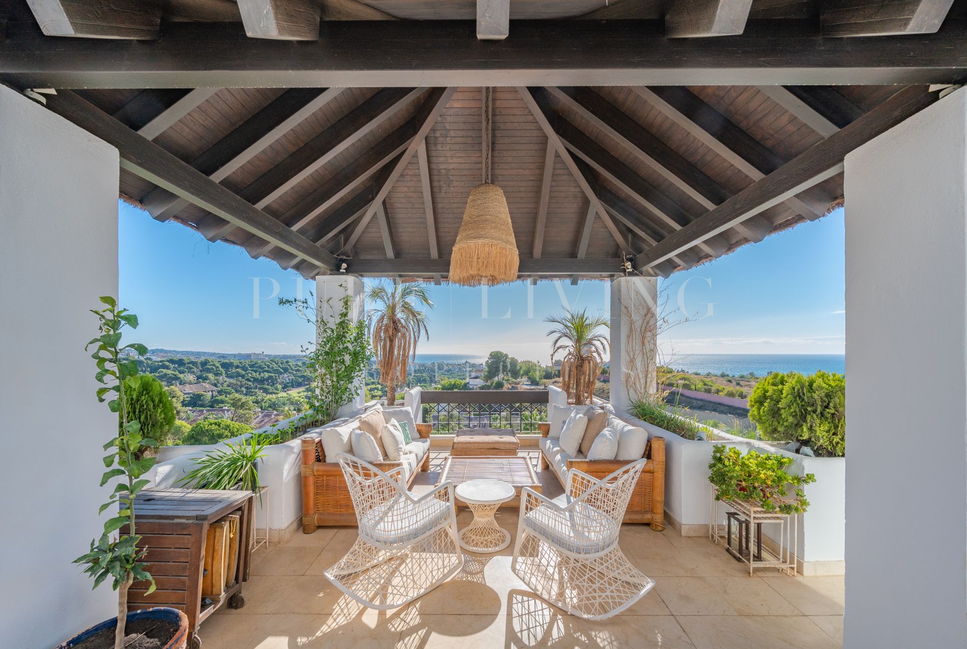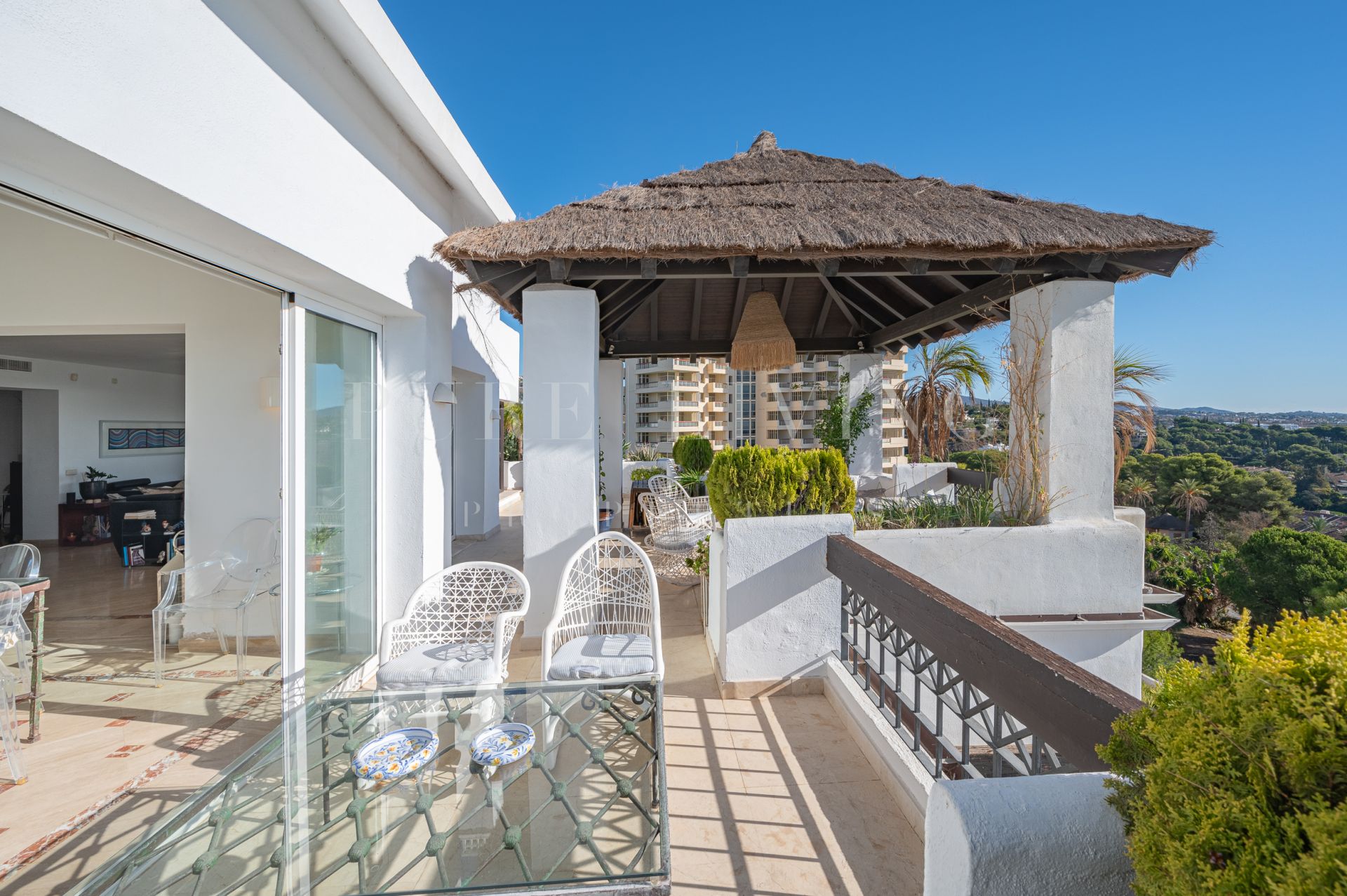 Terrasse privée, Cuisine équipée, Salle de séjour, Près de la ville, Proche des écoles, Vue mer, SurveillanceCameras, Vue montagne, Terrasse couverte, Placards, Ascenseur, Vue panoramique, Portier, Climatisation, Chauffage par le sol (salles de bain), Entièrement meublé, Cheminée, Plancher en marbre, Proche de la mer/plage, Golf à proximité, Terrasse découverte, Chambre d'invités, Entrepôt, Alarme, Entrée sécurizé, Double vitrage, Video interphone, Salle à manger, Bon état, Toilette d'invités.