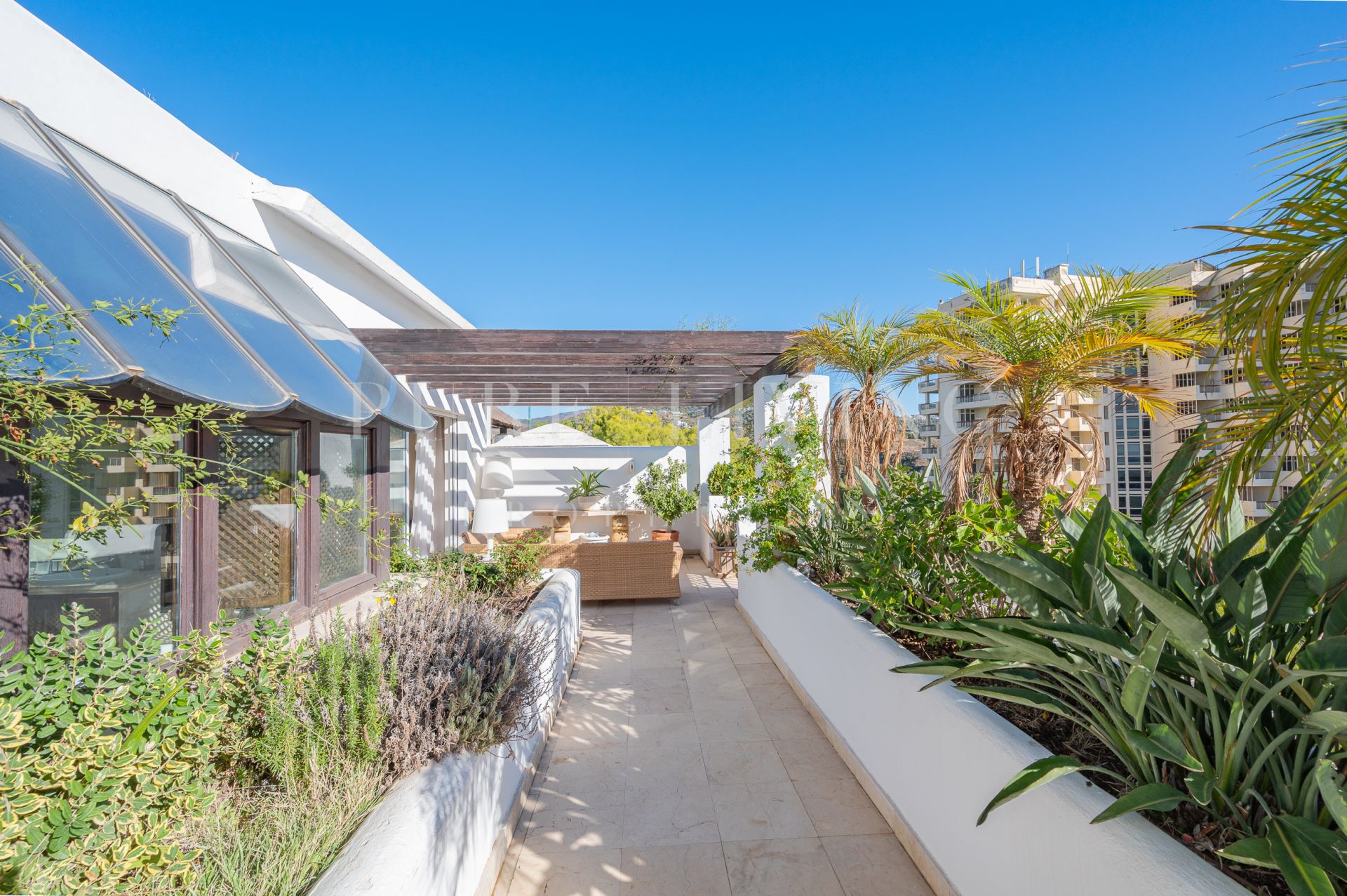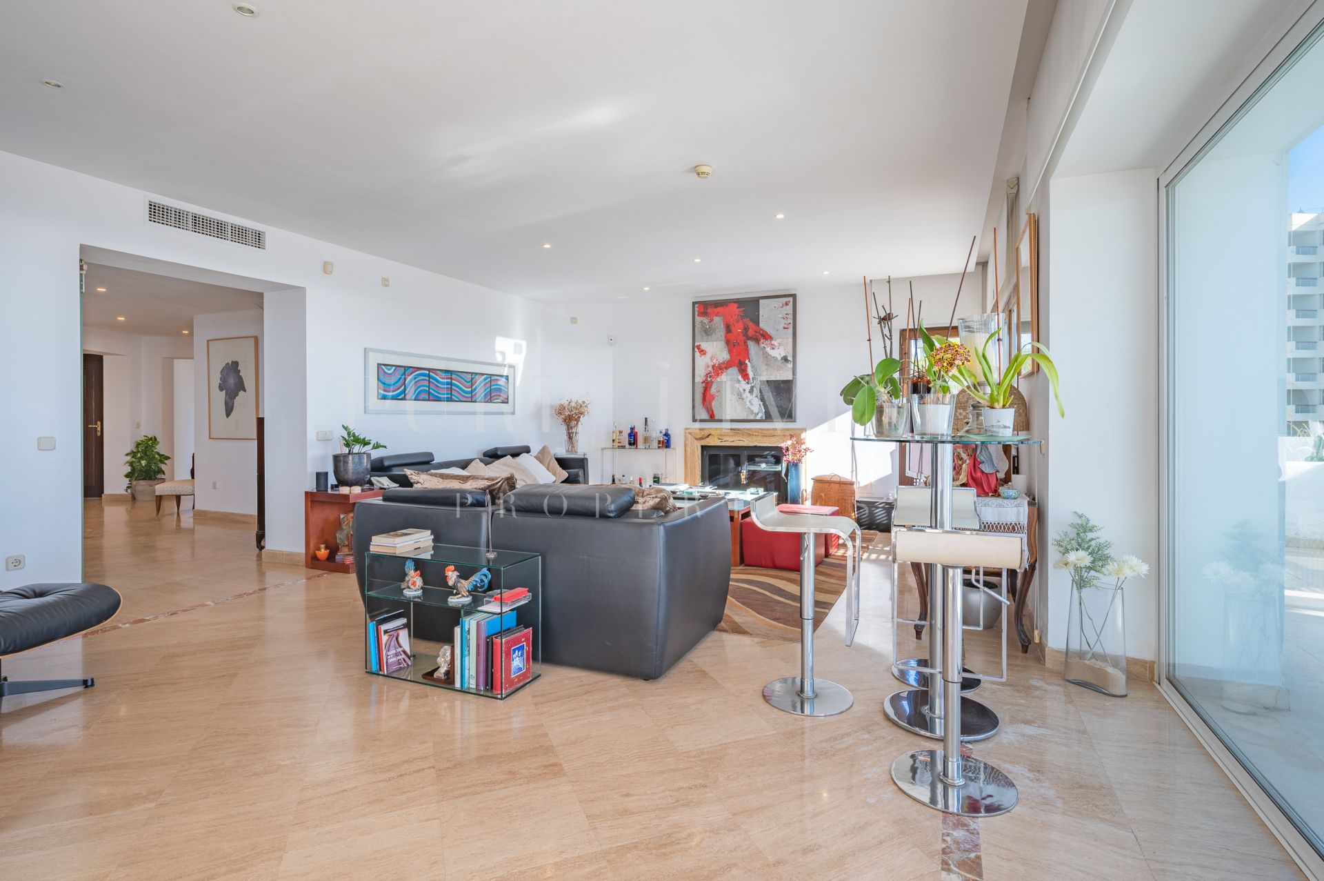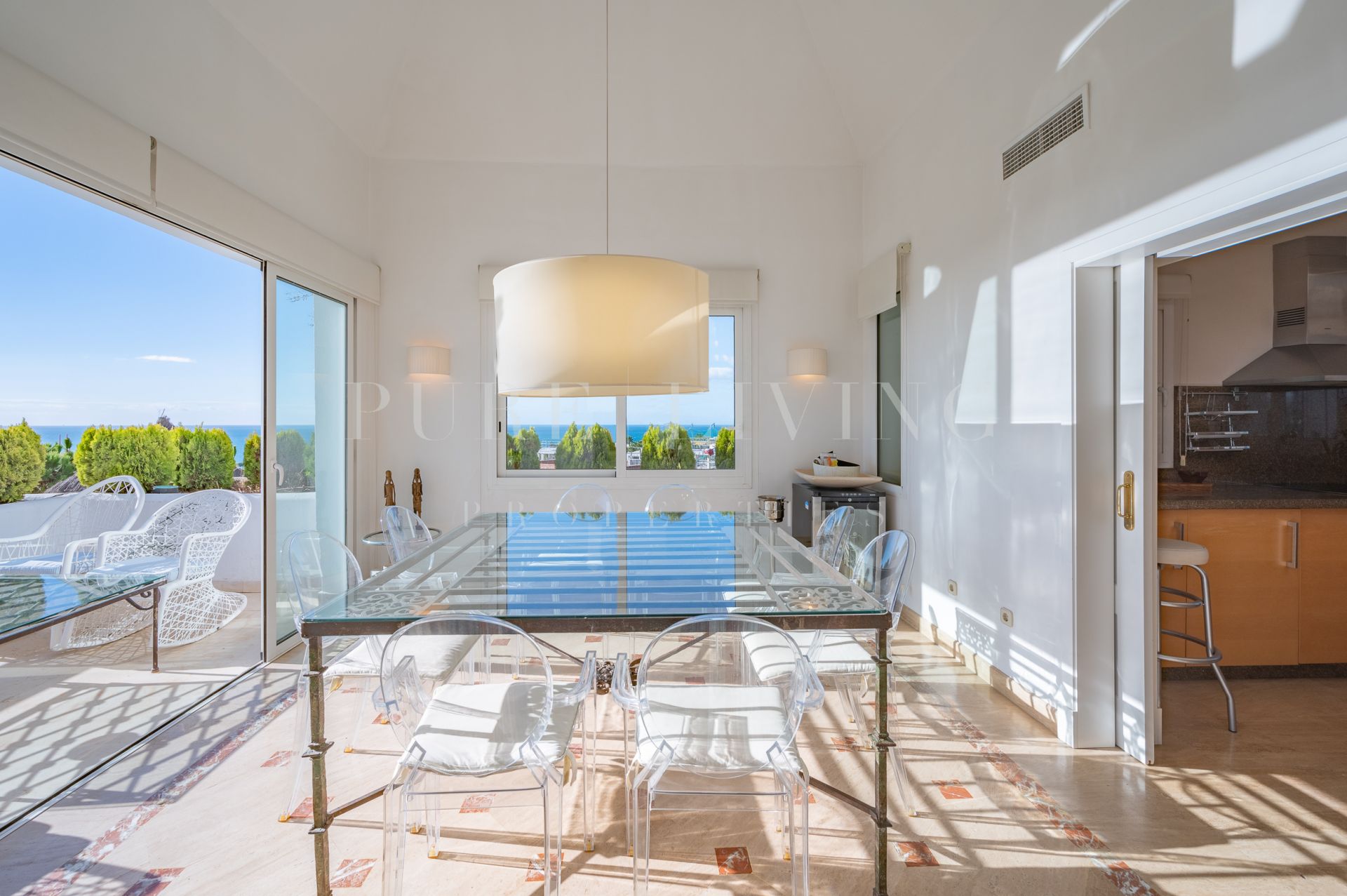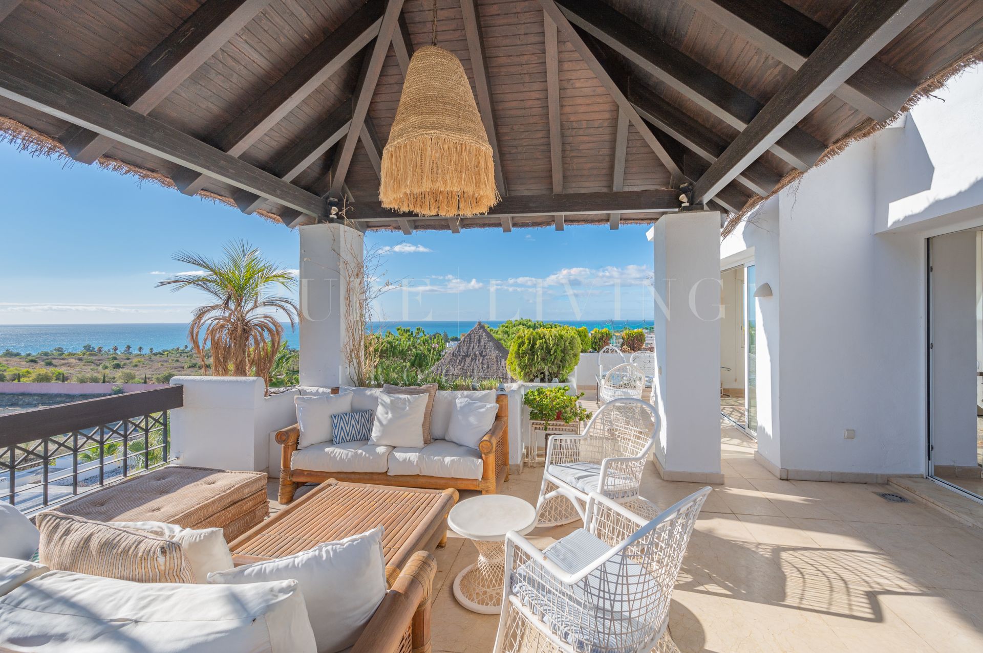 Terrasse privée, Cuisine équipée, Salle de séjour, Près de la ville, Proche des écoles, Vue mer, SurveillanceCameras, Vue montagne, Terrasse couverte, Placards, Ascenseur, Vue panoramique, Portier, Climatisation, Chauffage par le sol (salles de bain), Entièrement meublé, Cheminée, Plancher en marbre, Proche de la mer/plage, Golf à proximité, Terrasse découverte, Chambre d'invités, Entrepôt, Alarme, Entrée sécurizé, Double vitrage, Video interphone, Salle à manger, Bon état, Toilette d'invités.