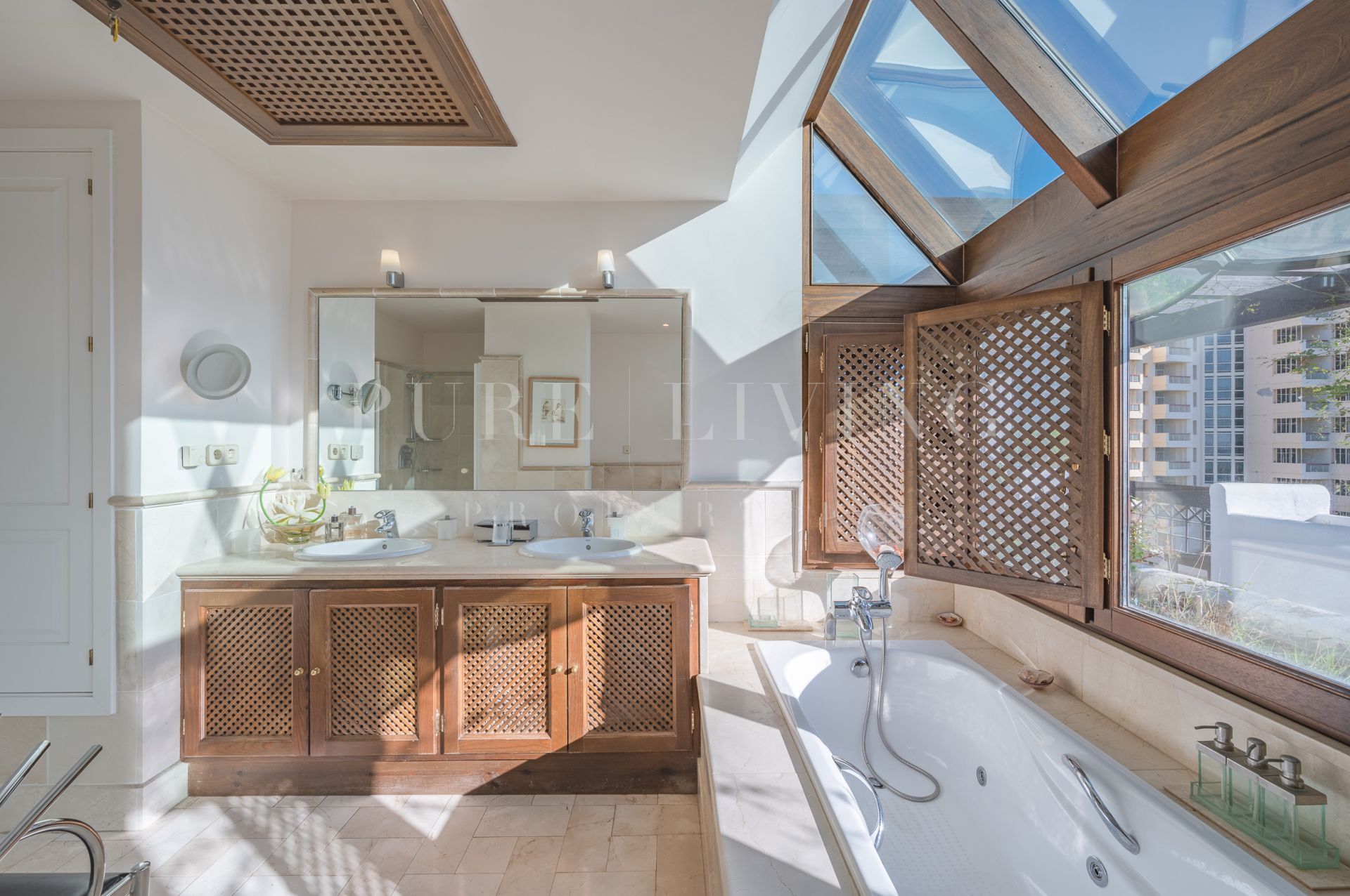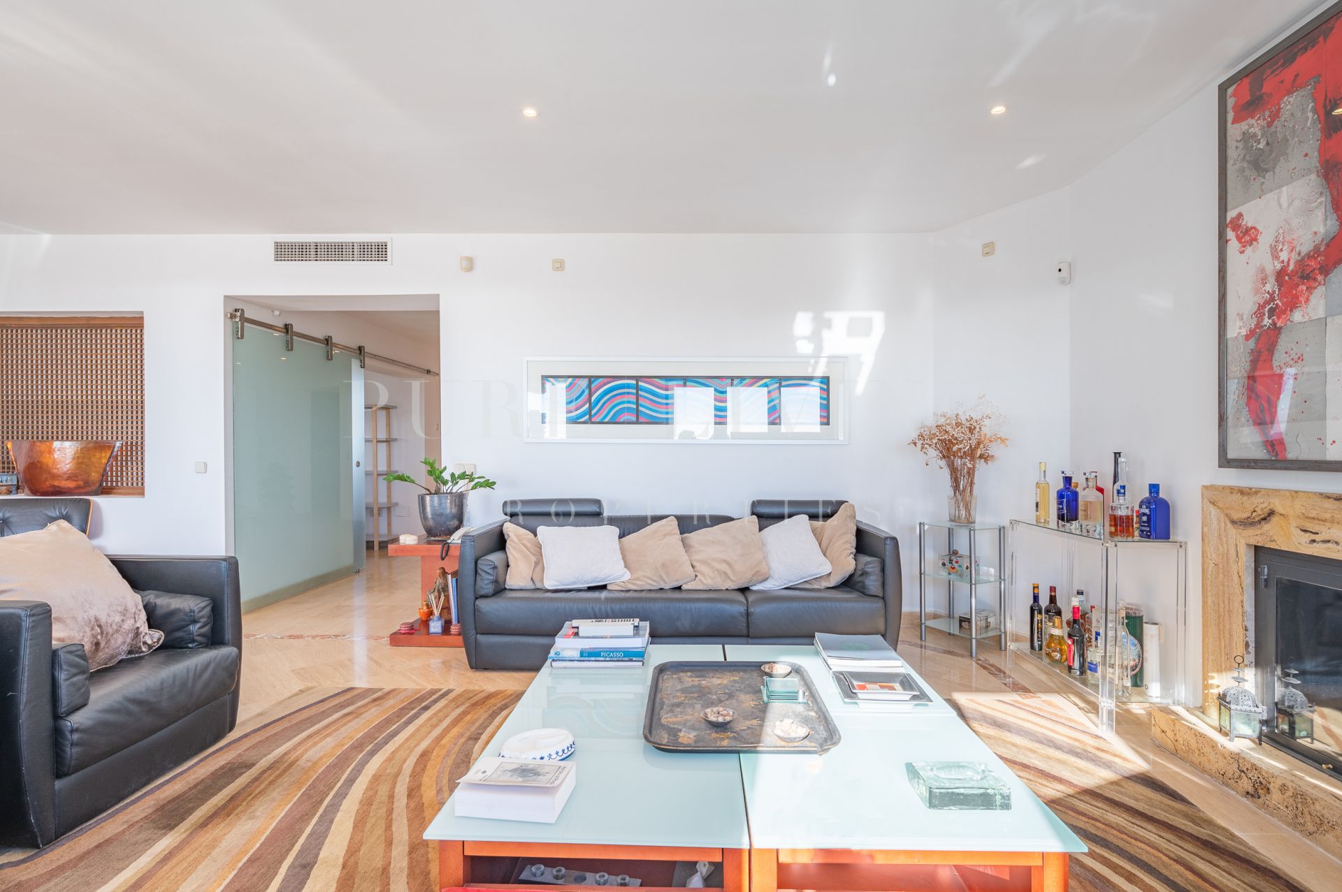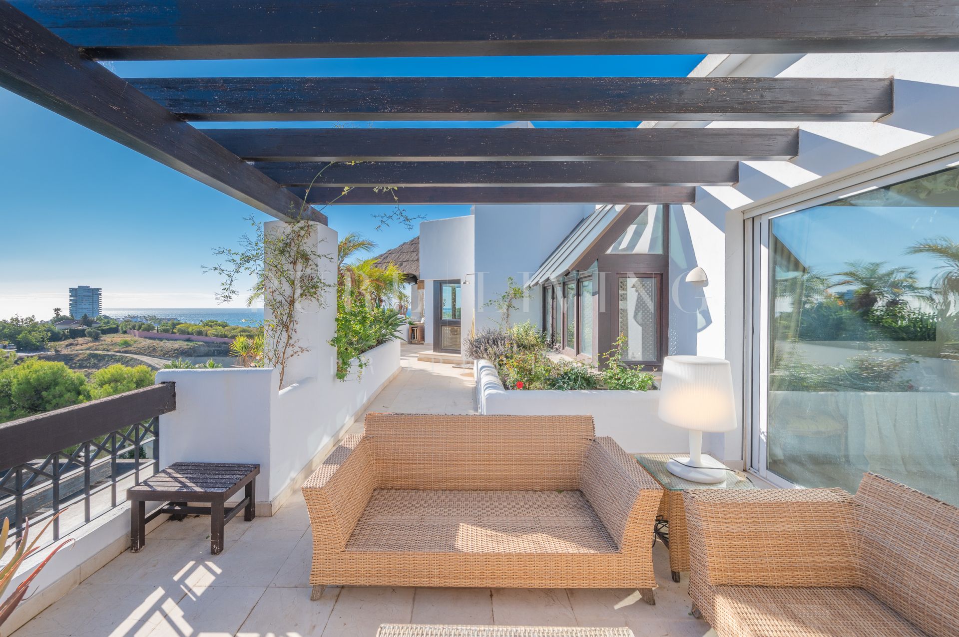 Un ascenseur privé partant du garage vous conduit directement à la propriété. Le logement comprend un hall d’entrée, menant à un salon spacieux avec cheminée, une cuisine entièrement aménagée et équipée, une salle à manger avec un accès direct à la terrasse orientée au sud avec deux coins salon et des vues sur la mer absolument imbattables à 180º. La grande chambre principale en-suite avec un grand espace d’armoire et des portes-fenêtres menant à la terrasse, une chambre d’amis avec des installations en-suite et une autre pièce actuellement utilisée comme chambre mais qui peut facilement être convertie en bureau. La grande terrasse couverte et non couverte offre des vues panoramiques sur la mer. Deux places de parking dans le garage souterrain et deux pièces de rangement sont incluses.
