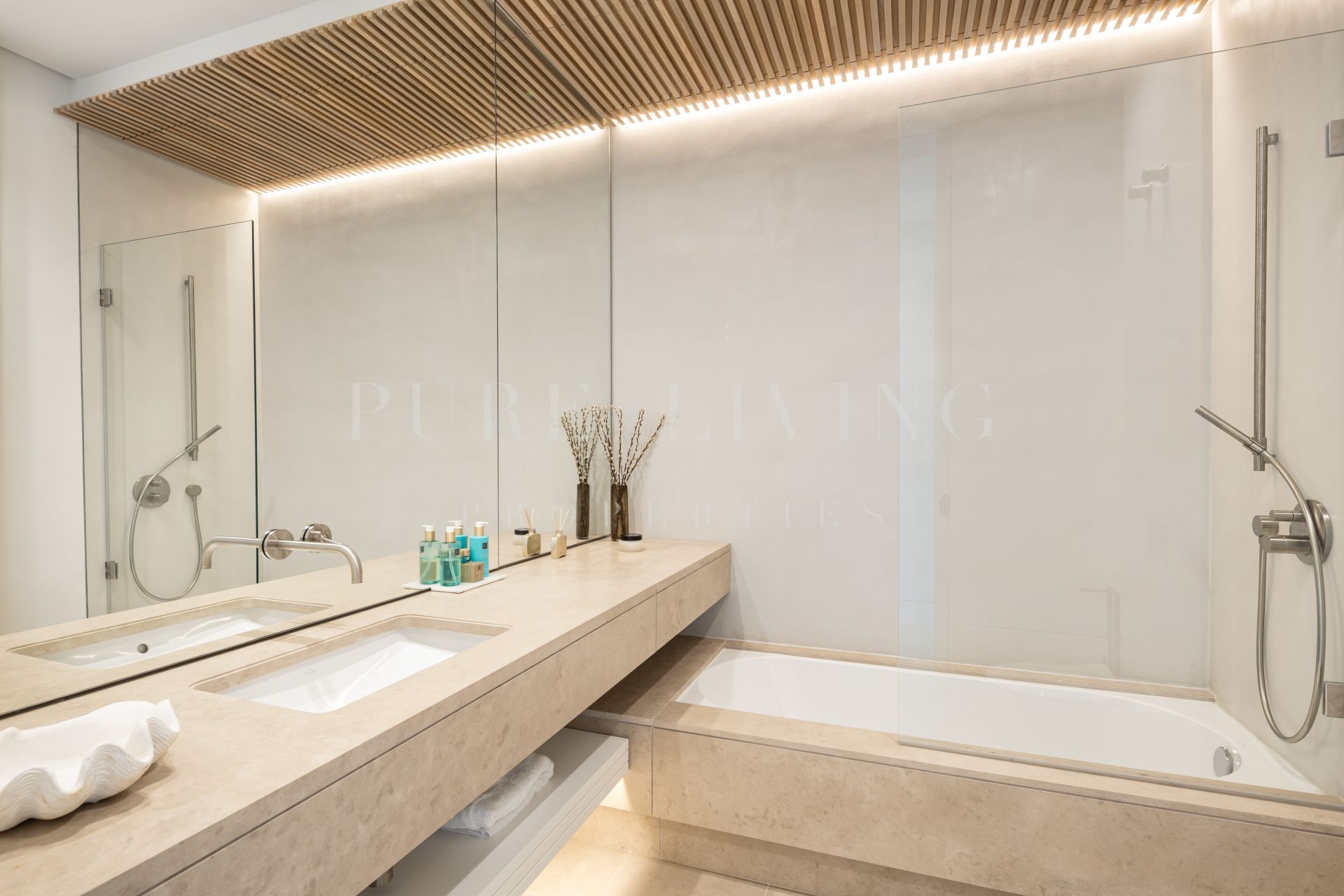 Climatisation, Entièrement meublé, Vue mer, Cuisine entièrement adaptée, Jacuzzi, Sauna, Chauffage par le sol (partout), Terrasse découverte, Salle de jeux, Entrepôt, Salle de gym, Alarme, Terrasse couverte, Station thermale - SPA, Double vitrage, Bain de vapeur, Résidence fermée, Excellent état, Vue sur le jardin.
