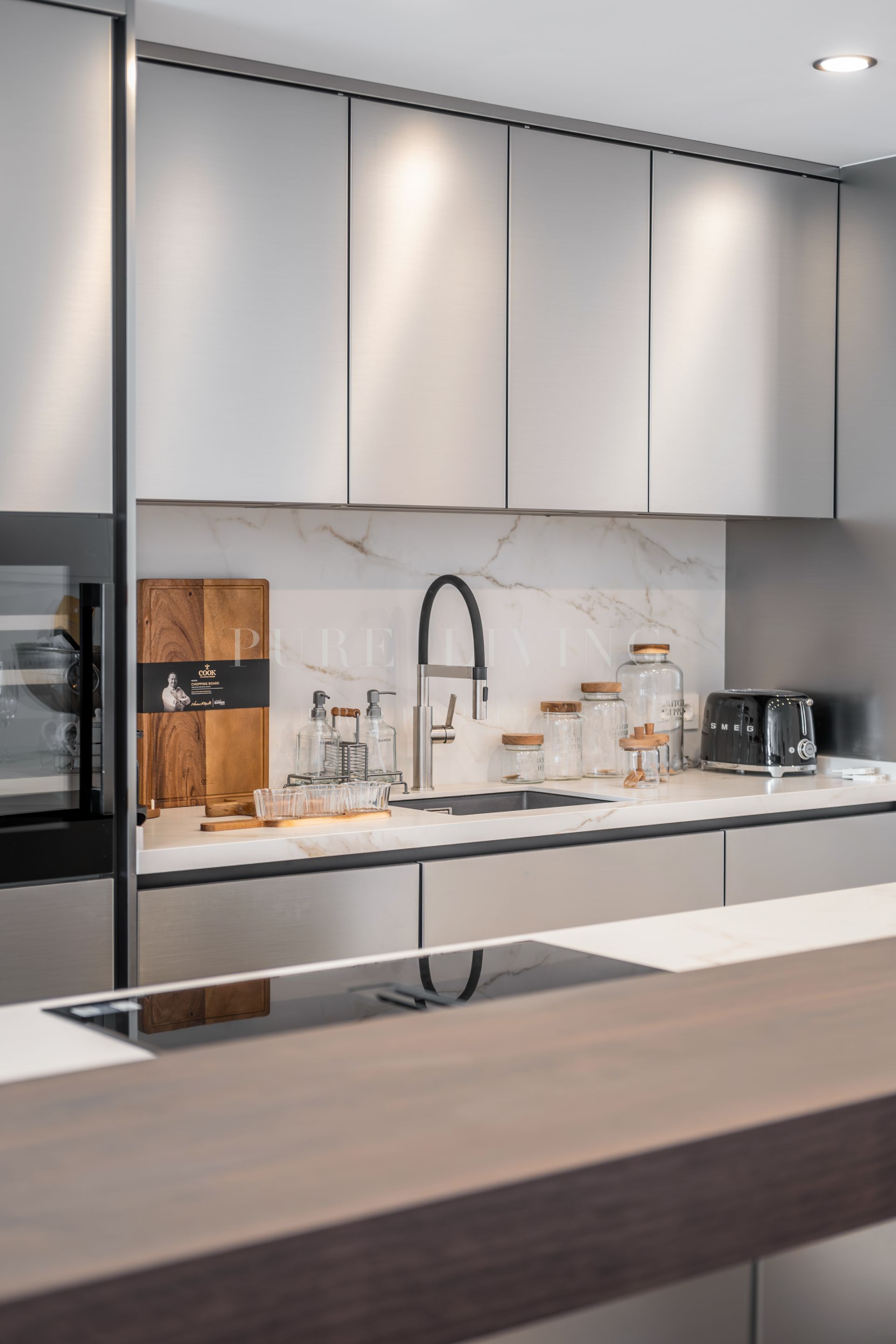 Le bien se compose de trois grandes chambres, dont deux avec salle de bains attenante. La suite parentale dispose d’un vaste dressing et d’une salle de bains luxueuse. En tout, l’appartement comprend trois salles de bains, toutes finies avec des matériaux haut de gamme.