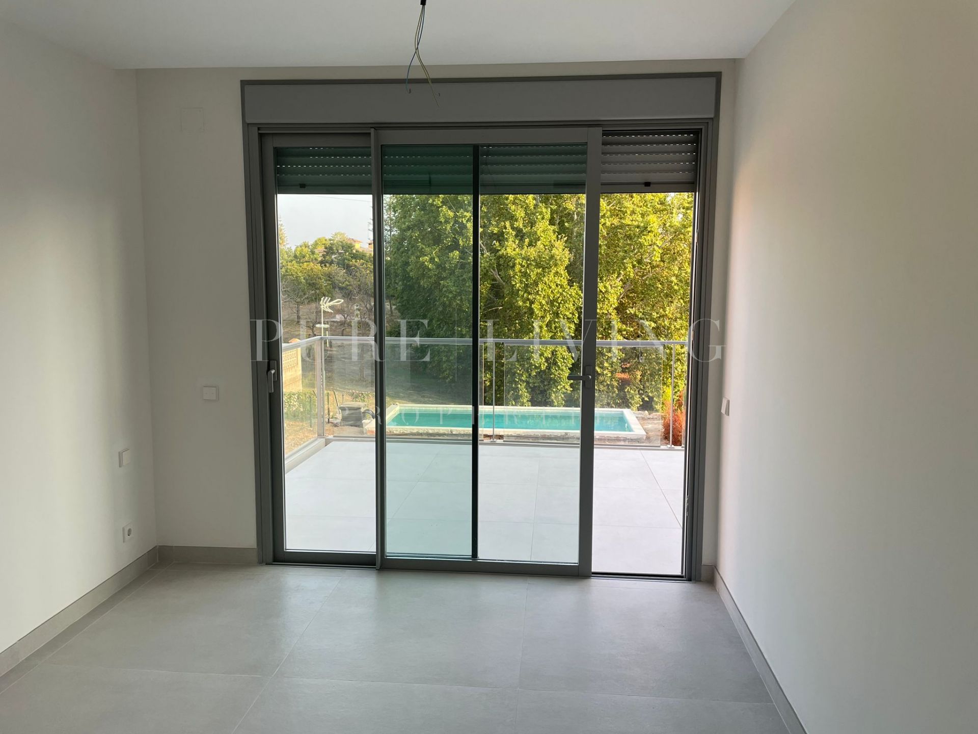 Het herenhuis beschikt over het grootste perceel in de urbanisatie op 500 vierkante meter, met het meest uitgestrekte terras en achtertuin, en het enige privézwembad van 9×4 meter. Het heeft ook een garage-ingang die gedeeld wordt door slechts vijf huizen, met aparte, omheinde ruimtes voor twee auto’s. Binnen kunt u genieten van een volledig uitgeruste Gunni Trentino keuken met meer dan 12.000€ aan extra kastruimte en exclusieve 1×1 meter Gunni Trentino tegels in de salon en op het terras – uniek voor deze woning.