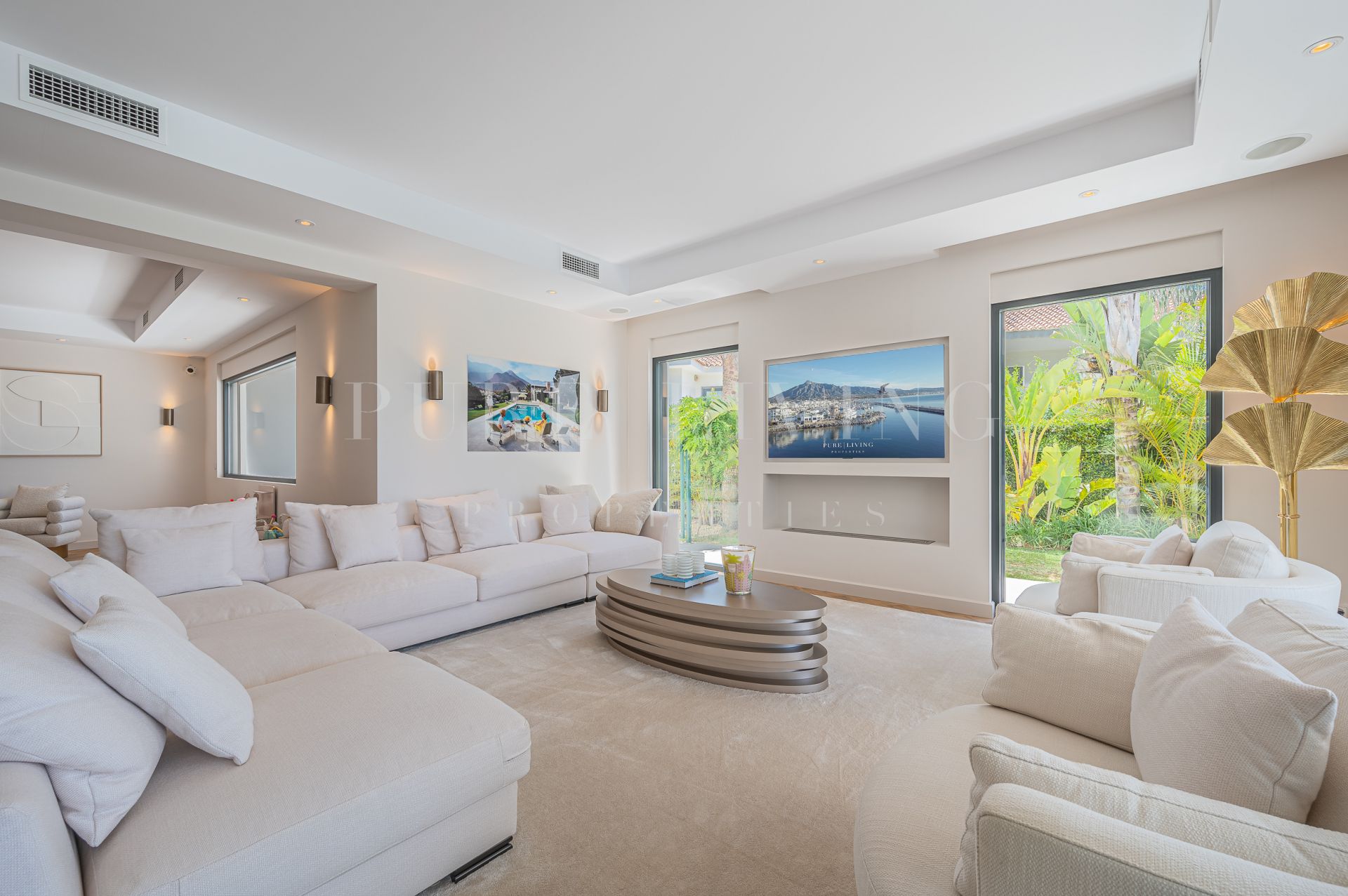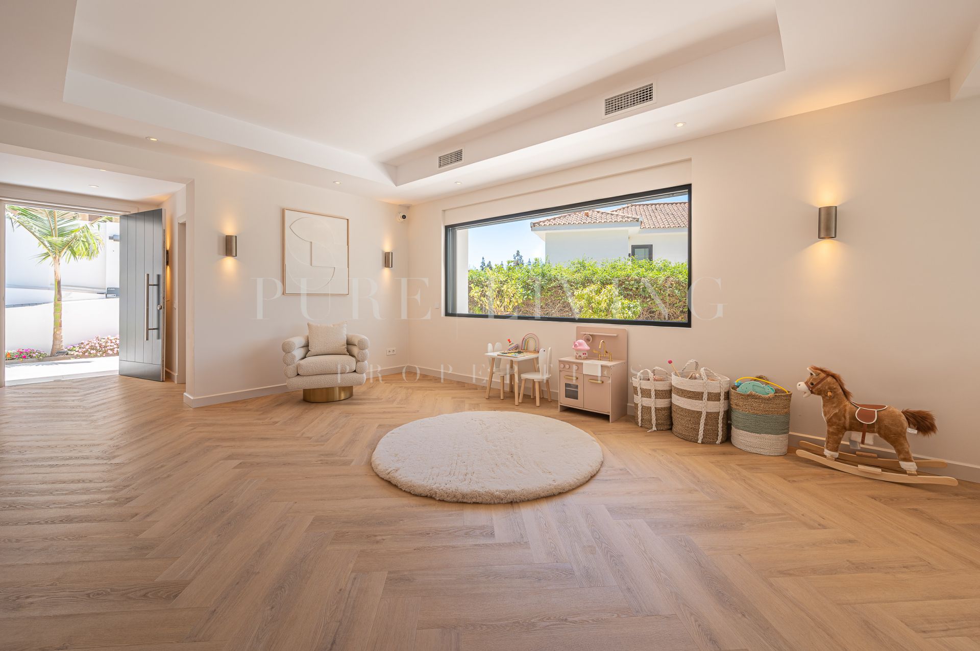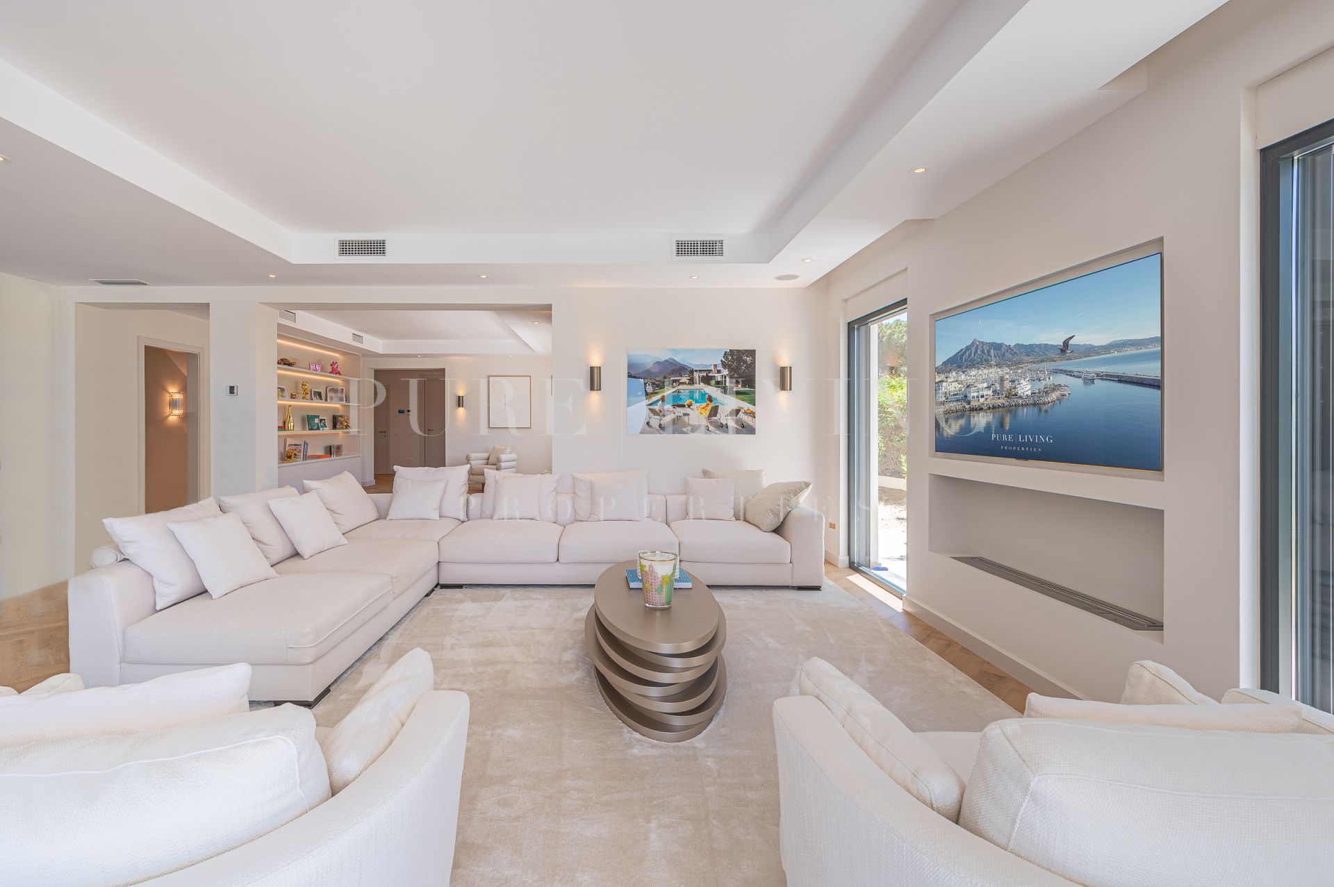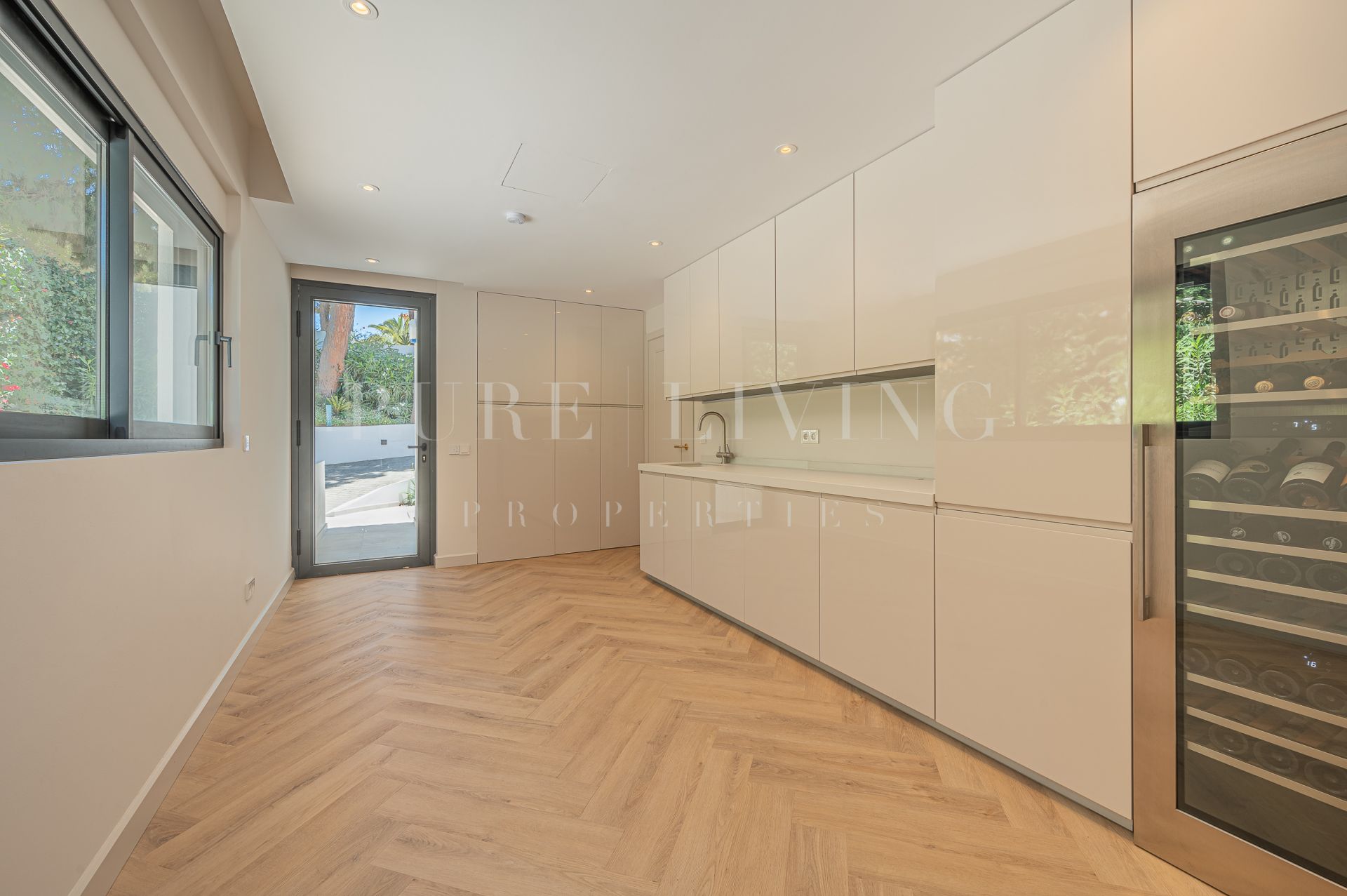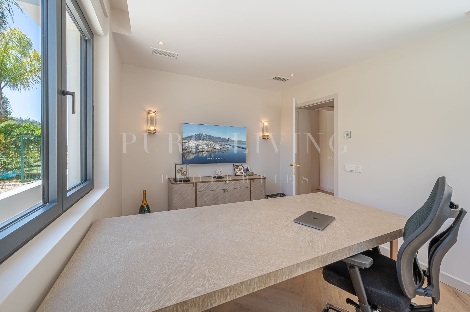 Privé terras, Woonkamer, Zoutwaterzwembad, Dicht bij winkels, Dicht bij de stad, Dicht bij de haven, Dicht bij scholen, Uitzicht op zee, Kantoor, Verwarmd zwembad, Automatisch irrigatiesysteem, Beveiliging rolluiken, Domoticasysteem, Wasruimte, Overdekt terras, Elektrische rolluiken, Inbouwkasten, Uitzicht op de tuin, Uitzicht op het zwembad, Dicht bij voorzieningen, airconditioning, Vloerverwarming (badkamer), Centrale verwarming, Compleet gemeubileerd, Inbouwkeuken, Bijkeuken, Bij de zee/het strand, Dicht bij golfclub, Dicht bij restaurants, Niet overdekt terras, Kelder, Glazen deuren, Gasten slaapkamer, Opslagruimte, Open keuken, Alarm, Meubels optioneel, Dubbele ramen, Uitstekende staat, Eetkamer, Barbecue, Gastentoilet.