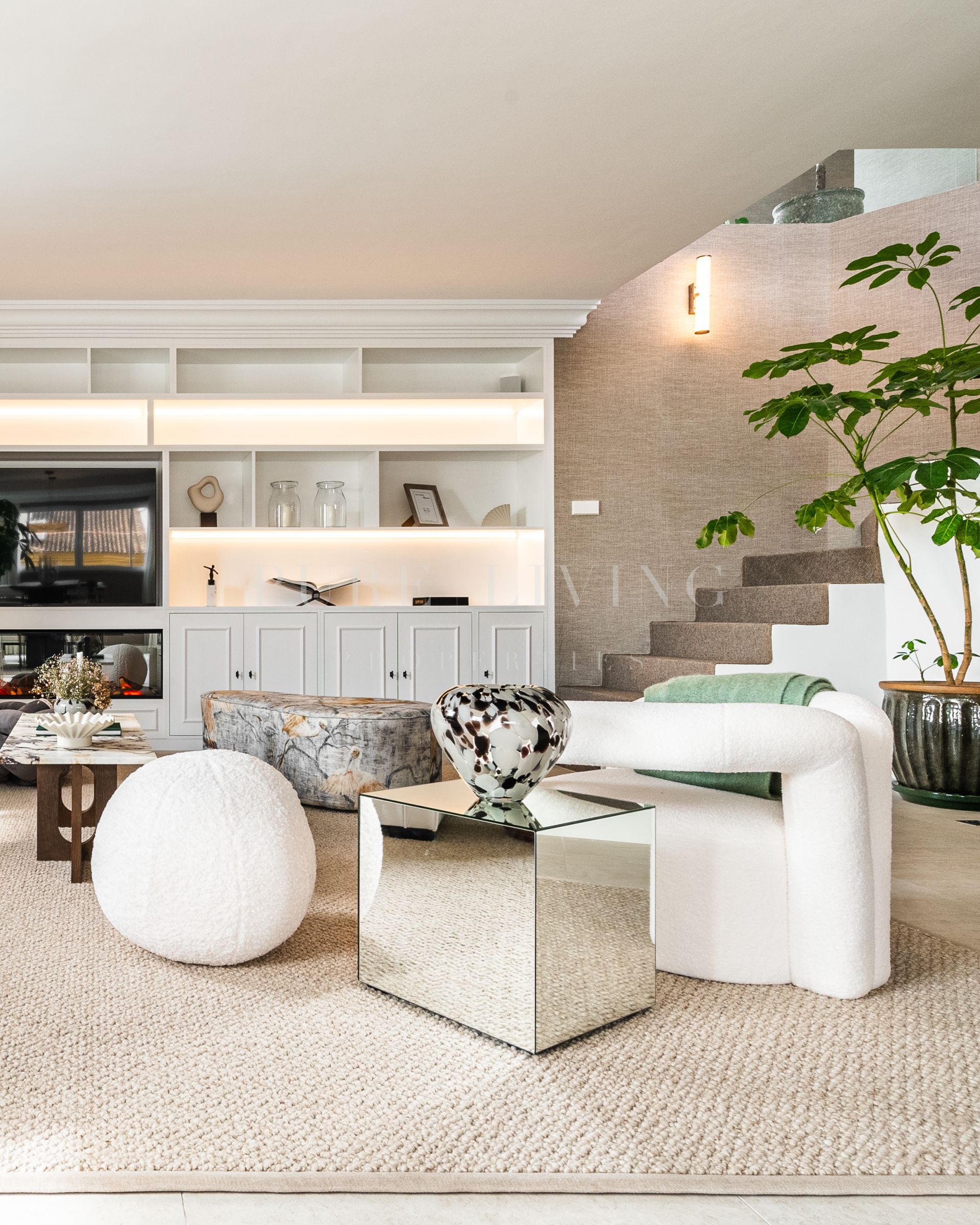 Het zijn echter de buitenruimtes die dit penthouse echt onderscheiden. Twee uitgestrekte terrassen openen een wereld van mogelijkheden – of je nu cocktails drinkt bij zonsondergang, je koestert in de warmte van de mediterrane zon of onvergetelijke al fresco diners organiseert met de sprankelende zee als achtergrond.