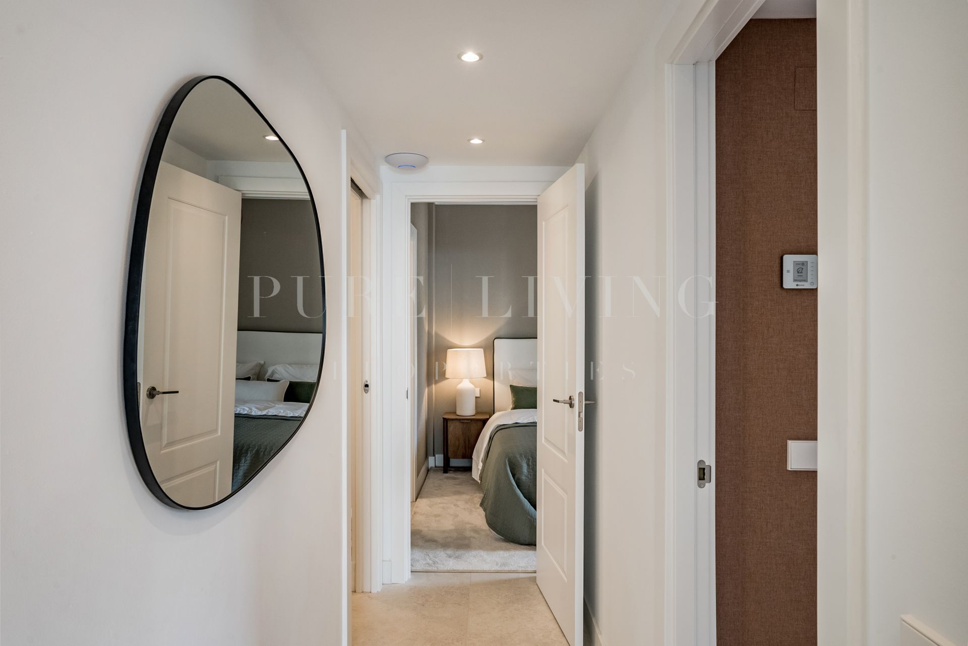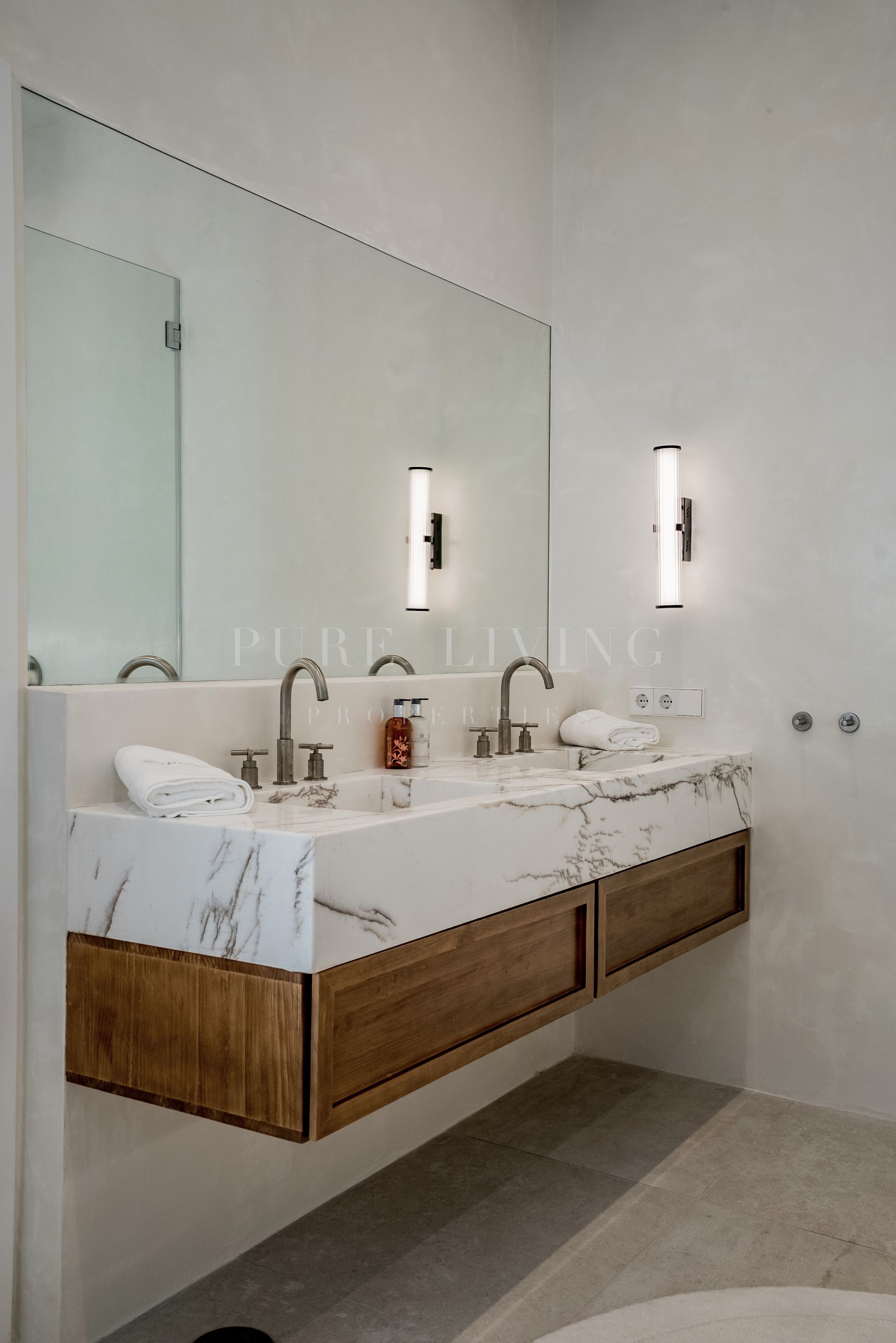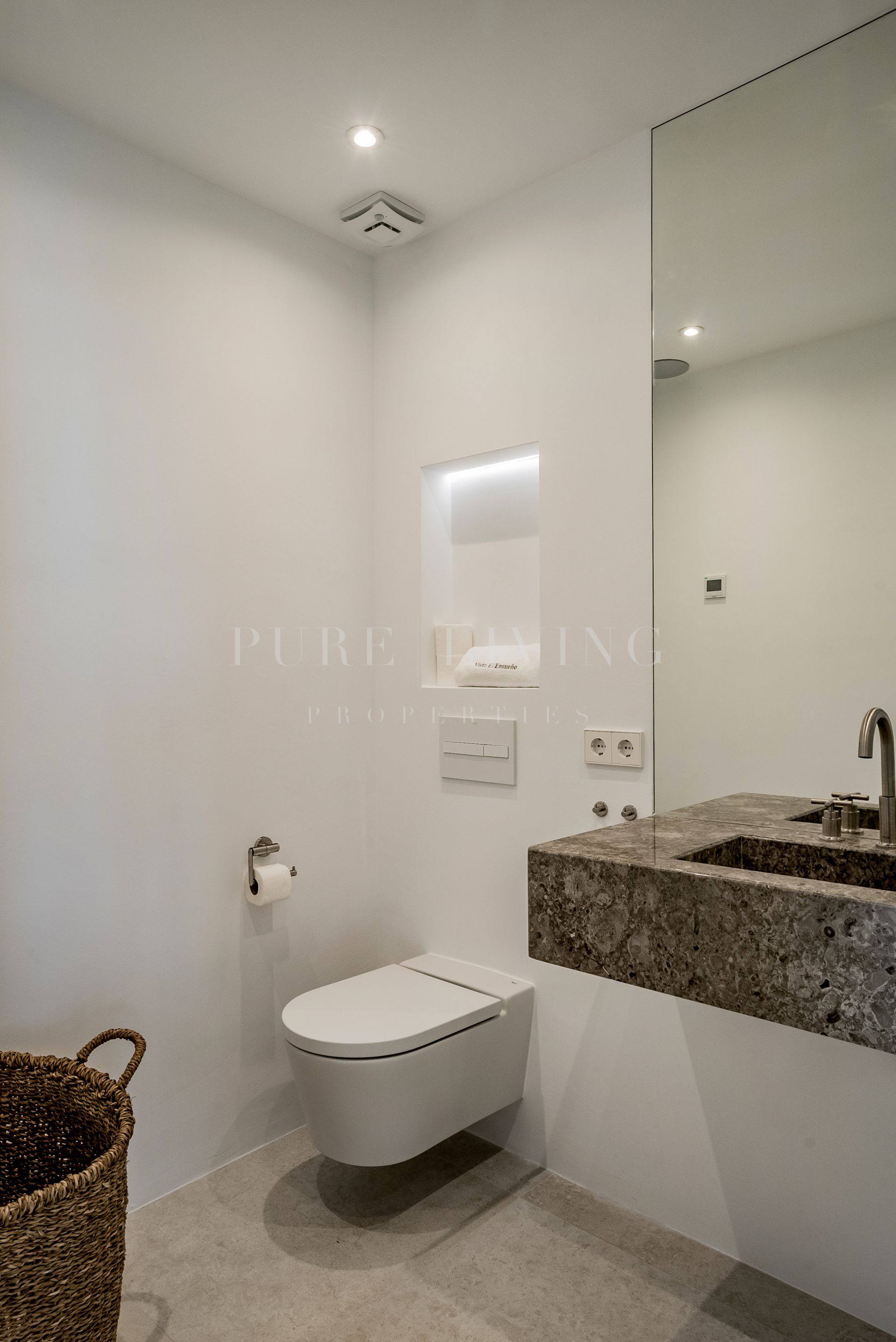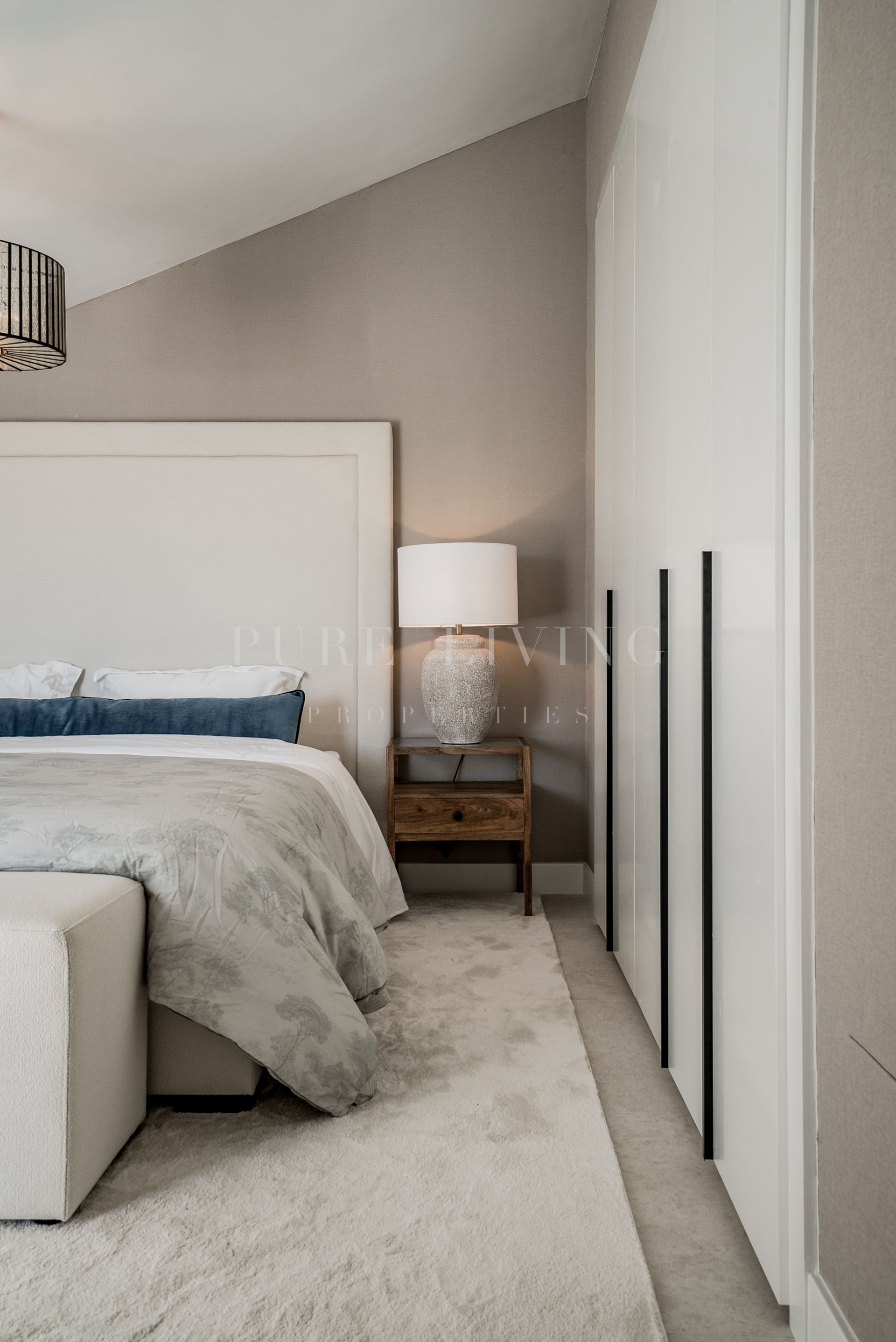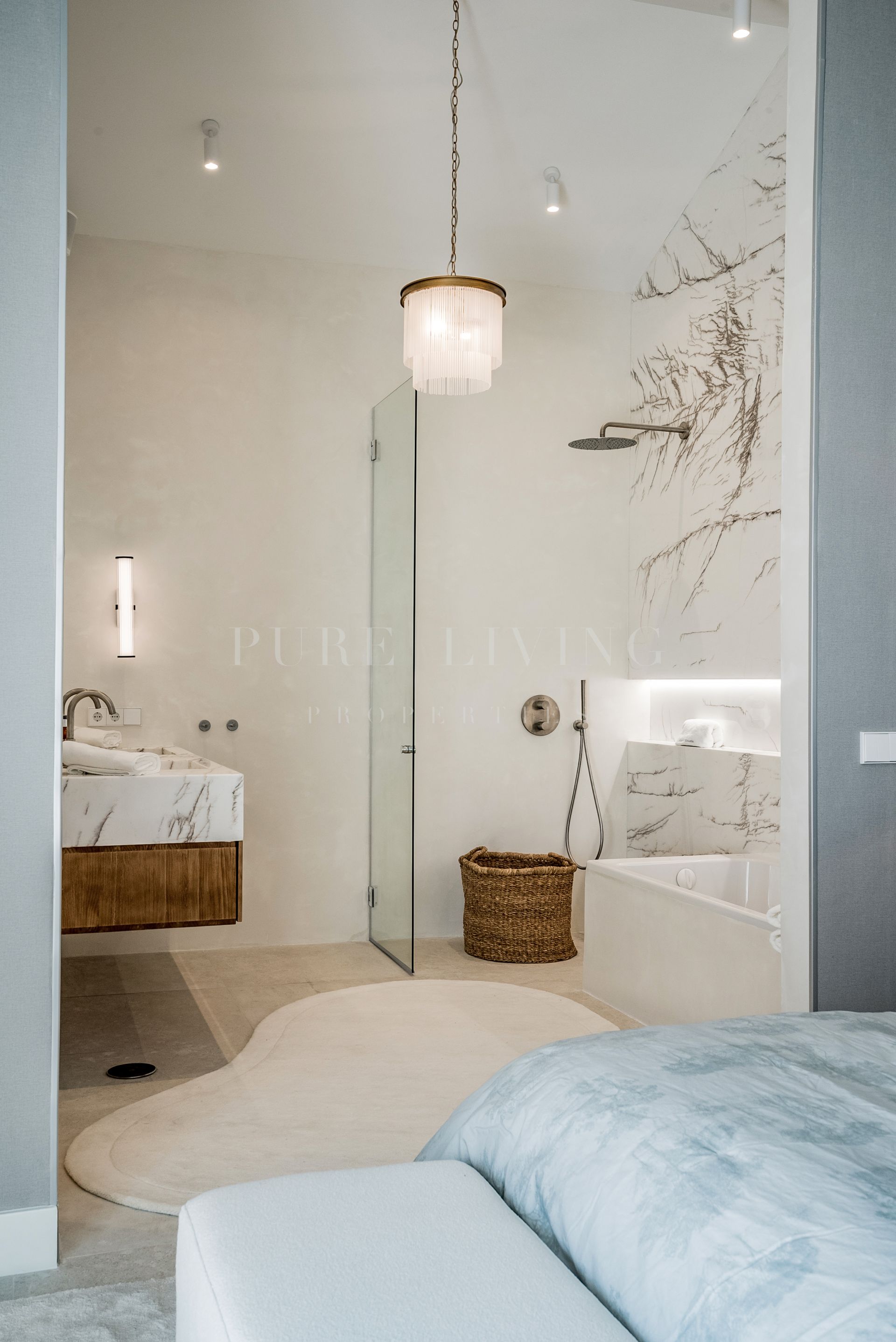 De bovenverdieping biedt extra sociale ruimte, perfect om tot rust te komen na het diner. Er zijn twee prachtige slaapkamers, elk doordacht ingericht met voldoende kastruimte. De master suite is een privé heiligdom, met een spa-achtige badkamer, een kleedkamer en directe toegang tot een van de twee prachtige terrassen.
