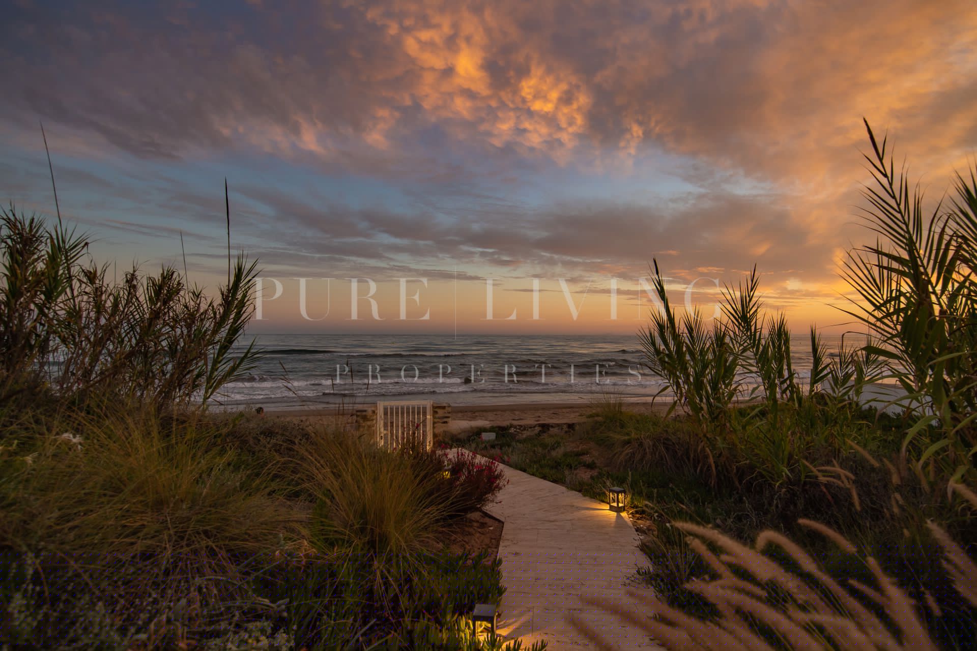 Deze eigentijdse front line strand villa is omgeven door beschutte zandduinen richting het strand waardoor u een natuurlijke ‘omheining’ heeft voor privacy, rustige berglandschap, met uitzicht op magische uitzichten op de zee, Gibraltar en Afrika.
