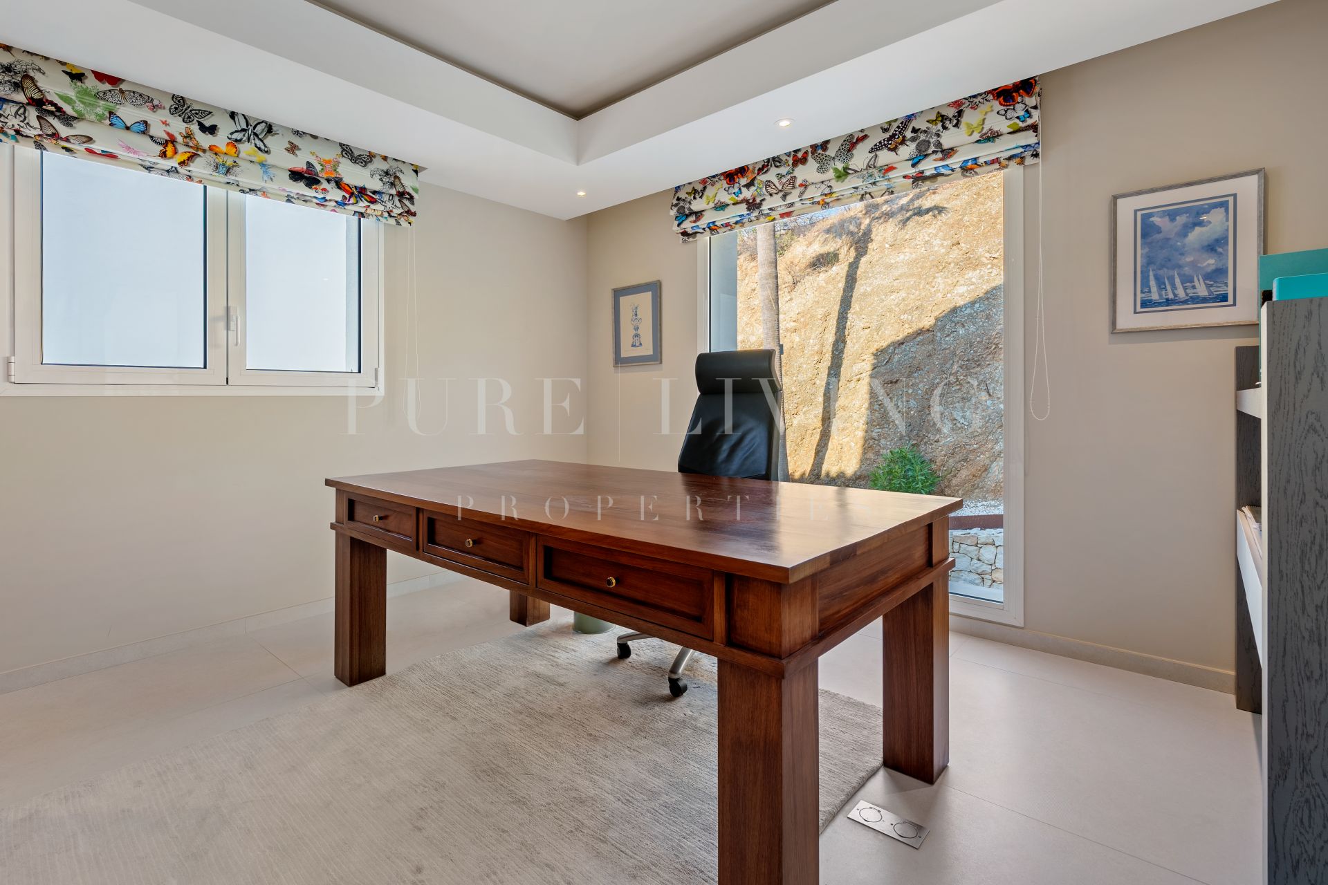 Gelegen in een exclusieve enclave op een heuvel, is Casa K een residentie van uitzonderlijke klasse en ingetogen grandeur. Omgeven door panoramische uitzichten over de Middellandse Zee en de omliggende bergen, biedt dit landgoed een levensstijl die wordt gekenmerkt door rust, privacy en moeiteloze verfijning.