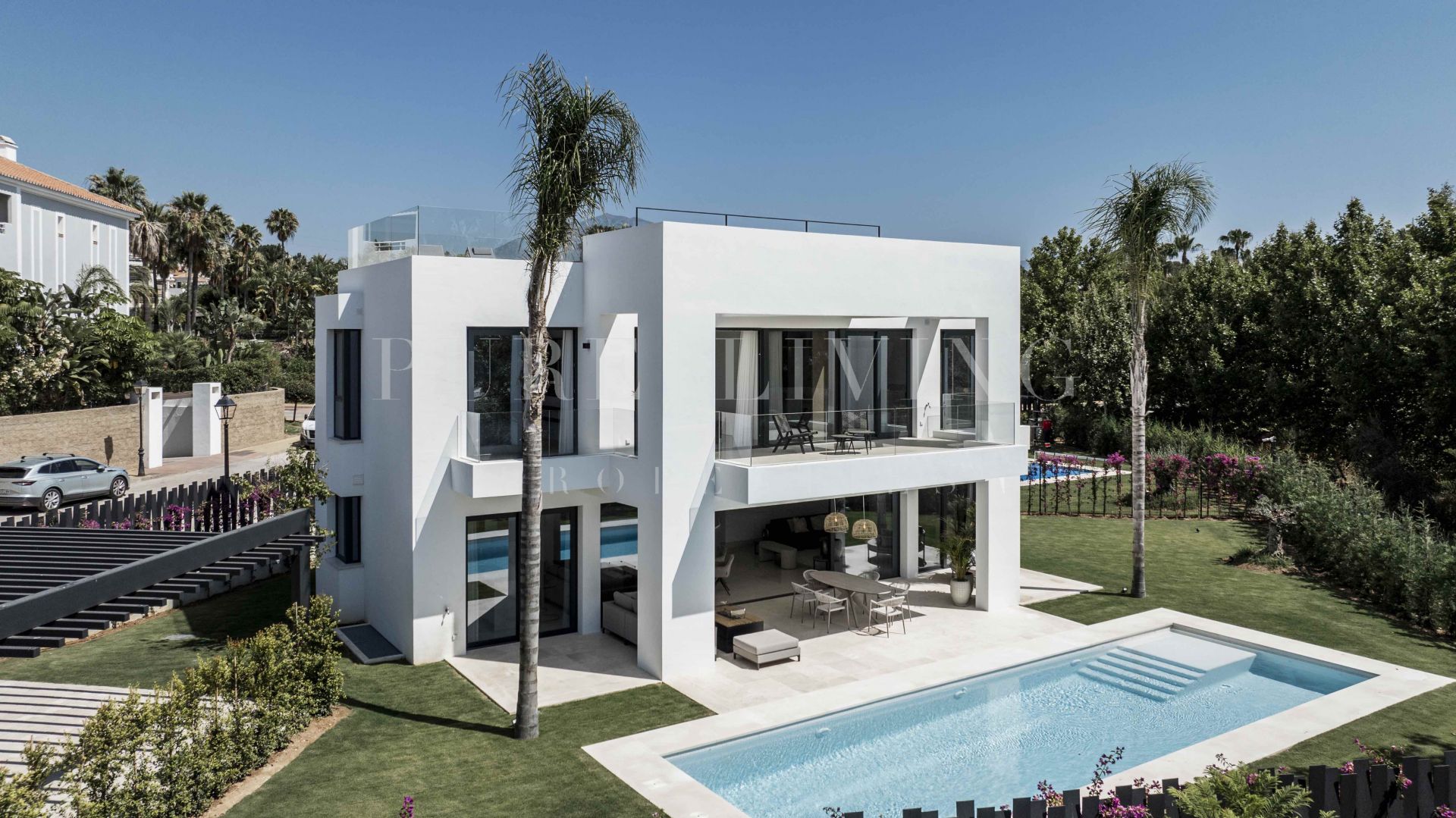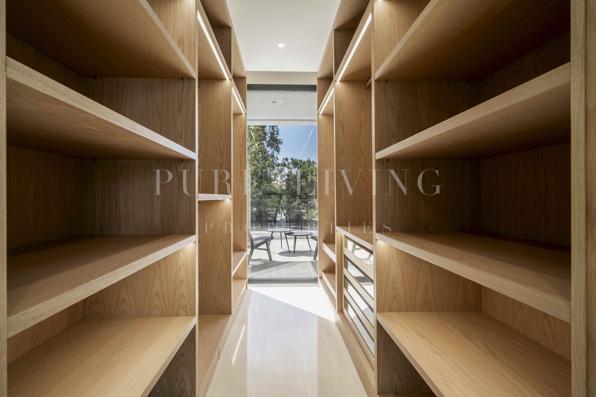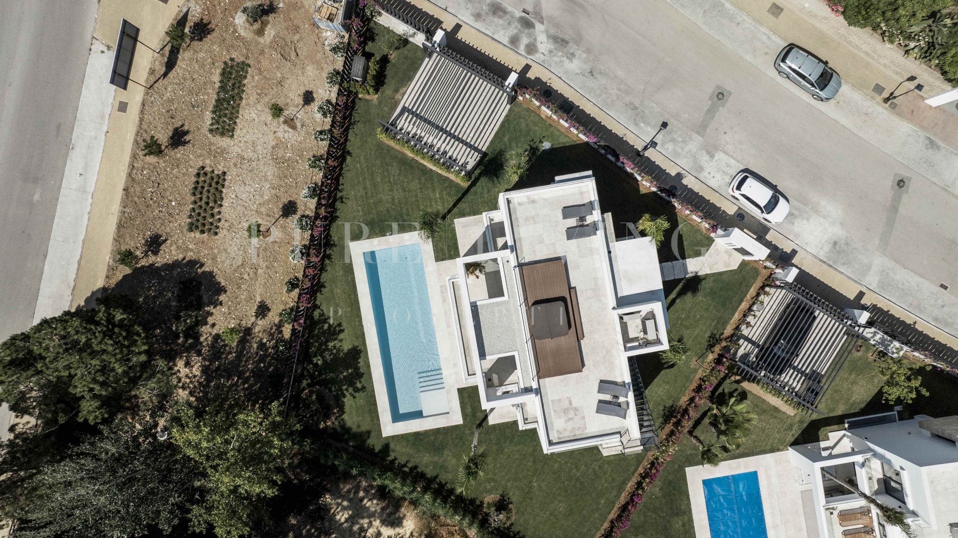 Op de eerste verdieping zijn er drie slaapkamers met eigen badkamer, waaronder een master suite met een kleedruimte en toegang tot een privéterras. Elke slaapkamer is zorgvuldig ontworpen voor comfort en ontspanning, met hoogwaardige afwerking en ultramoderne domotica, waaronder een ingebouwd geluidssysteem. De benedenverdieping heeft een gastensuite, een wasruimte en een entertainmentruimte met een thuisbioscoop en bar. Het solarium op het dak biedt een stijlvolle houten jacuzzi, gedeeltelijk uitzicht op de bergen en voldoende ruimte om te zonnebaden, te entertainen en buiten te dineren.