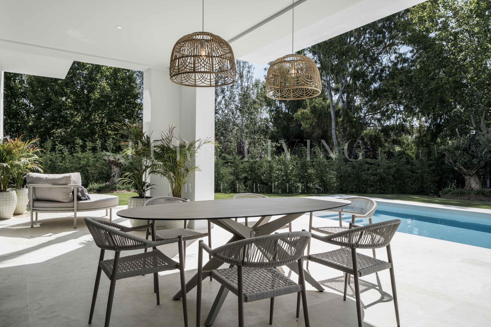 Deze elegante villa ligt in het serene en exclusieve El Campanario Golfgebied, aan de New Golden Mile, op slechts een klein eindje rijden van het beroemde Puerto Banus. Het pand ligt in prachtig aangelegde tropische tuinen. Het gebied beschikt over een eigen negen-holes golfbaan en een exclusief clubhuis dat een schat aan voorzieningen biedt, waaronder een Spa- en wellnesscentrum, een fitnessruimte, binnen- en buitenzwembaden, co-workingruimten, een restaurant voor fijnproevers en tennis- en paddlebanen. Bovendien is de villa gunstig gelegen nabij plaatselijke voorzieningen, internationale scholen en prachtige mediterrane stranden.