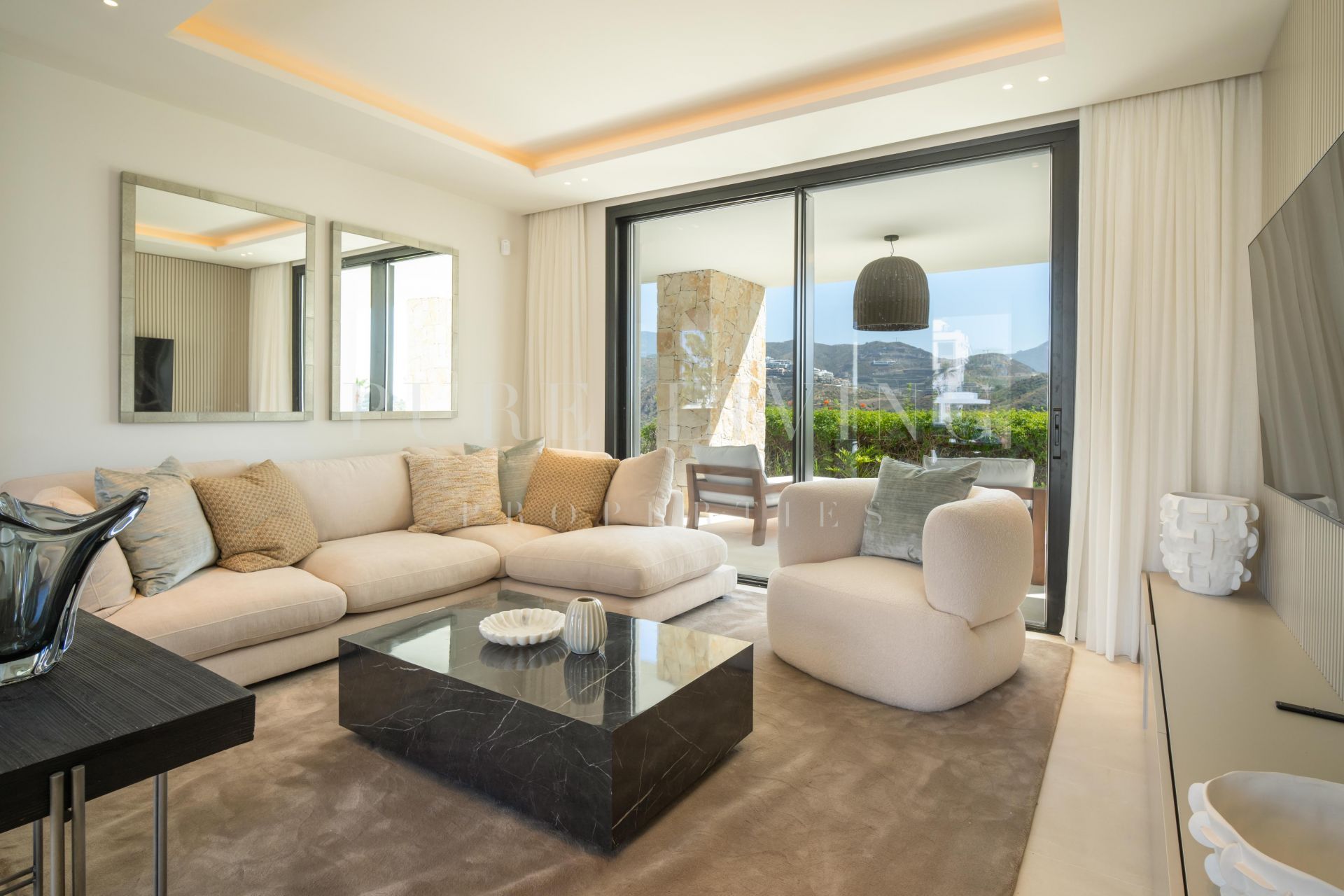 Verscholen binnen de exclusieve afgesloten gemeenschap van El Herrojo in La Quinta, biedt deze villa ongeëvenaarde panoramische uitzichten op de zee en de bergen, waardoor het een serene achtergrond vormt...