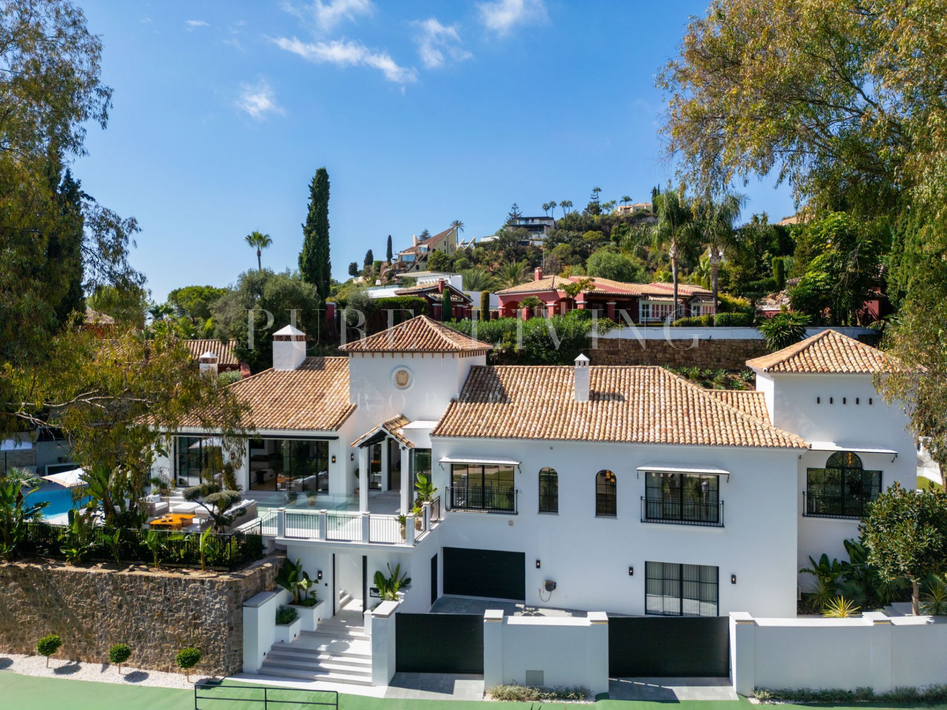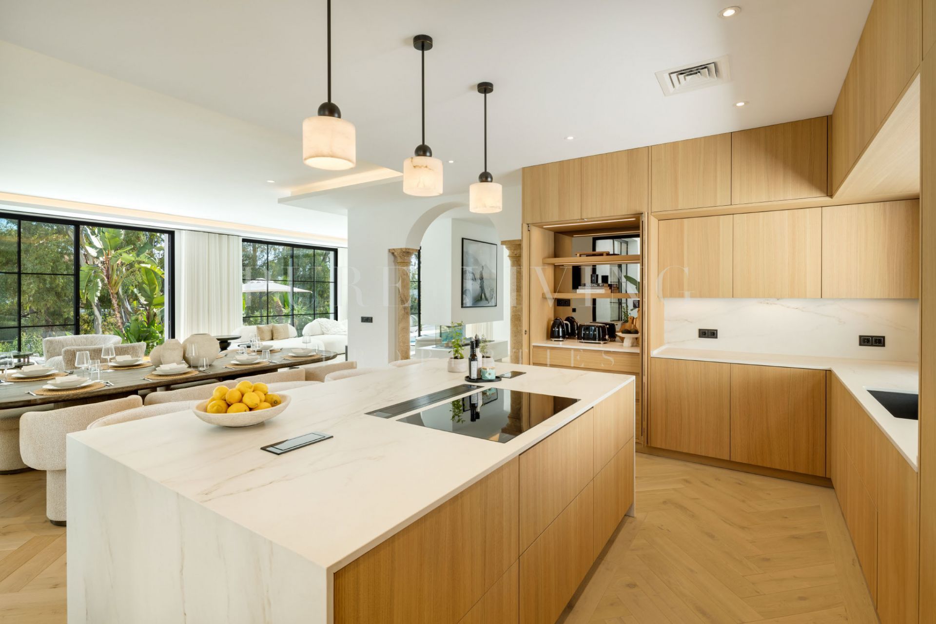 Volledig gerenoveerd volgens de hoogste kwaliteitsnormen, toont de villa een verfijnde selectie van materialen, vakmanschap en ontwerpdetails, die samen een smaakvolle interpretatie vormen van het moderne Zuid-Spaanse wonen.