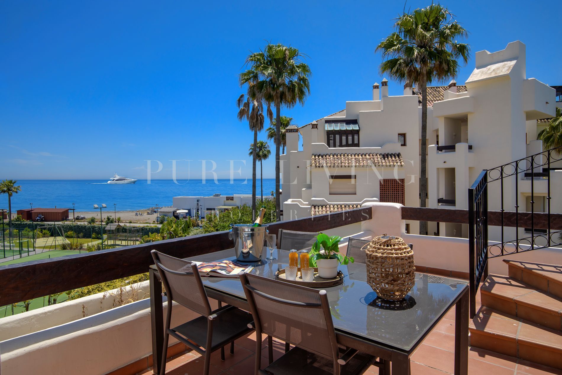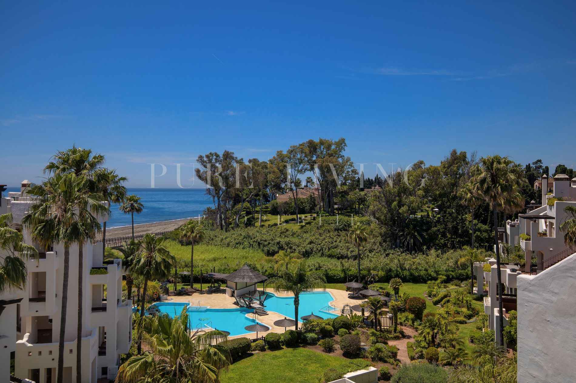 De beveiligde residentie biedt 24-uursbeveiliging, conciërgeservice, weelderige tropische tuinen en een zwembad in resortstijl. Bewoners hebben daarnaast directe toegang tot het strand en kunnen genieten van een gerenommeerd strandrestaurant dat bekendstaat om zijn ontspannen sfeer en uitstekende Andalusische keuken.