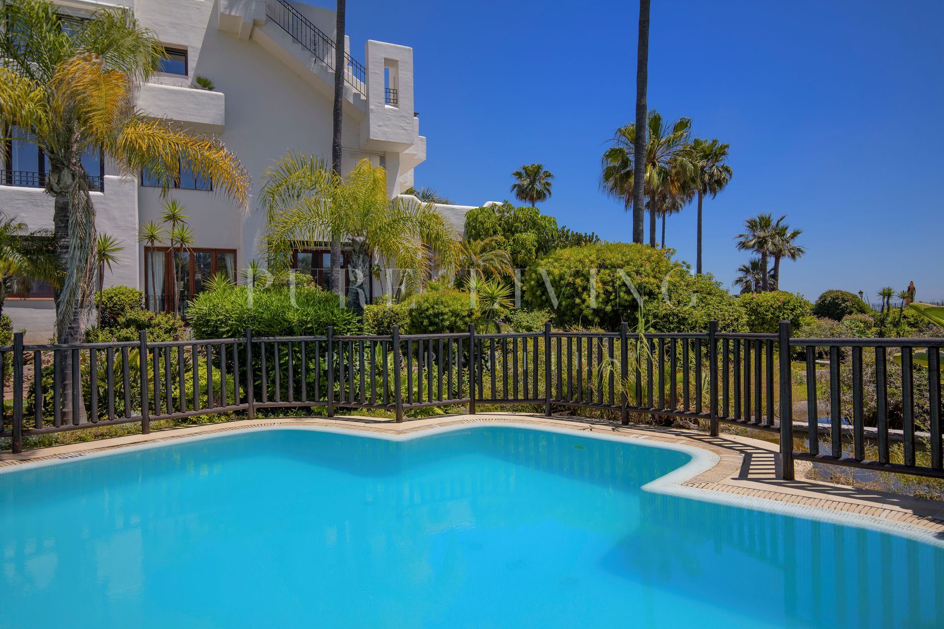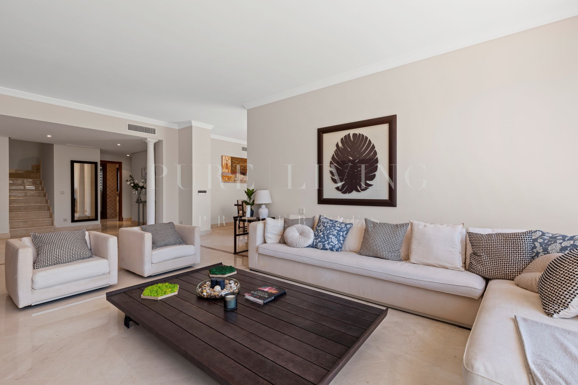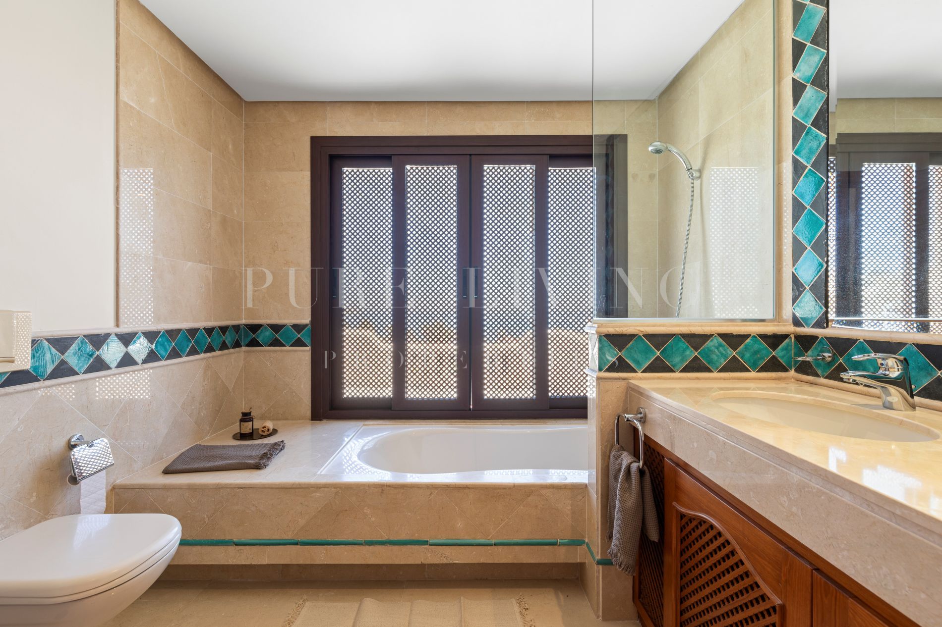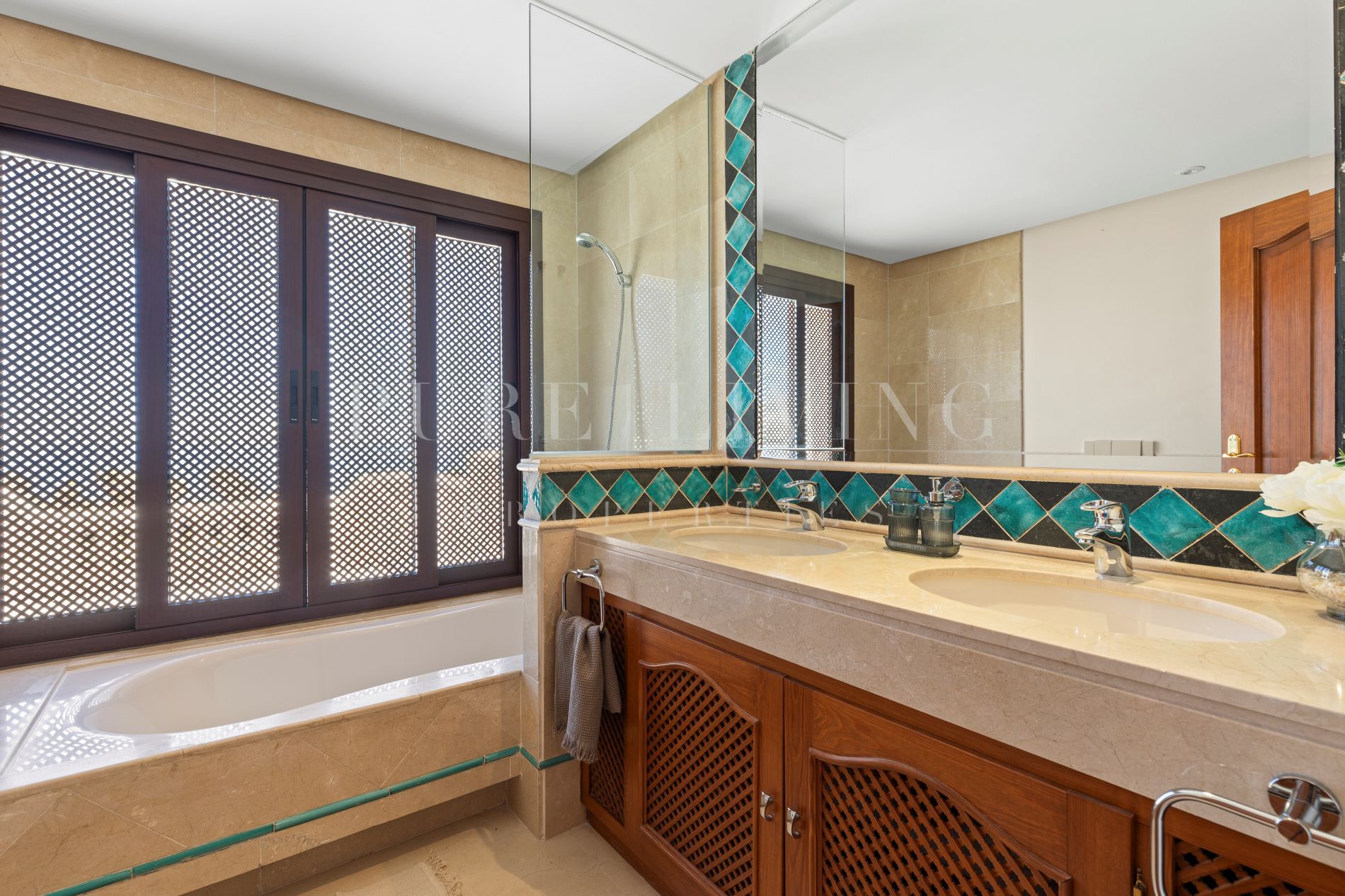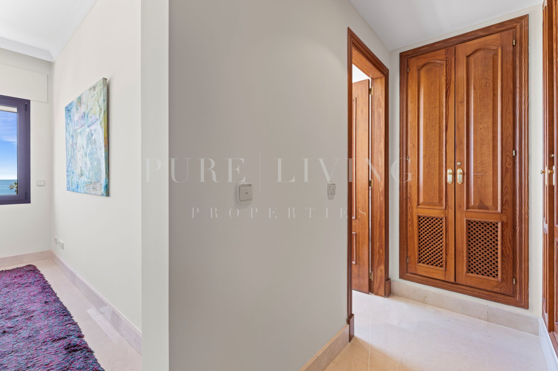 Privé terras, Plafond koelsysteem, Dicht bij winkels, Dicht bij de stad, Dicht bij scholen, Uitzicht op zee, kitchenette, Overdekt terras, 24 uur per dag Service, Inbouwkasten, Beveiligde woonwijk, Lift, Uitzicht op de tuin, Inloopkast, Panoramisch uitzicht, Tennis-/padelbaan, Het strand, airconditioning, Inbouwkeuken, Open haard, Marmeren vloeren, Bij de zee/het strand, Dicht bij golfclub, Niet overdekt terras, Glazen deuren, Alarm, Solarium, Meubels optioneel, Dubbele ramen, Uitstekende staat, Beveiliging 24/7, Gastentoilet.