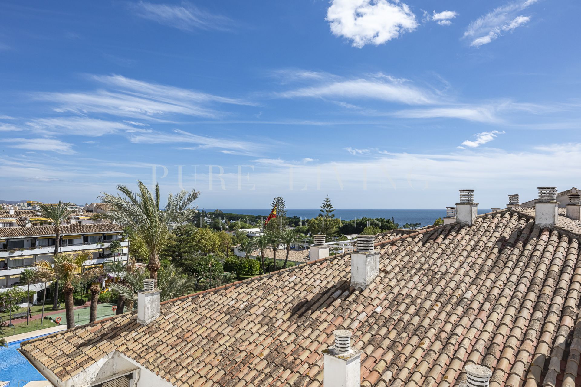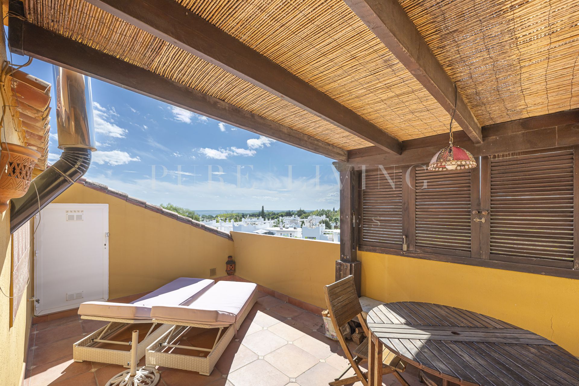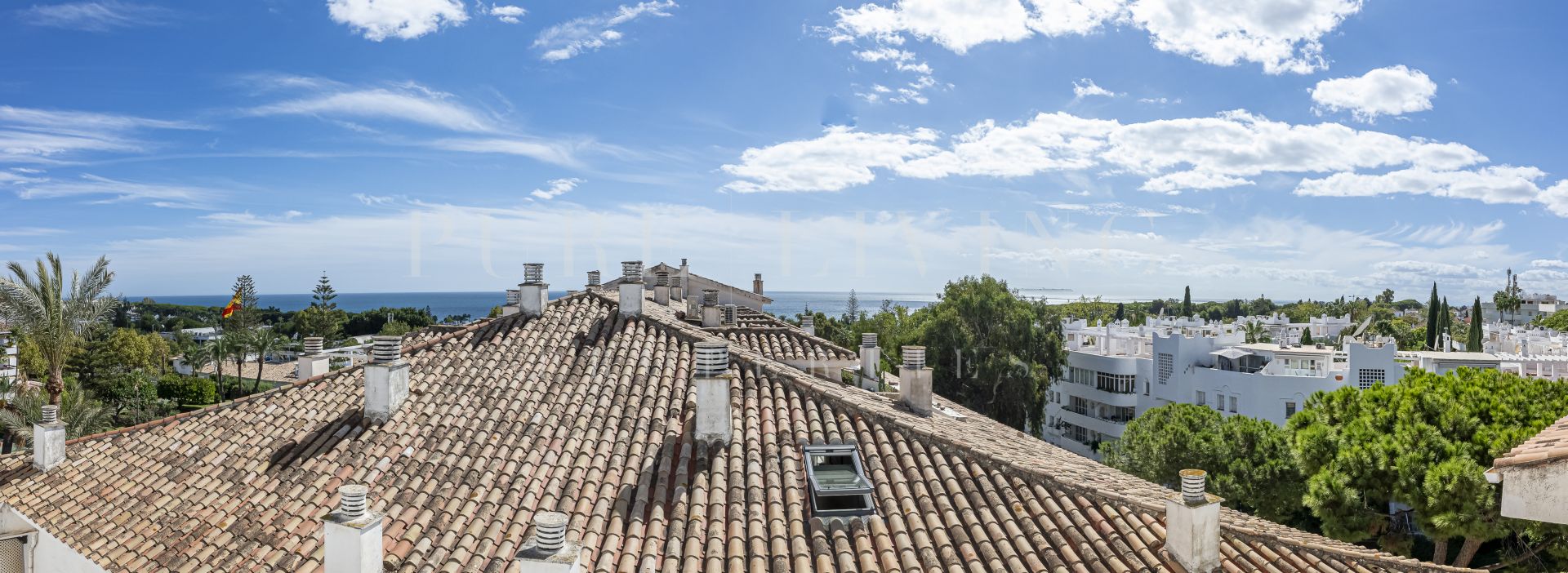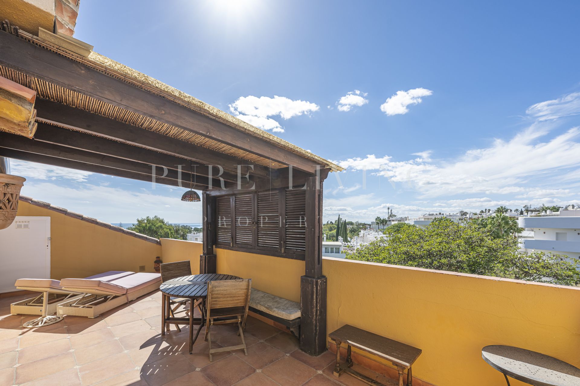 Charmant penthouse met twee slaapkamers en zeezicht, gelegen in de prestigieuze wijk La Carolina aan de Golden Mile van Marbella.