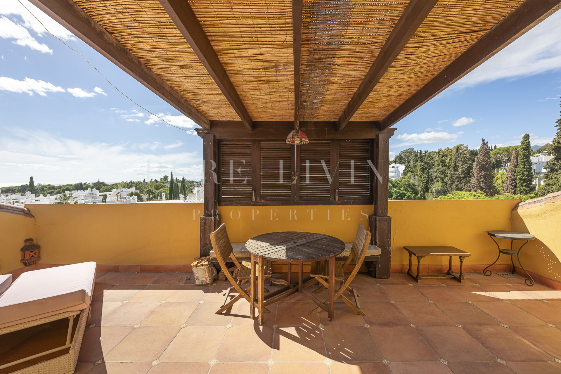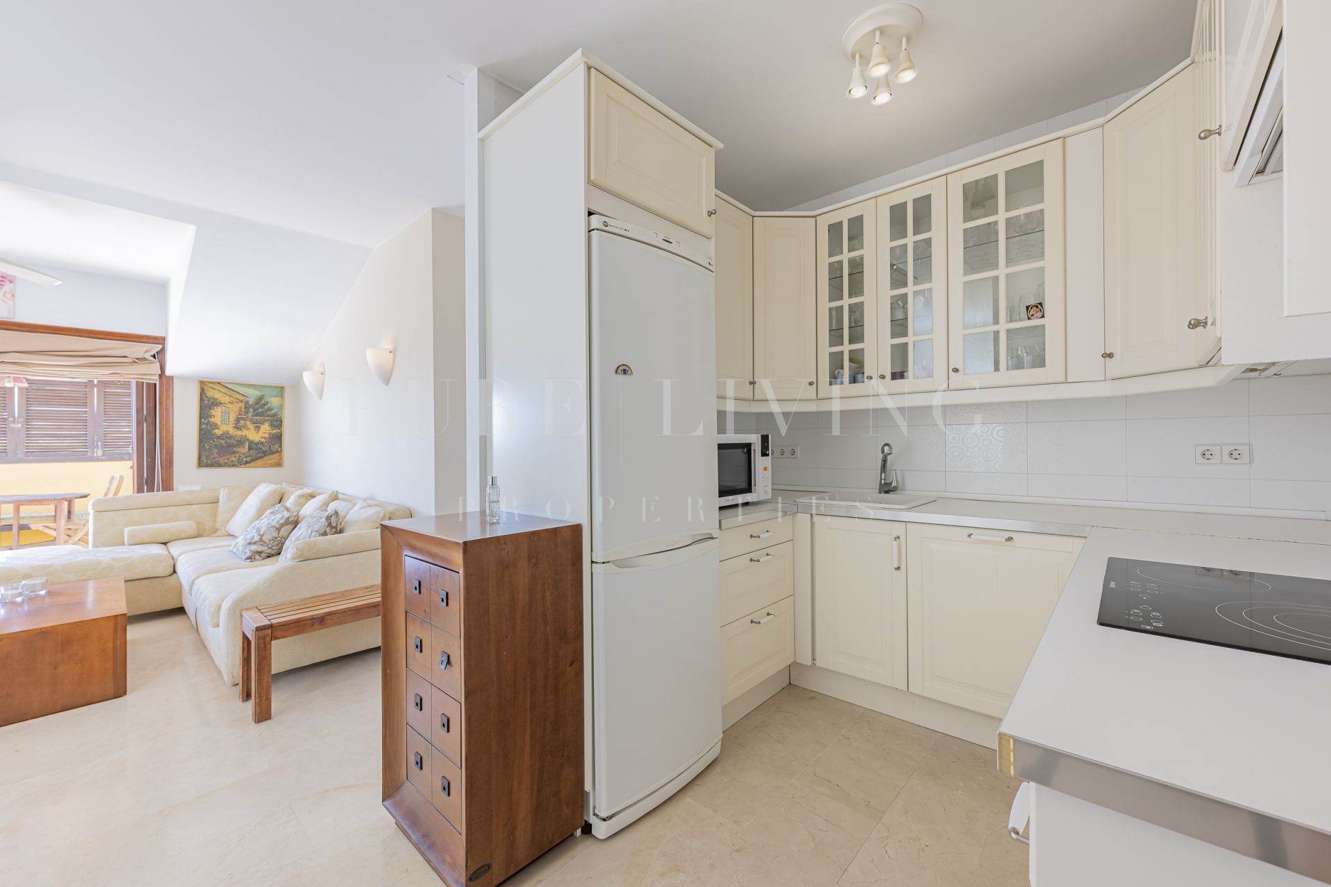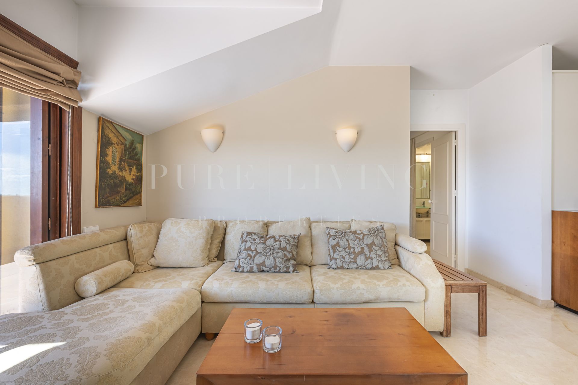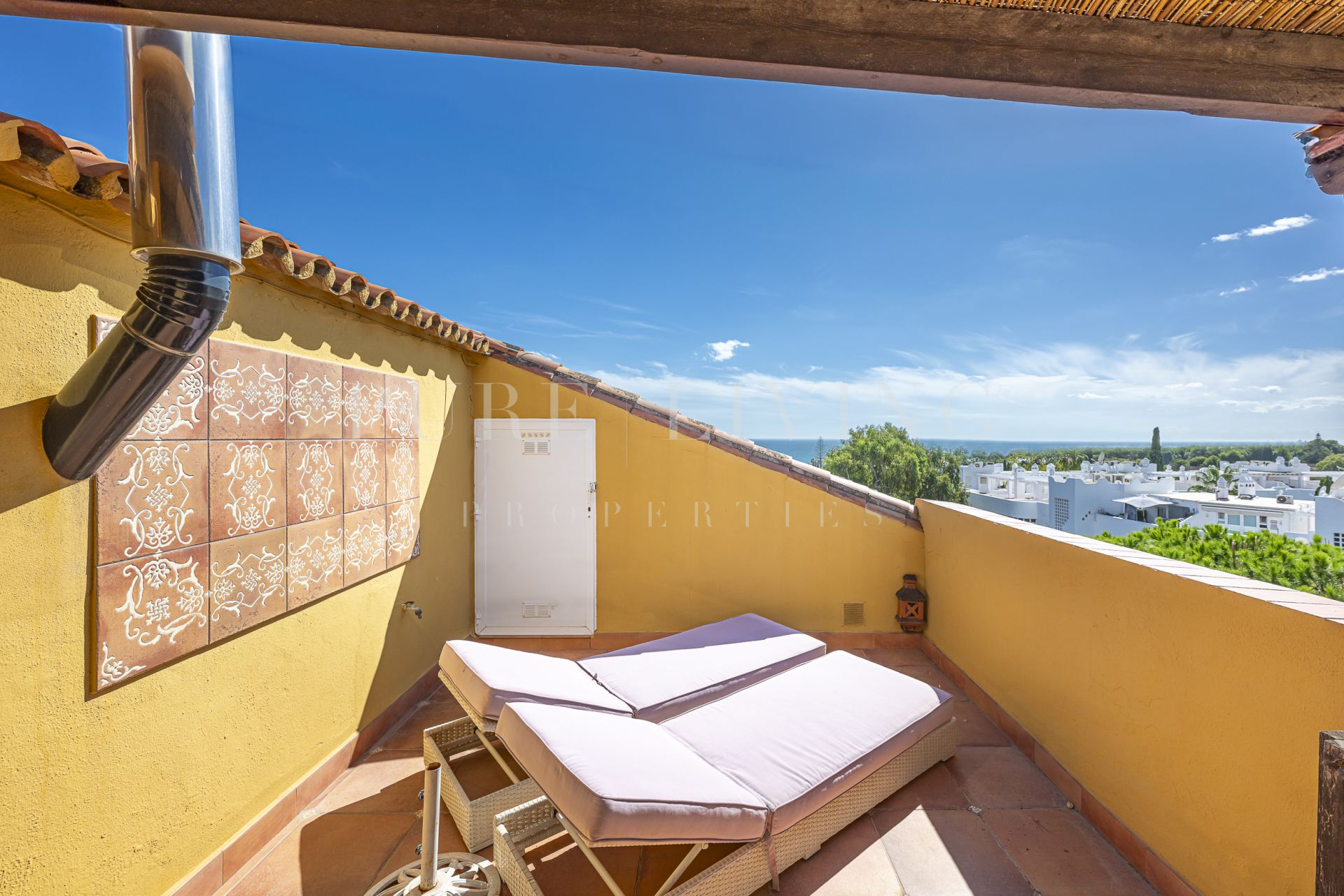 Charmant penthouse met twee slaapkamers en zeezicht, gelegen in de prestigieuze wijk La Carolina aan de Golden Mile van Marbella.