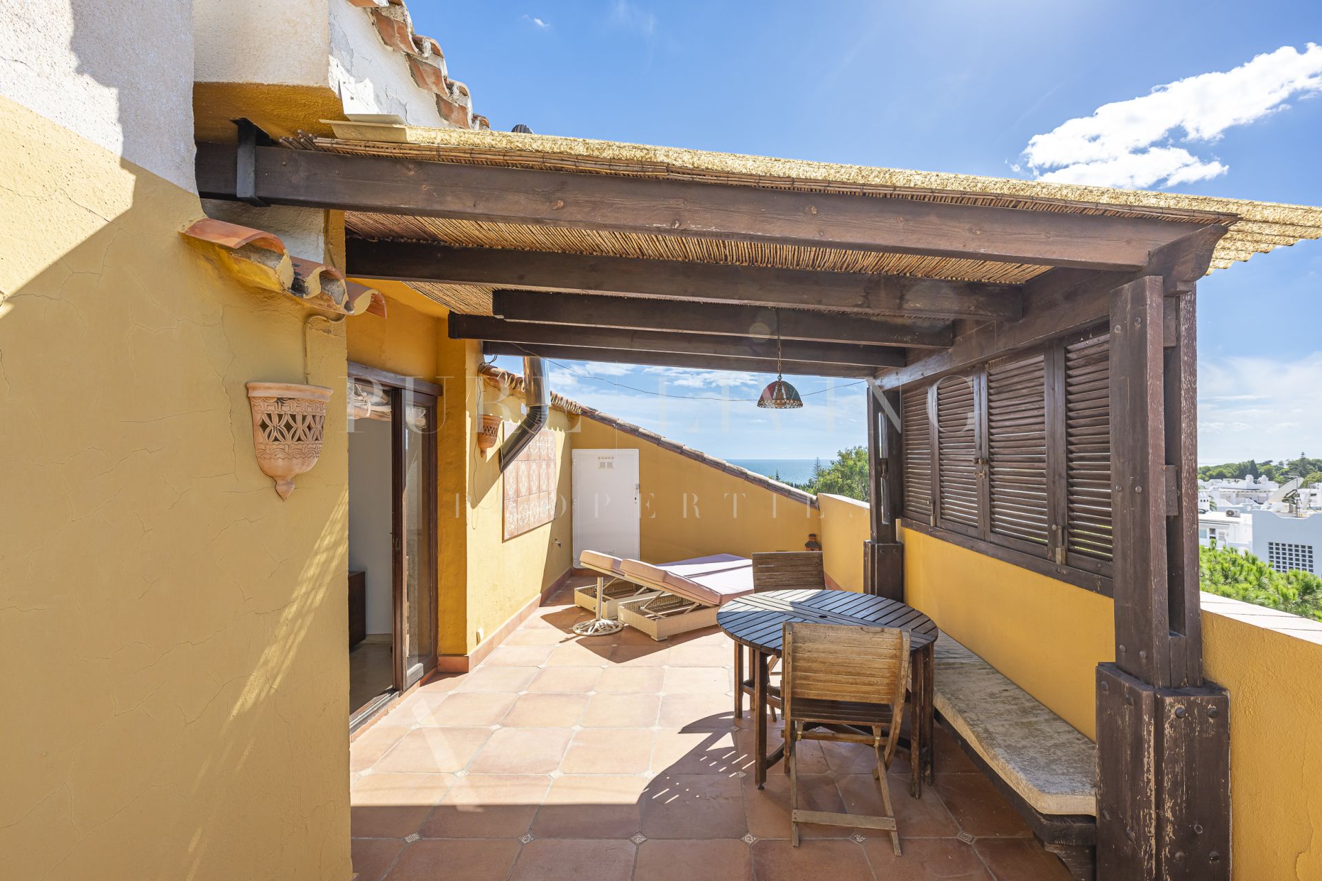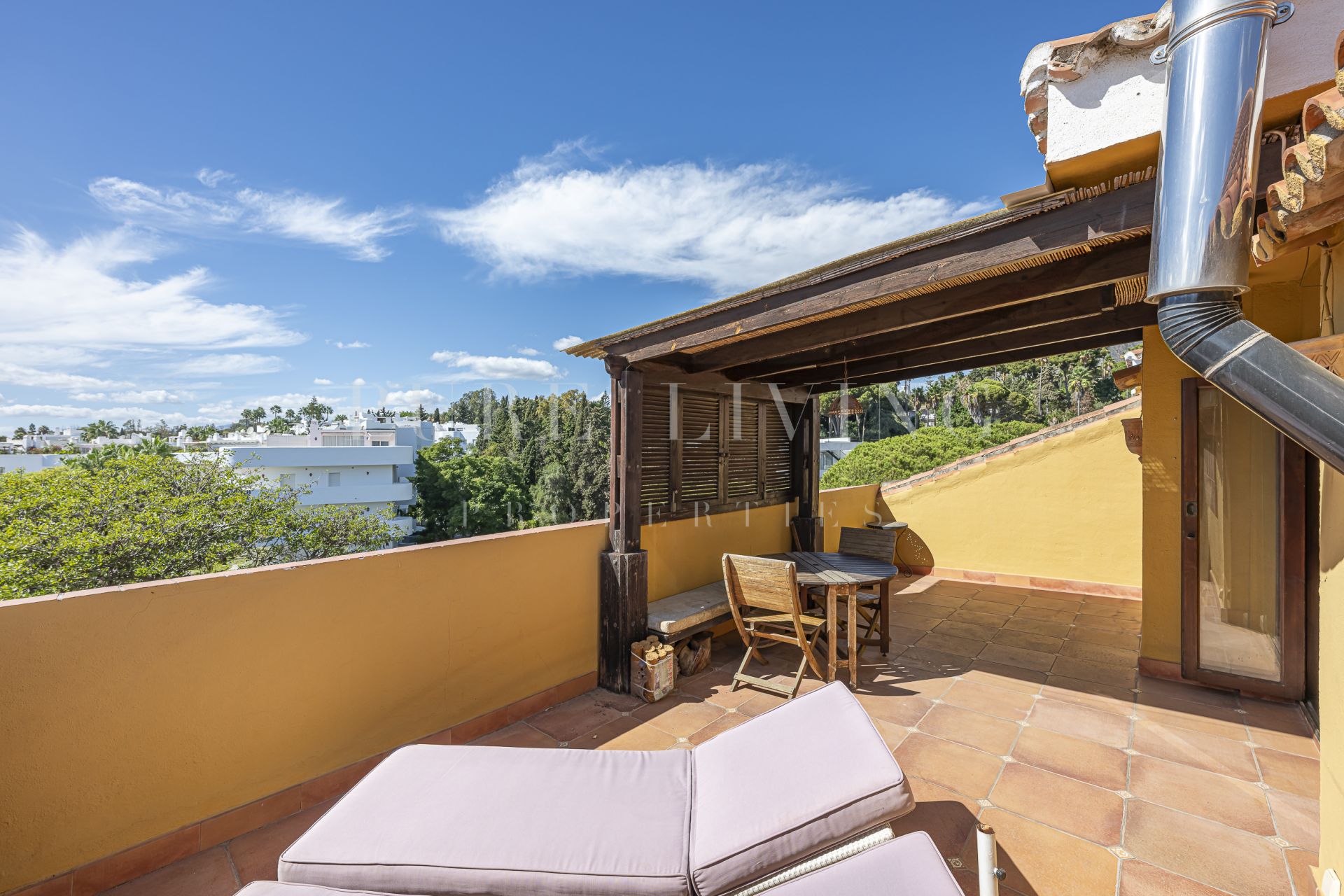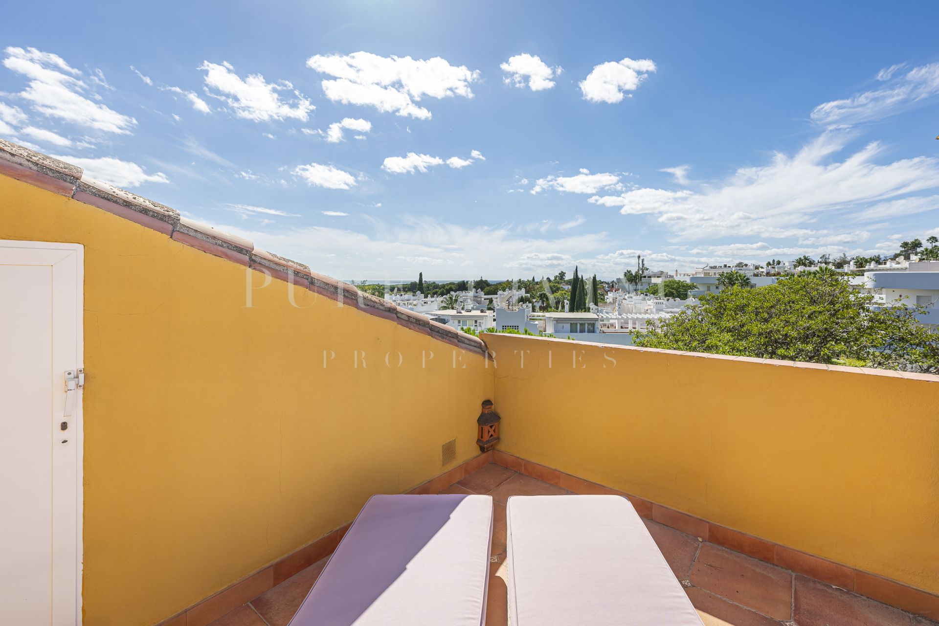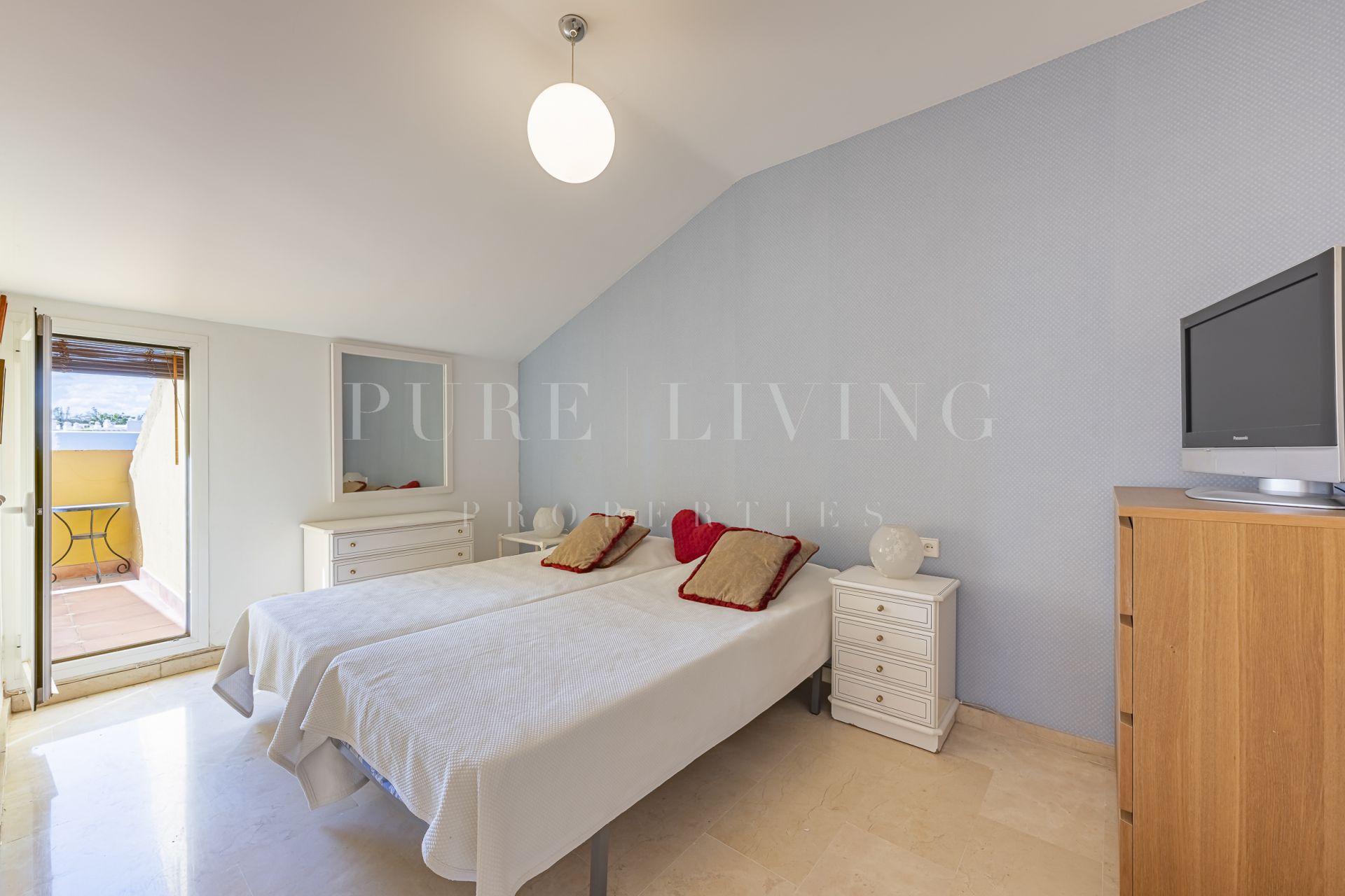 Charmant penthouse met twee slaapkamers en zeezicht, gelegen in de prestigieuze wijk La Carolina aan de Golden Mile van Marbella.