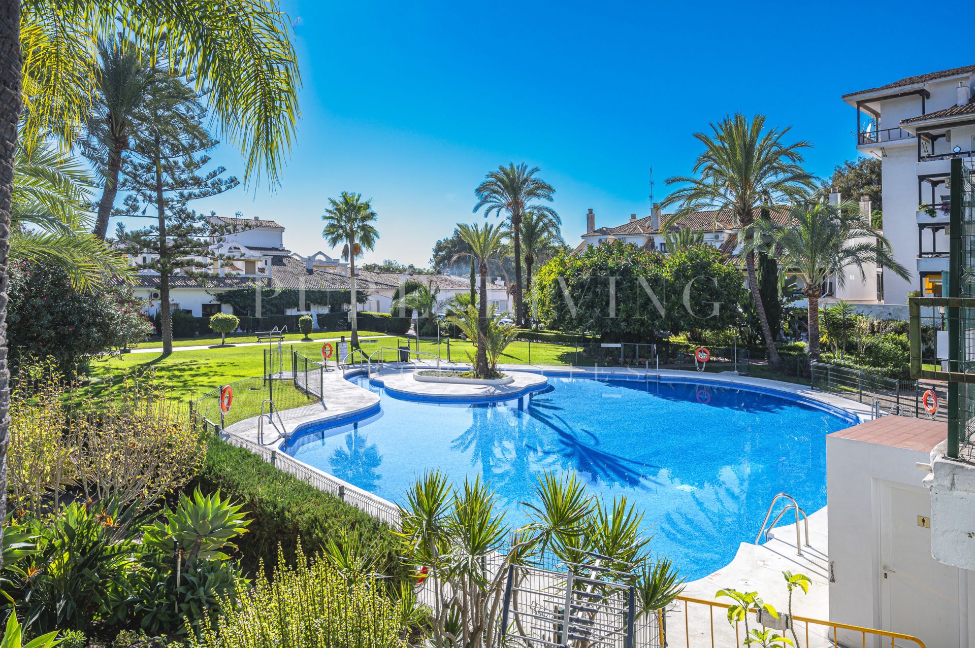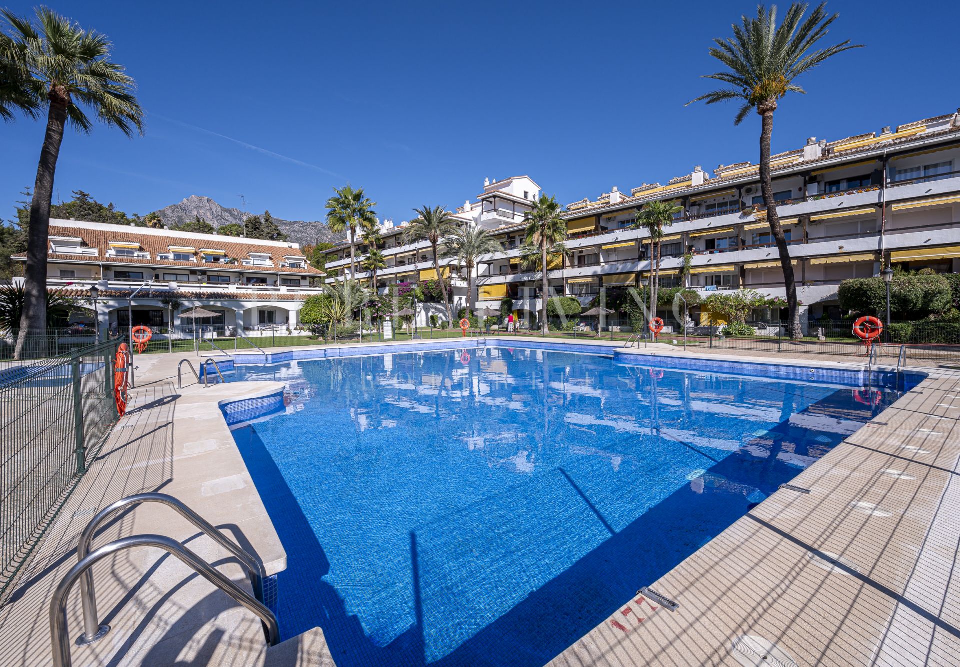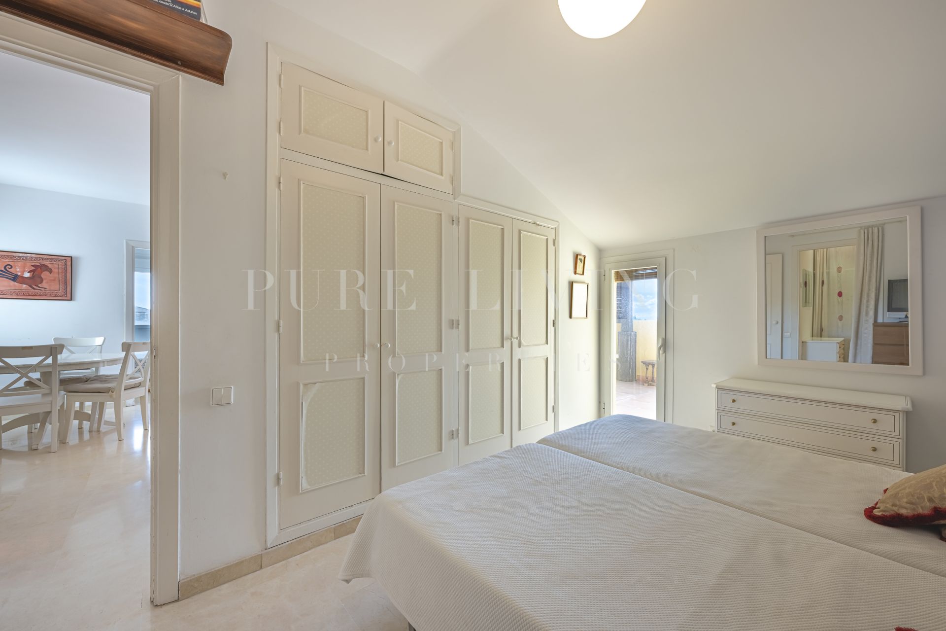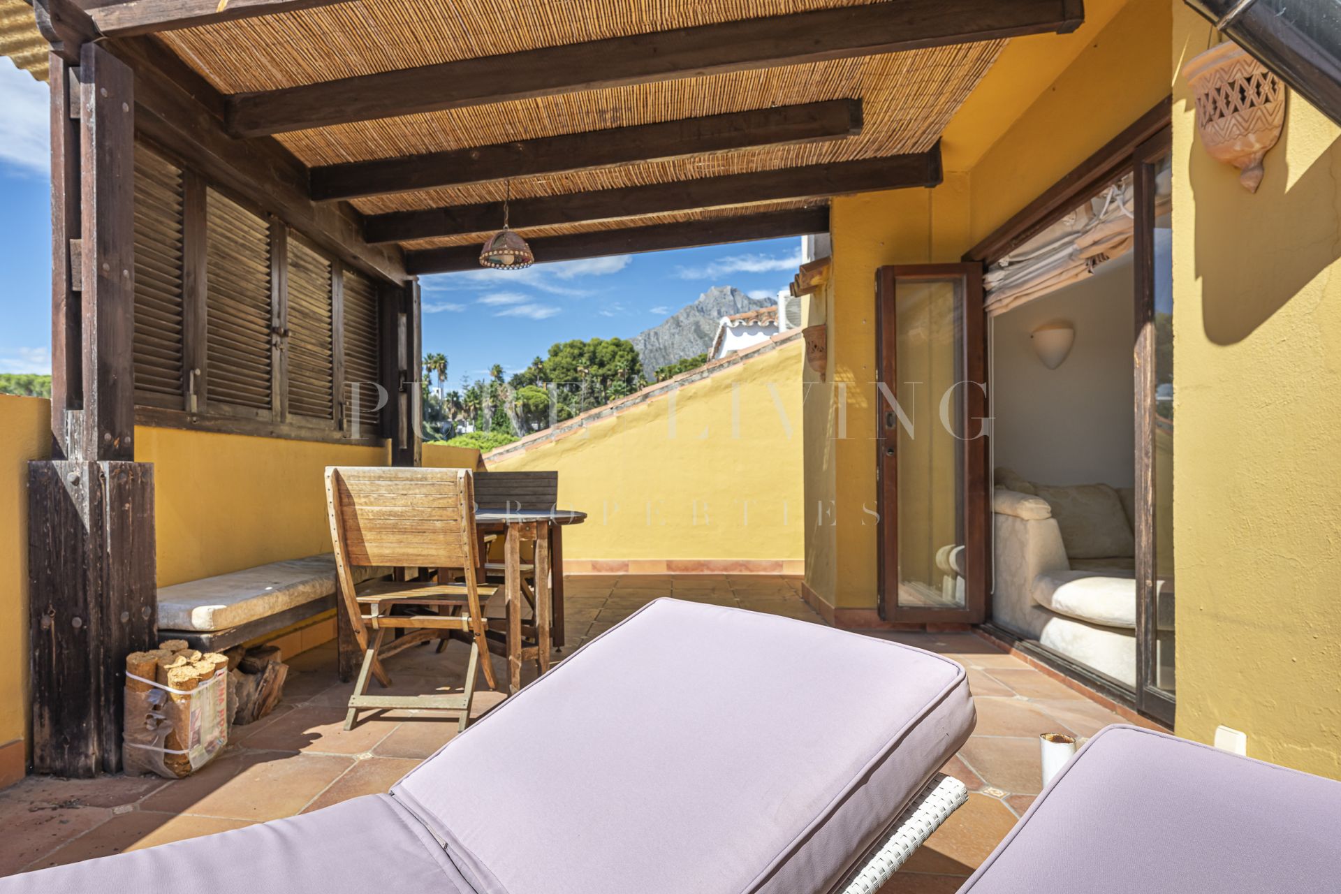 Charmant penthouse met twee slaapkamers en zeezicht, gelegen in de prestigieuze wijk La Carolina aan de Golden Mile van Marbella.